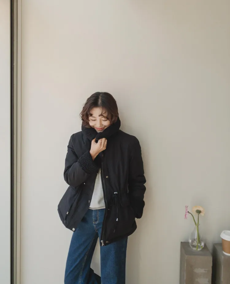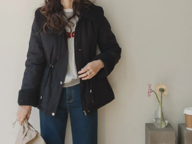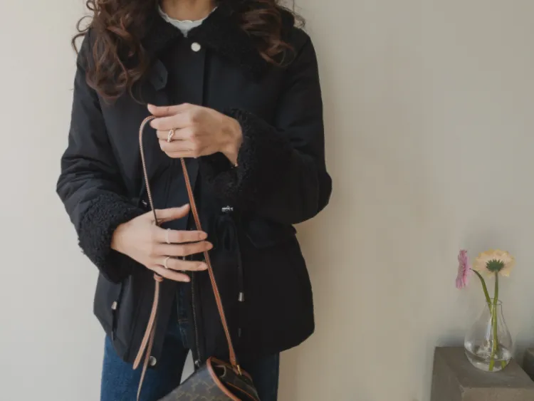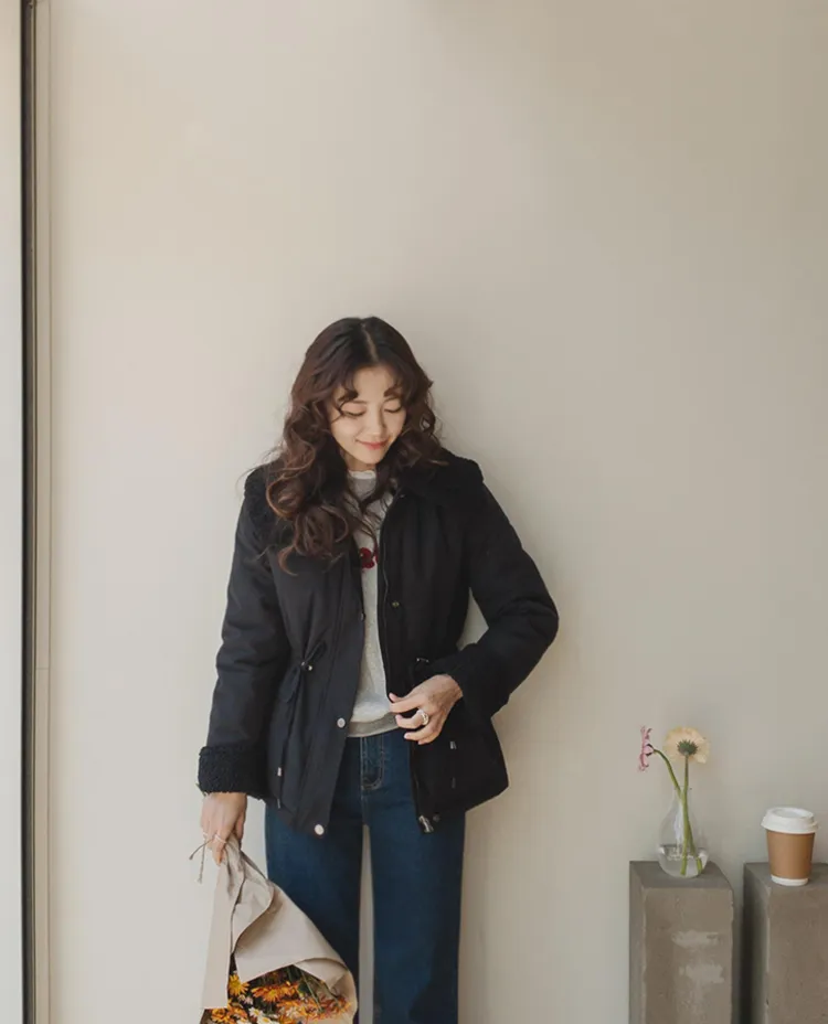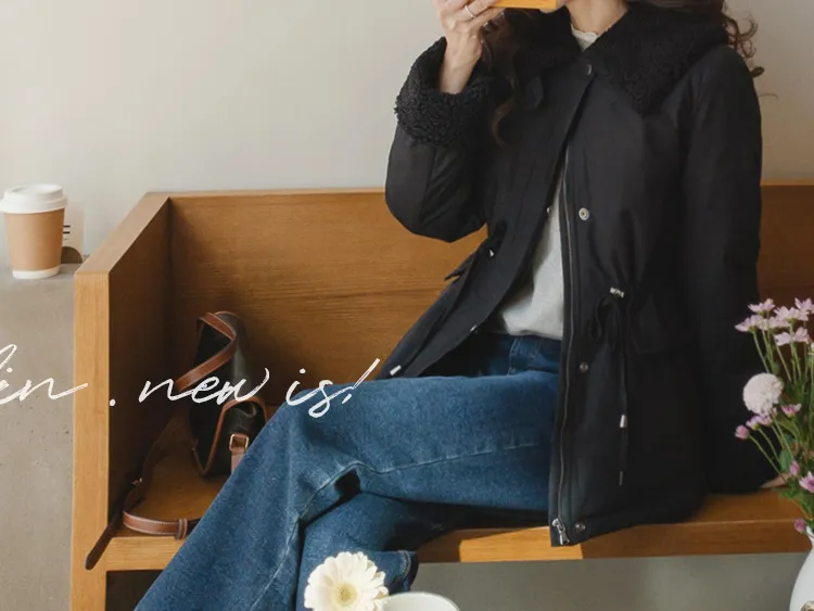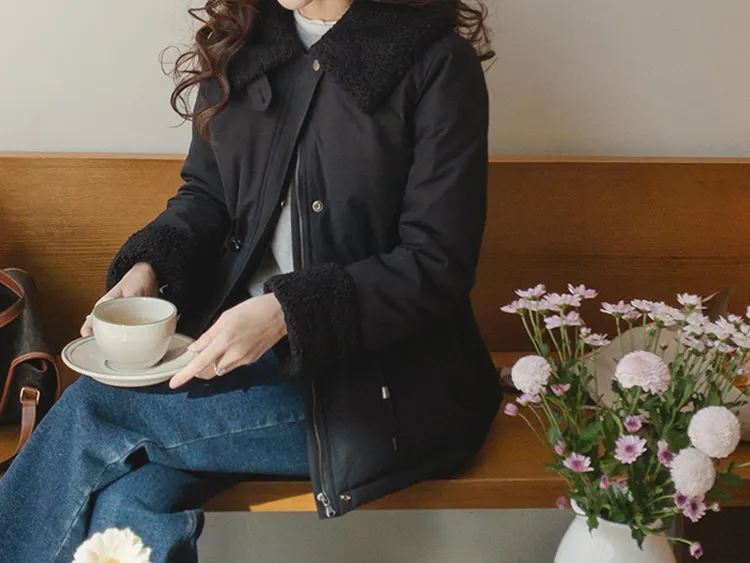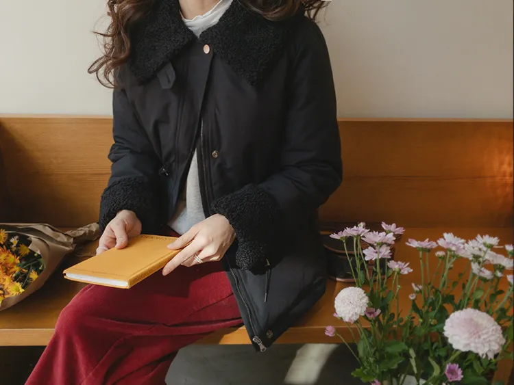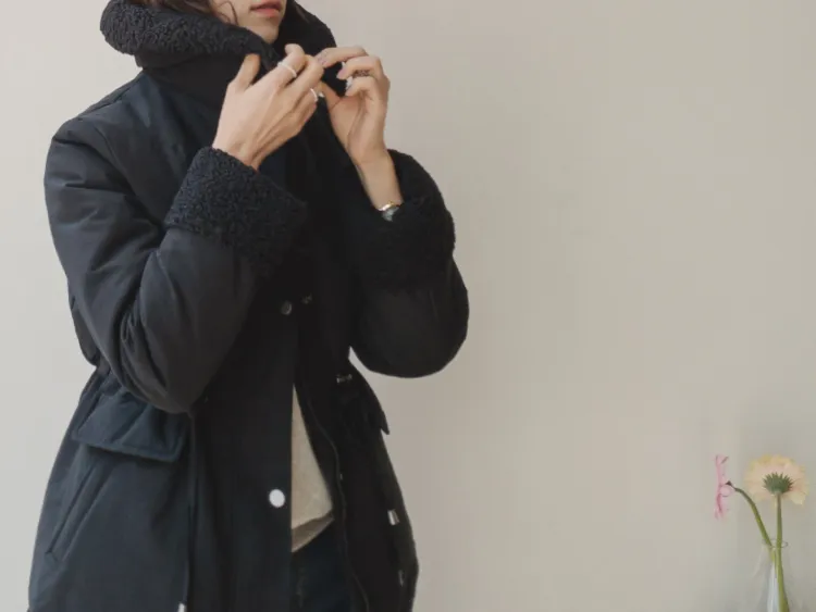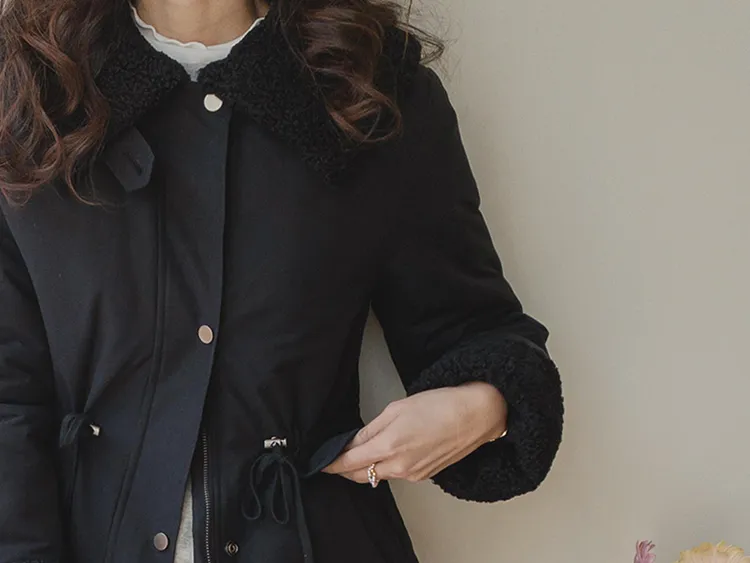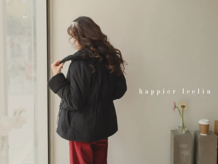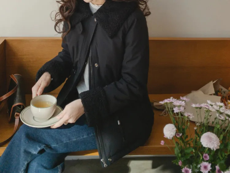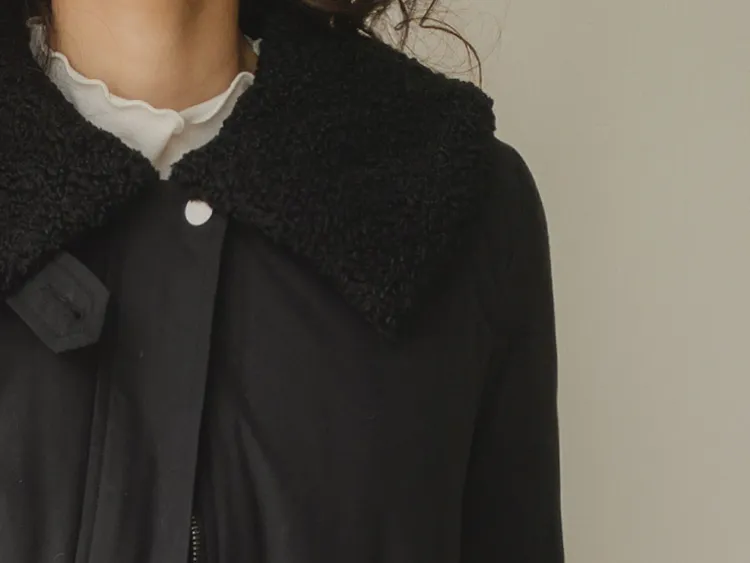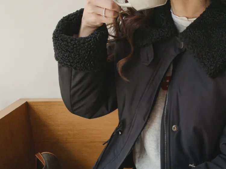 【領子和袖子末端有毛絨顏色設計的奢華外套♥】【用腰繩打造修身廓形~】【毛絨內襯和絎縫袖子讓你在冬天也能保持溫暖】【舒適的外觀非常適合日常穿著]