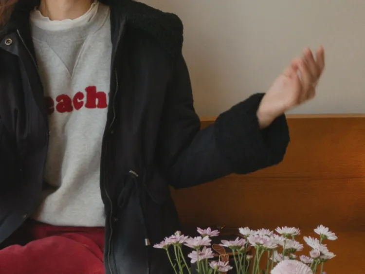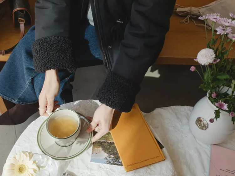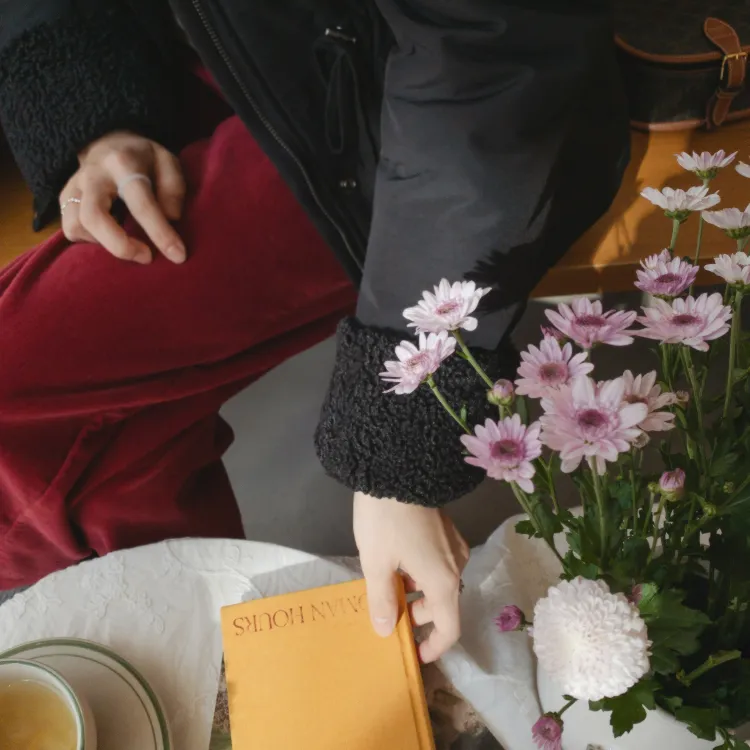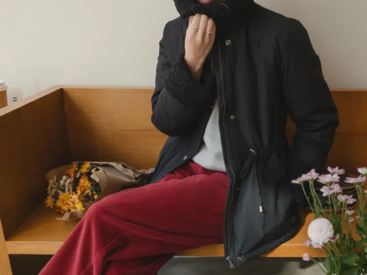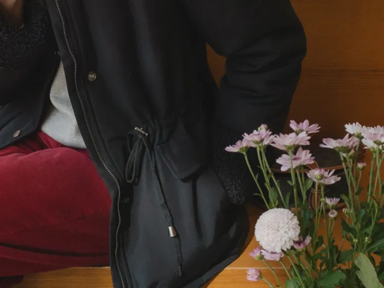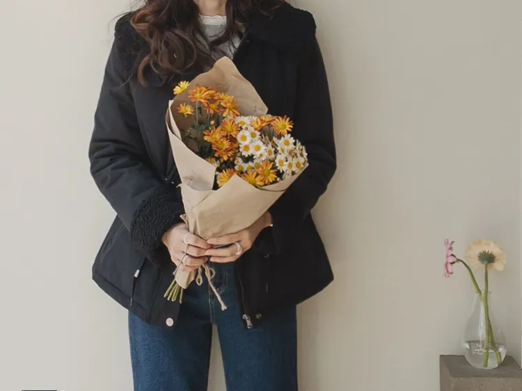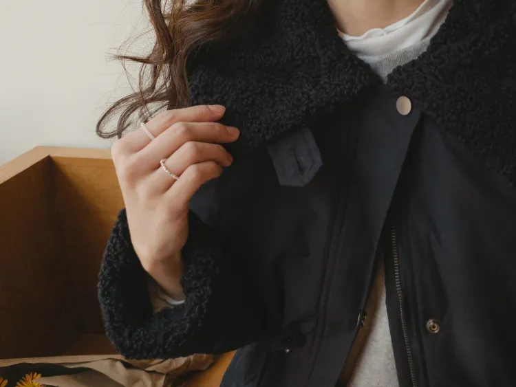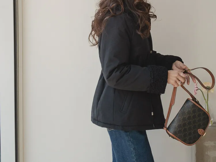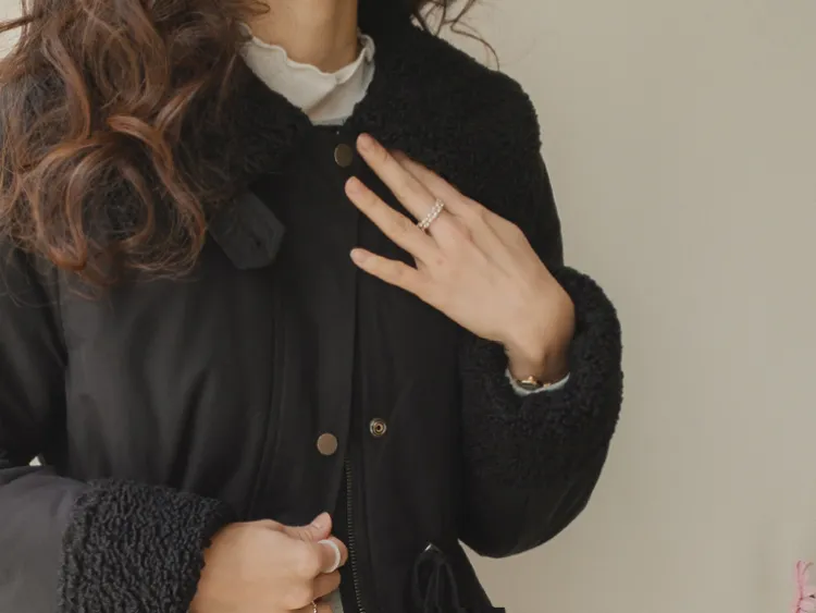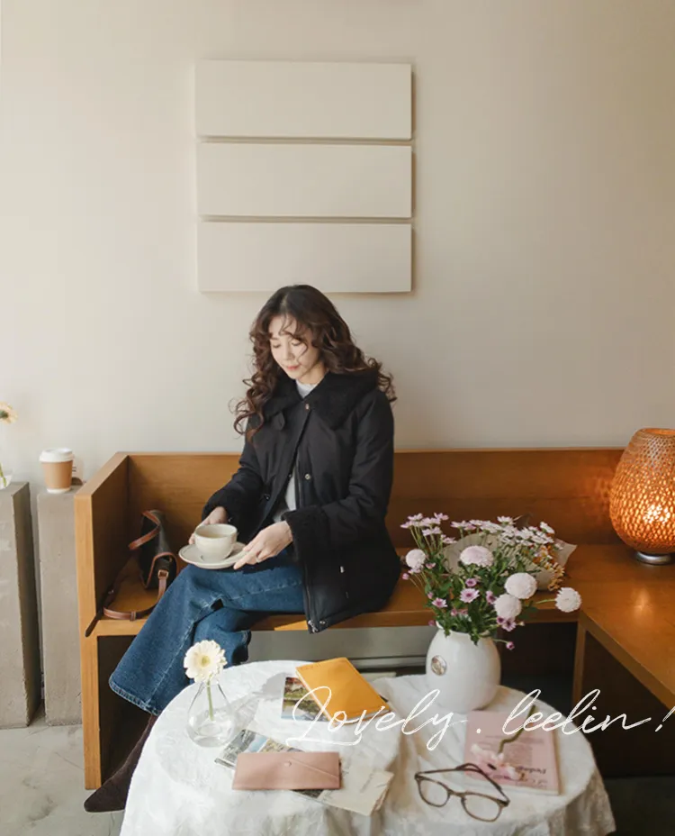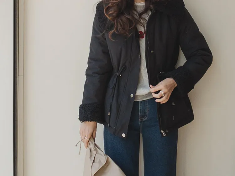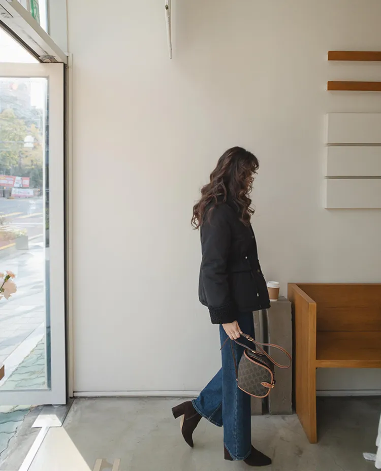 【領子和袖子末端有毛絨顏色設計的奢華外套♥】【用腰繩打造修身廓形~】【毛絨內襯和絎縫袖子讓你在冬天也能保持溫暖】【舒適的外觀非常適合日常穿著]