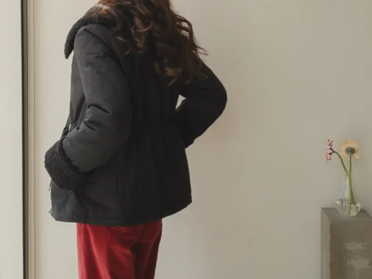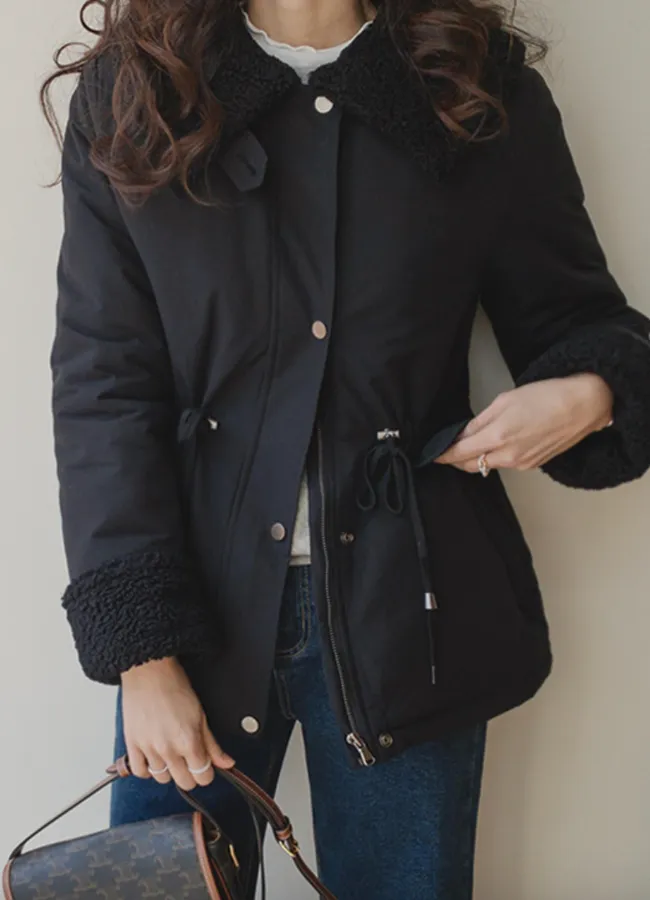 溫暖配色領口袖末毛絨抽繩收腰外套