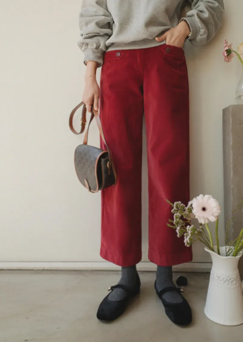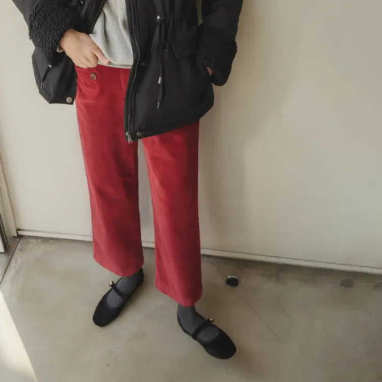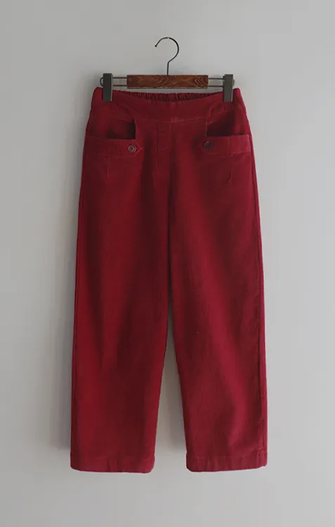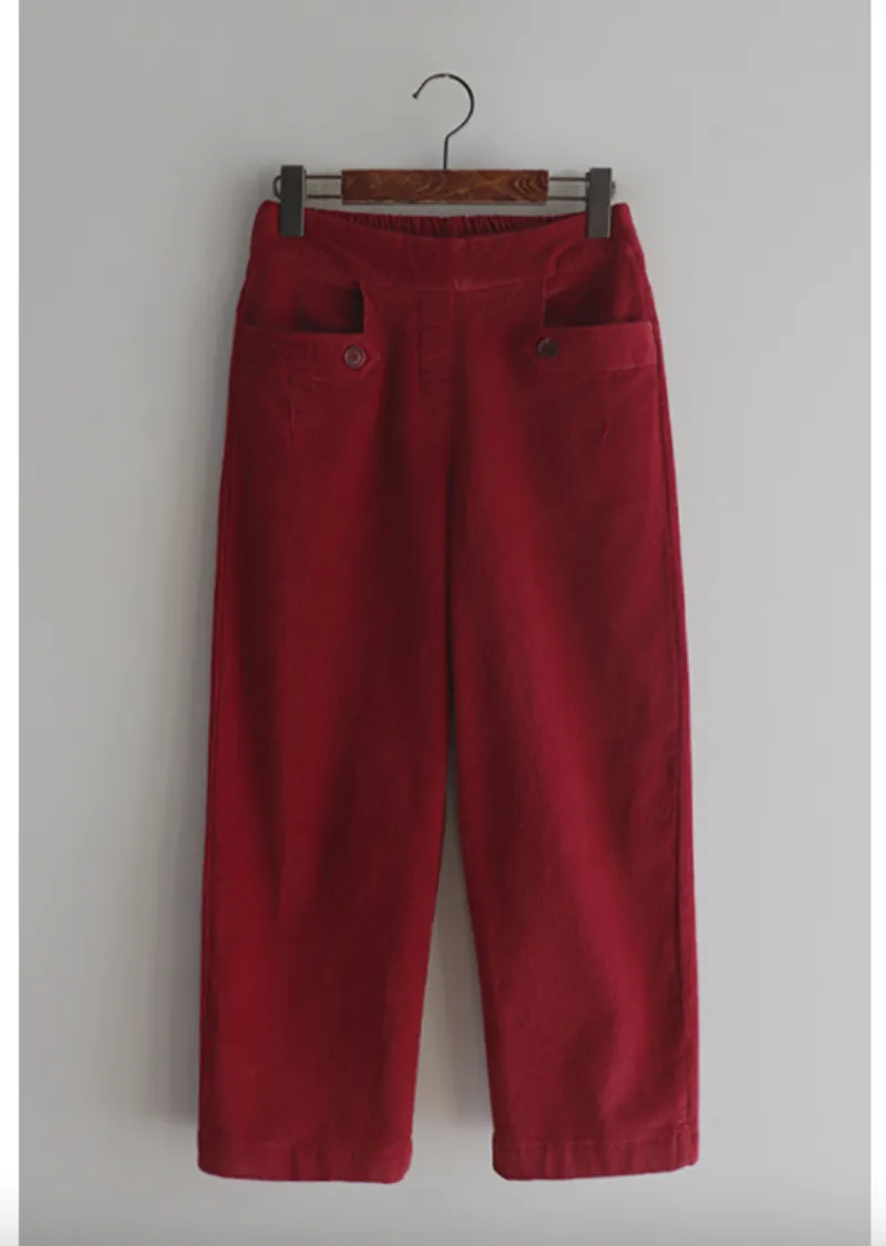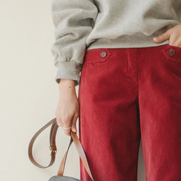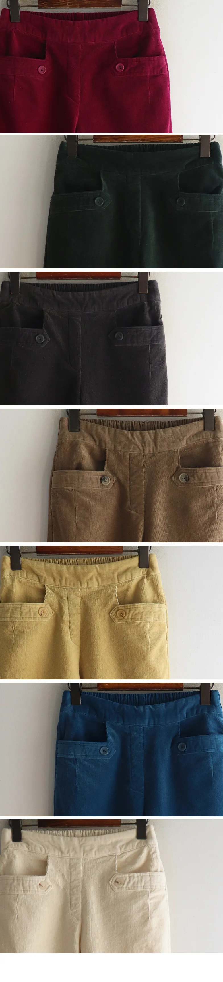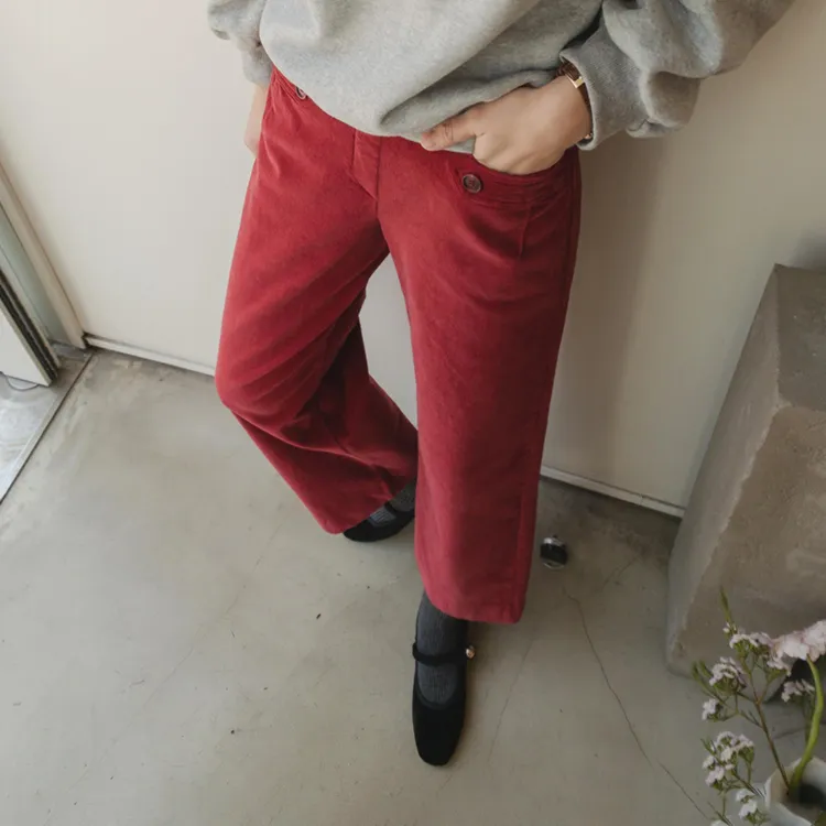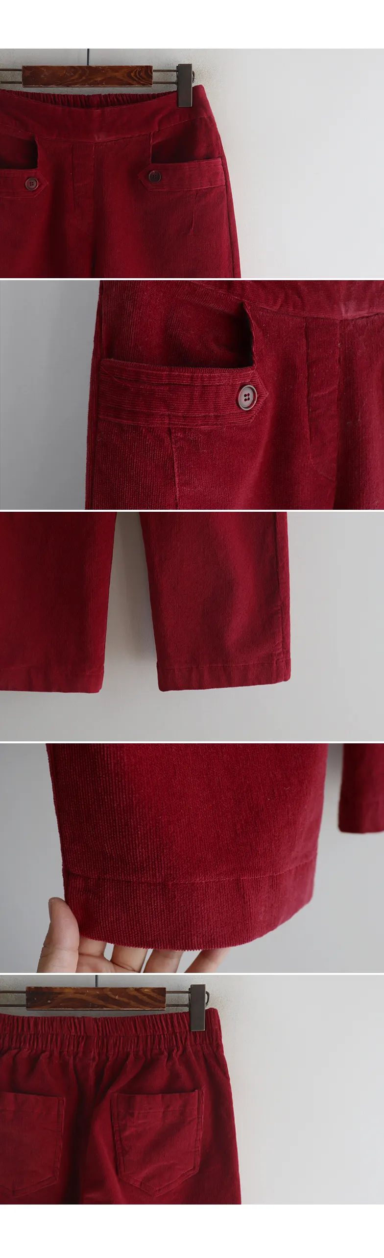 獨特鈕扣口袋設計半寬直筒燈芯絨休閒褲