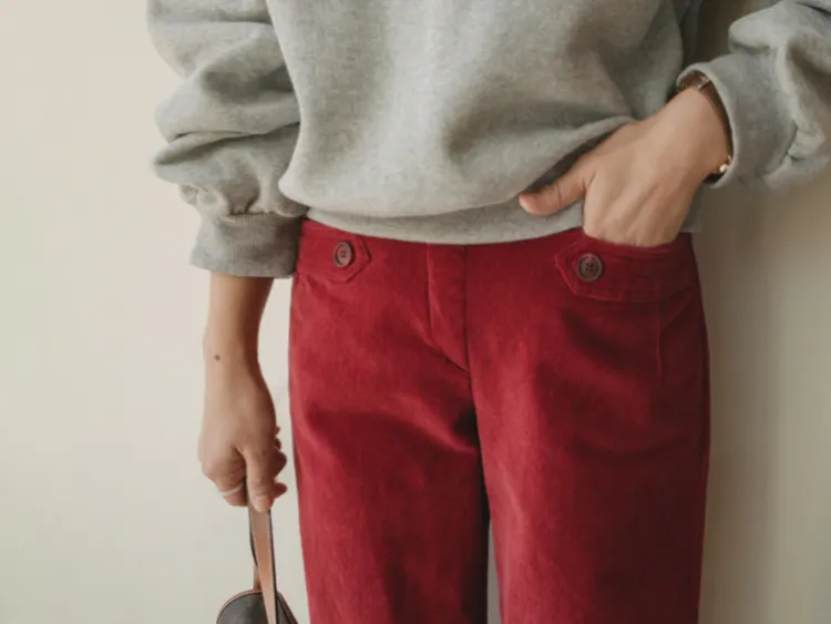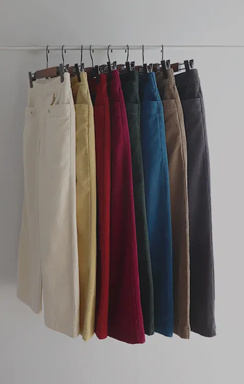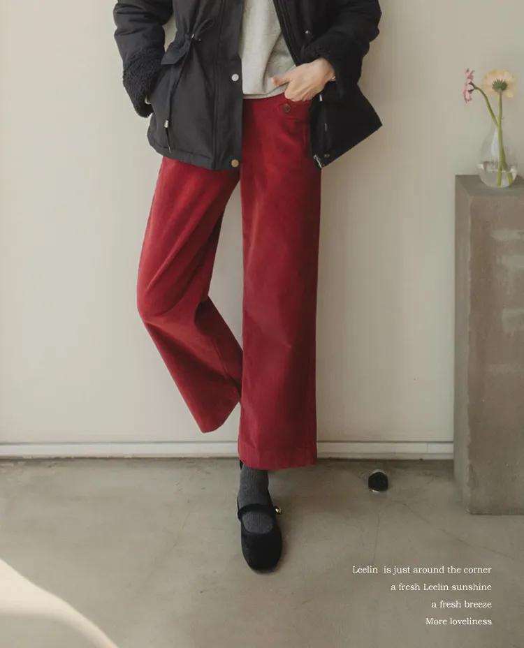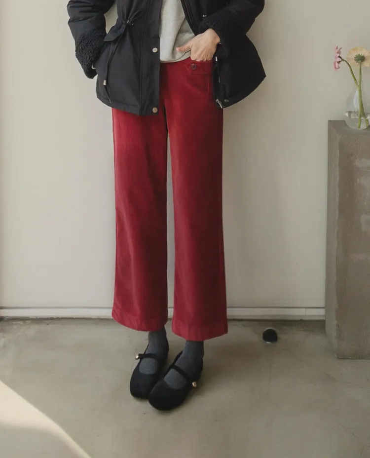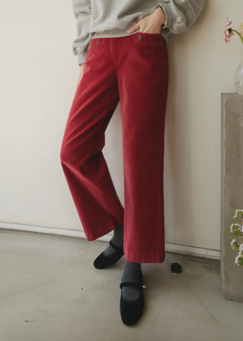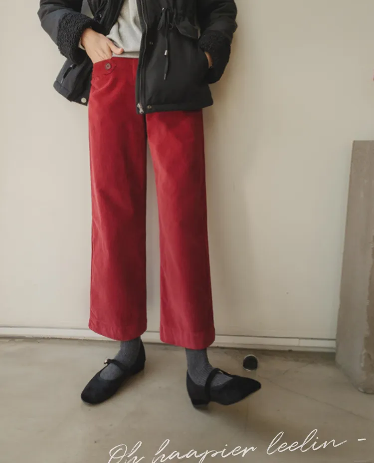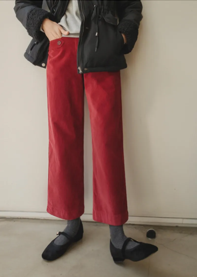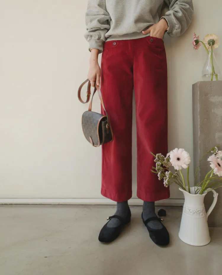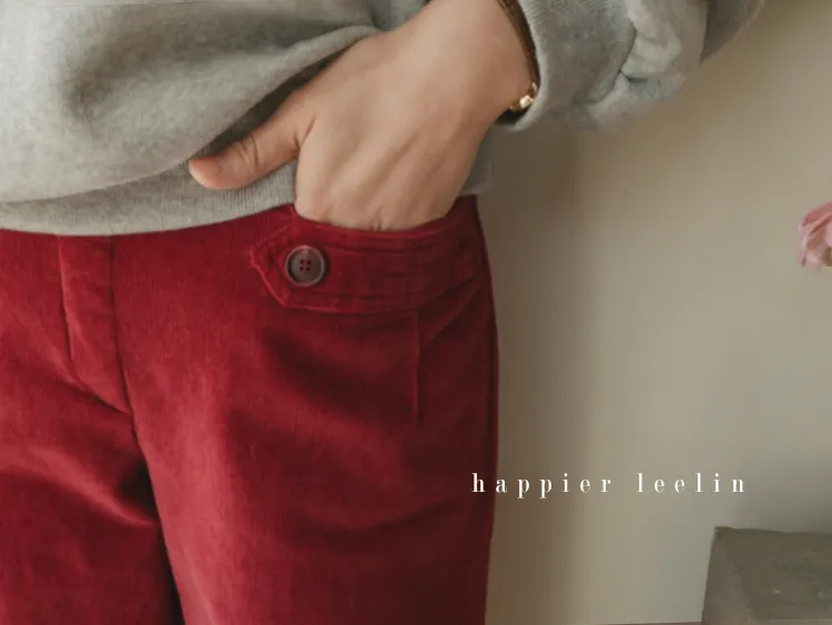 獨特鈕扣口袋設計半寬直筒燈芯絨休閒褲