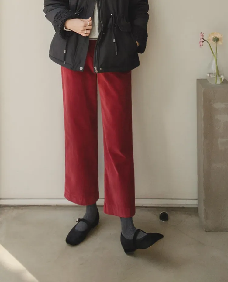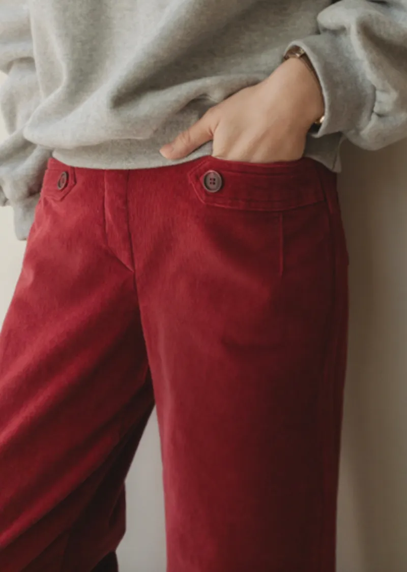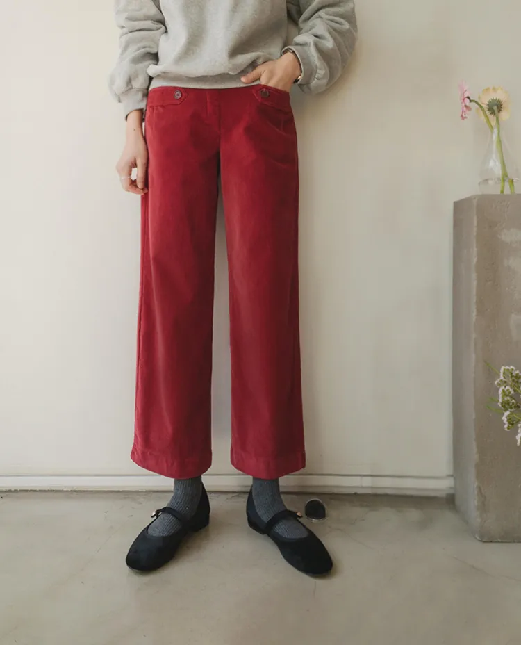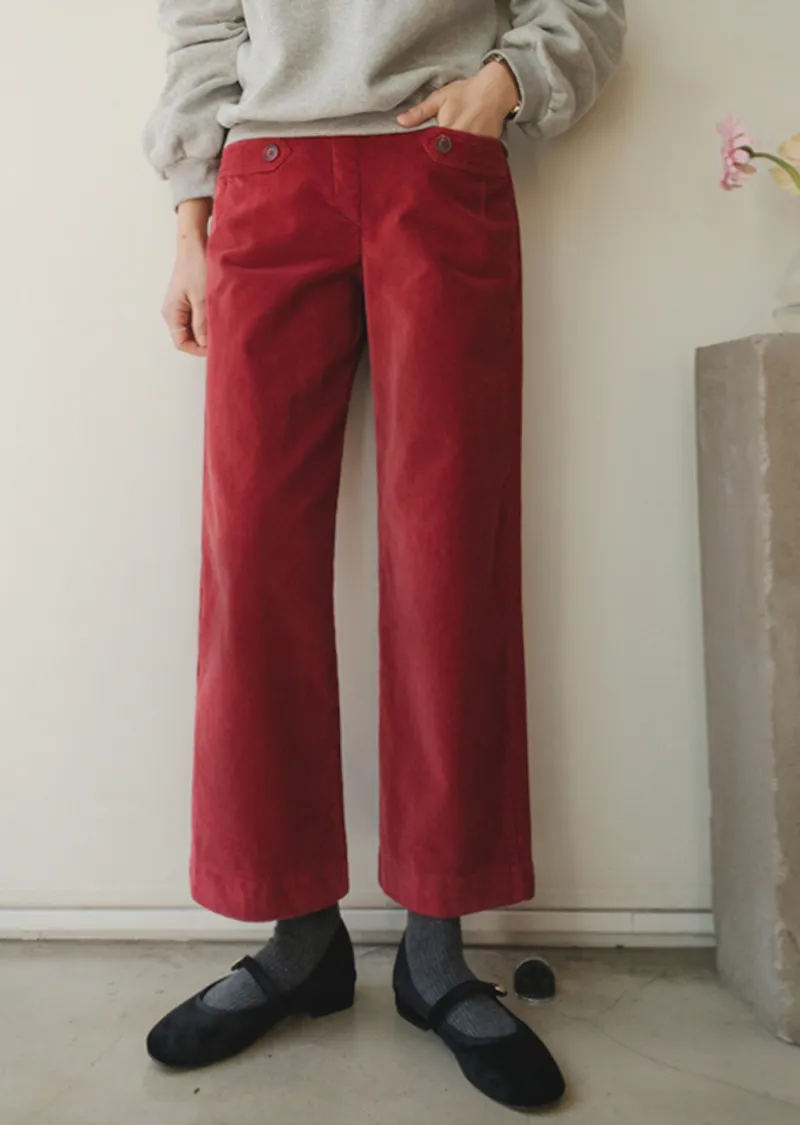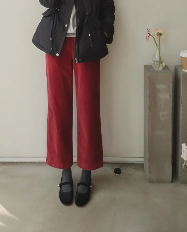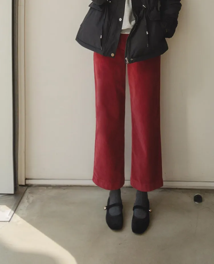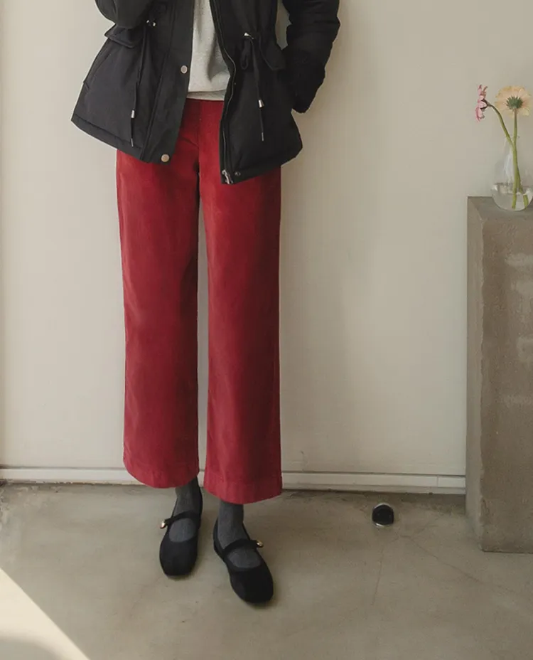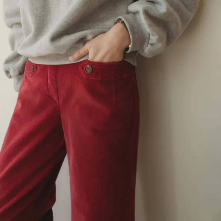 獨特鈕扣口袋設計半寬直筒燈芯絨休閒褲