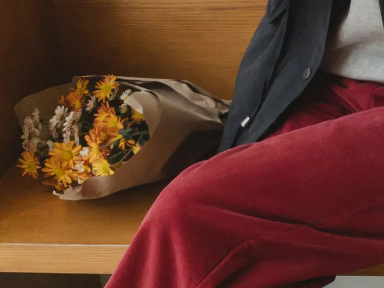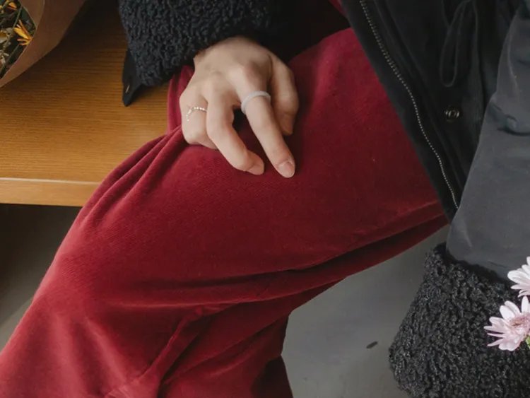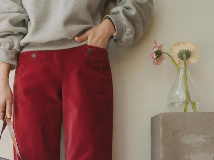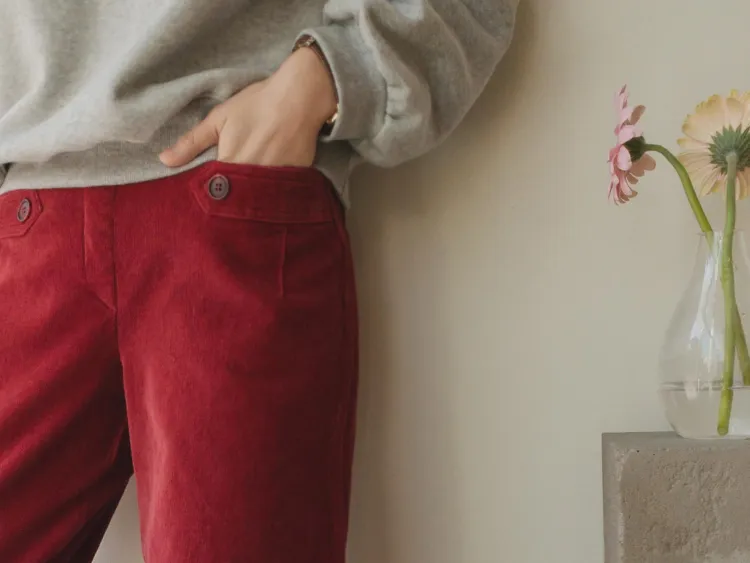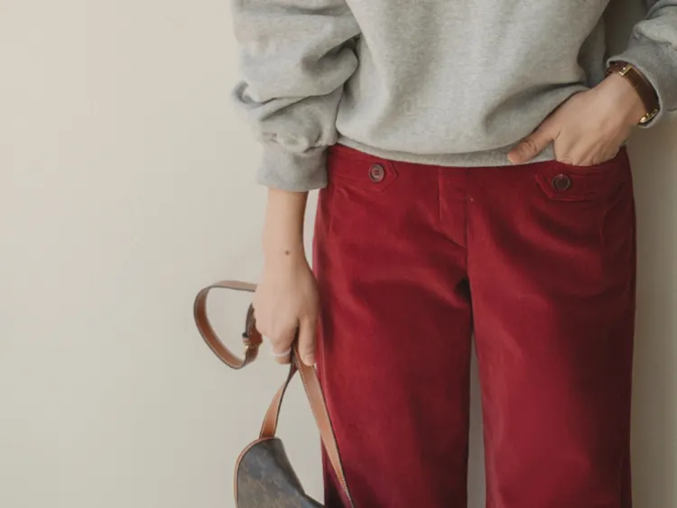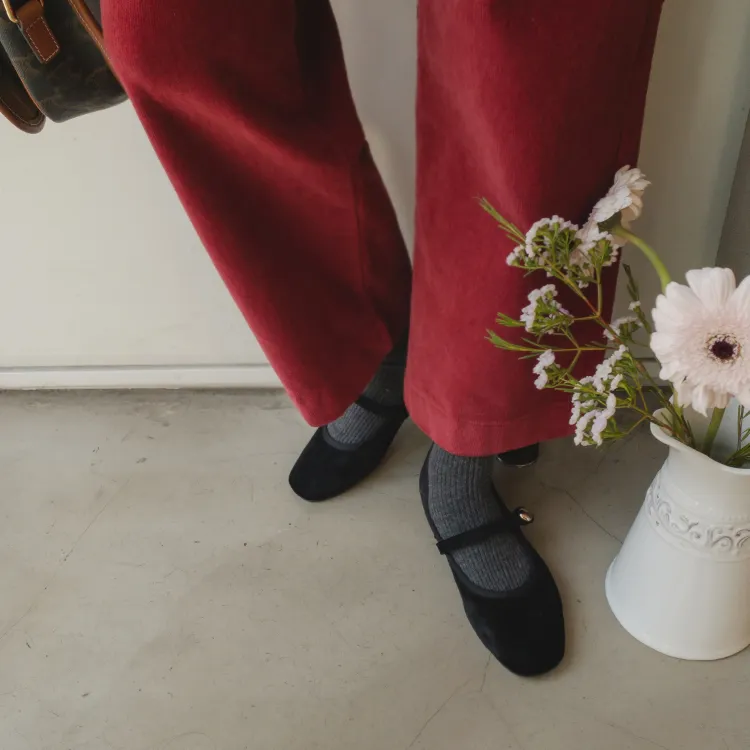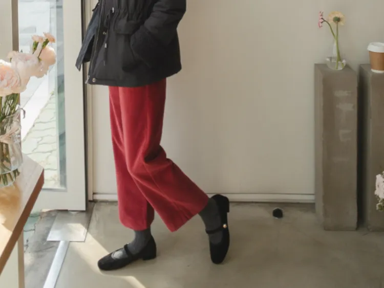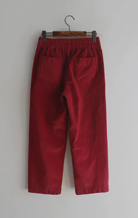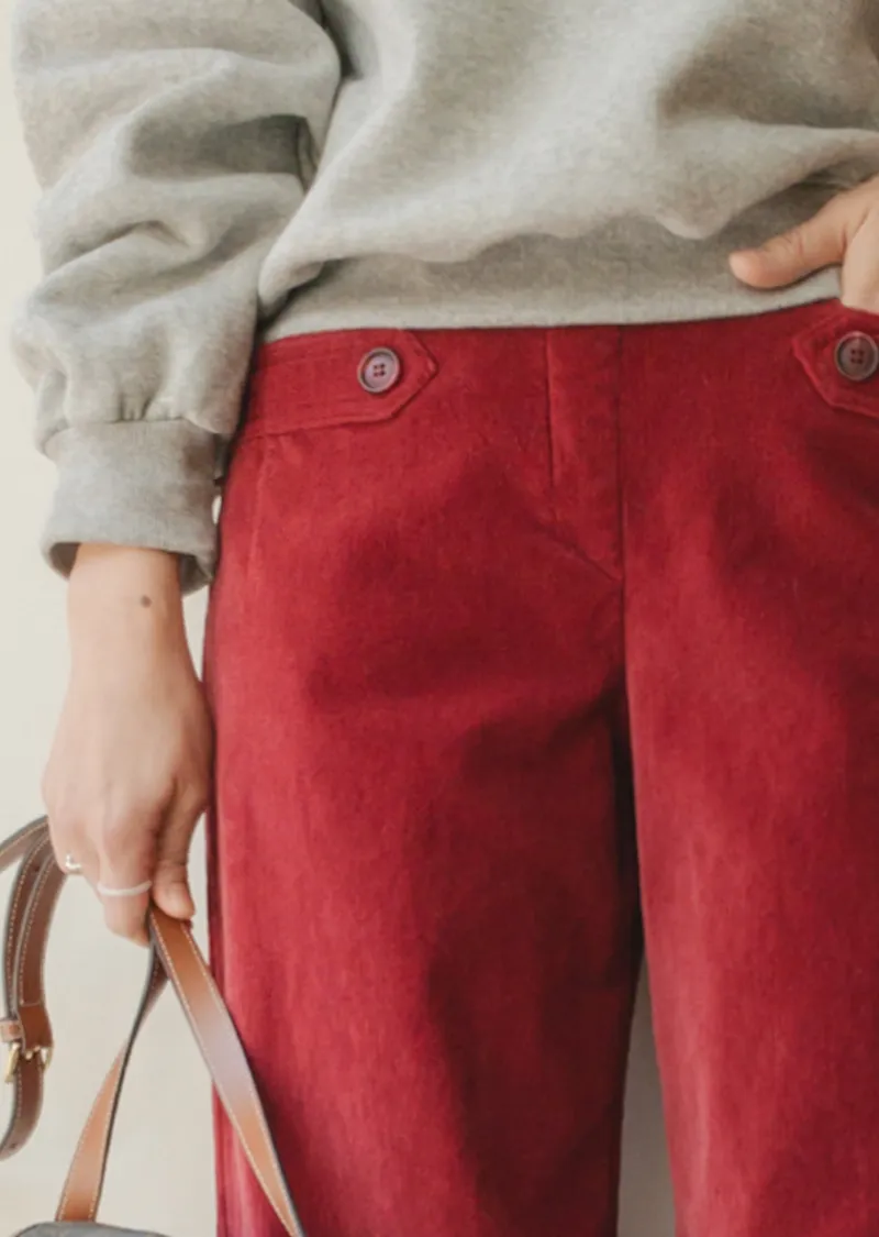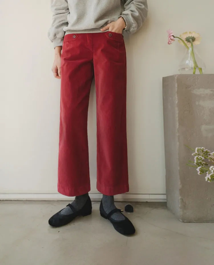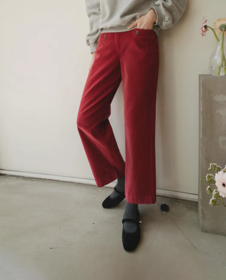 獨特鈕扣口袋設計半寬直筒燈芯絨休閒褲