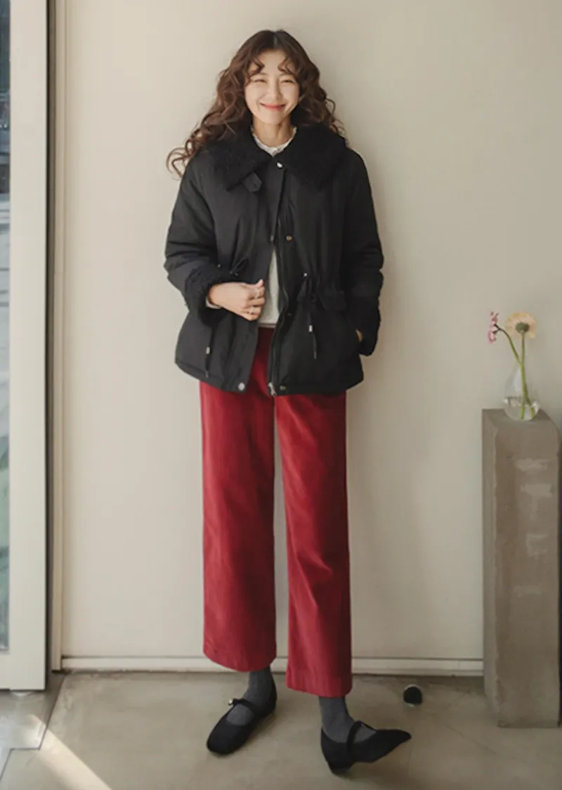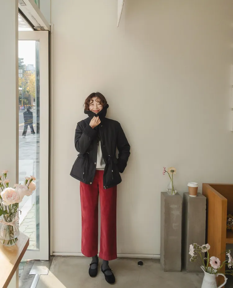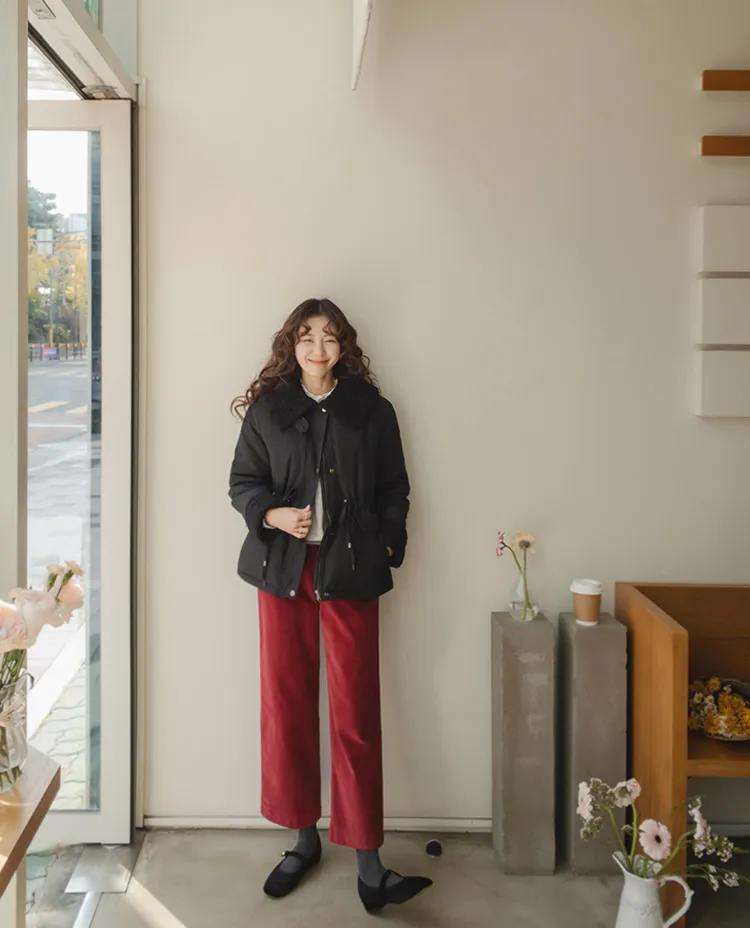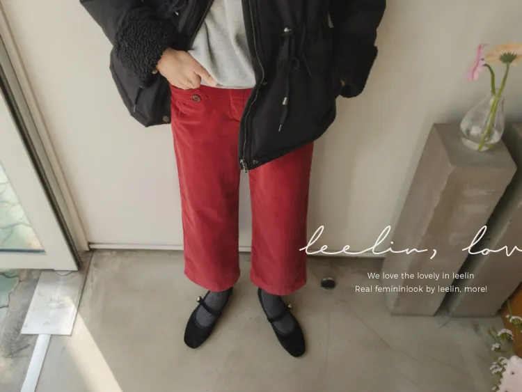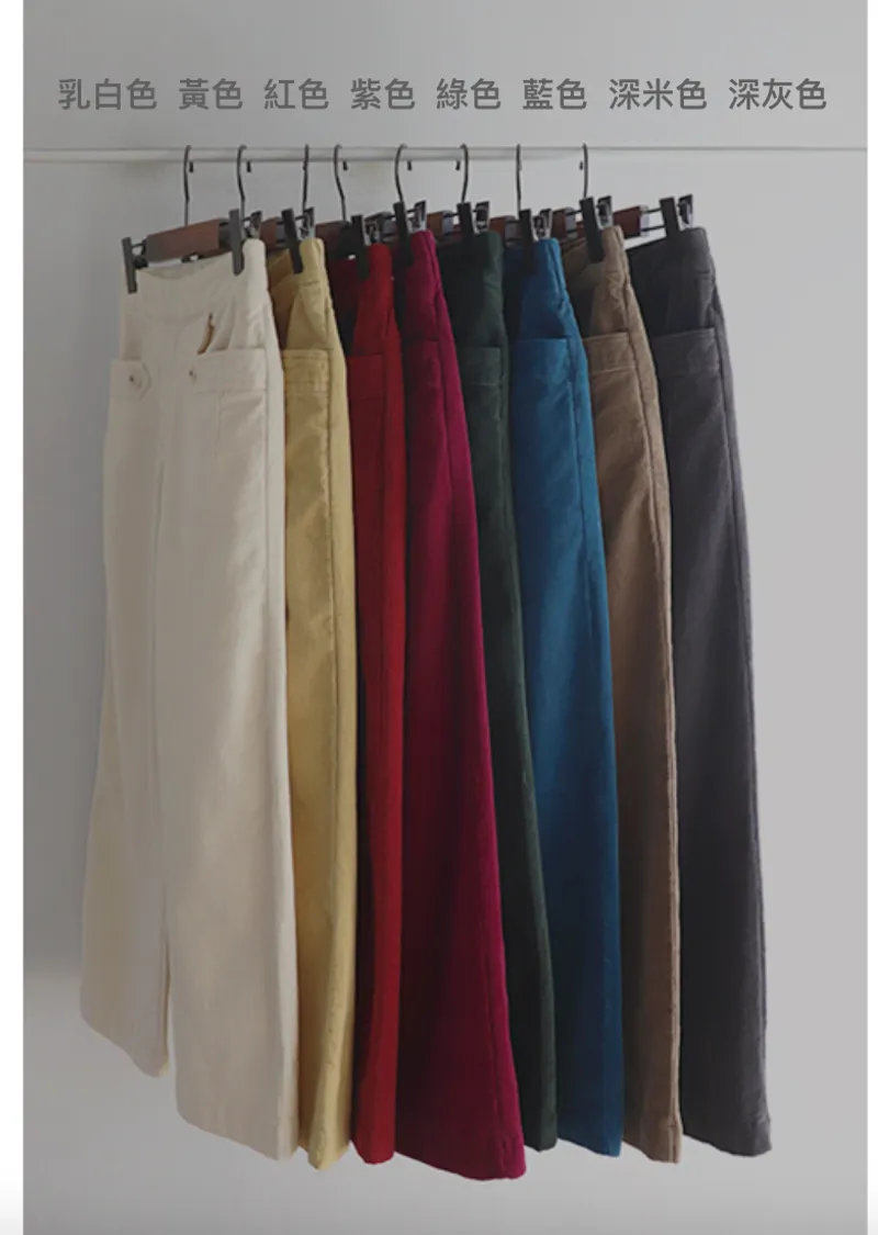 【半寬直筒褲,沉穩燈芯絨休閒褲♥】【搭配內裡的抓絨,可以穿到仲冬~】【兩側的鈕扣和鏤空細節帶出顯瘦效果】【多達8個色多種選項