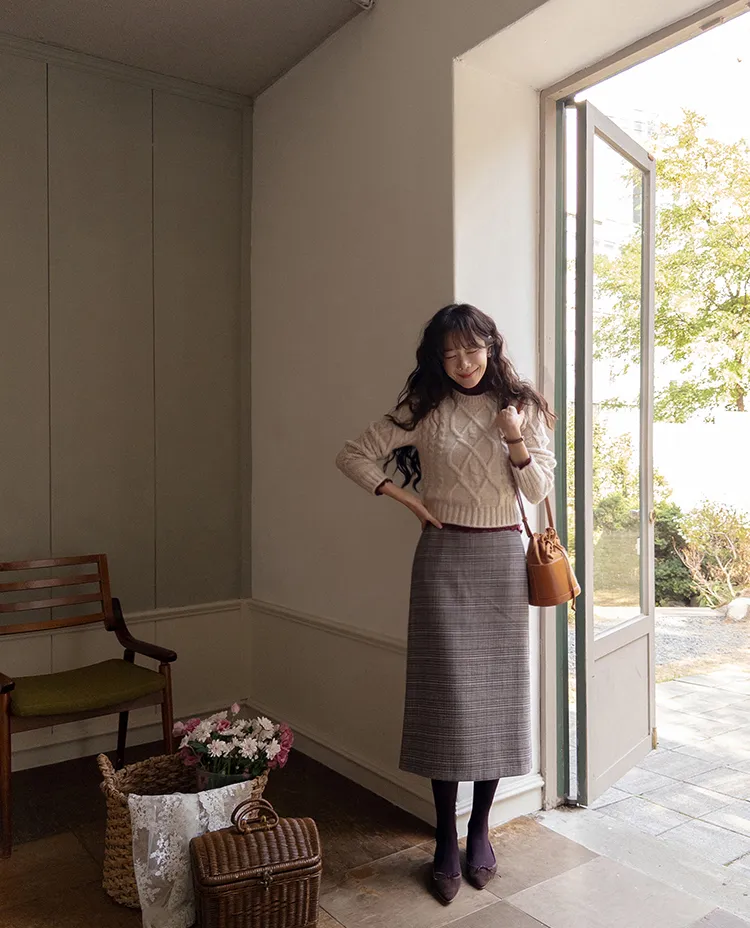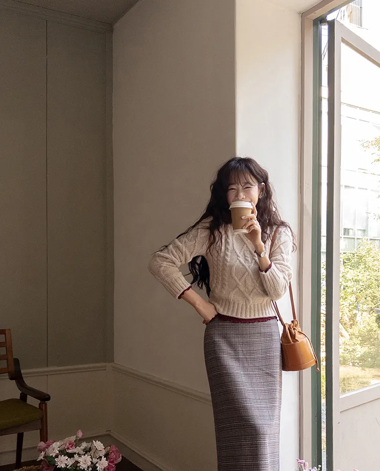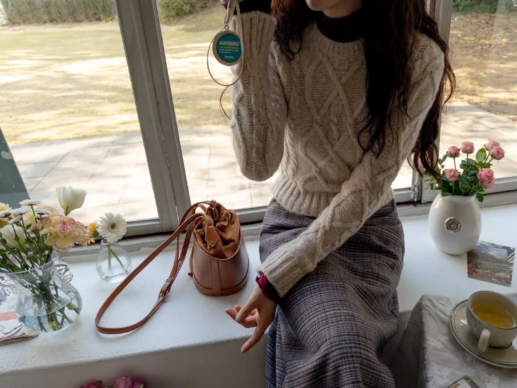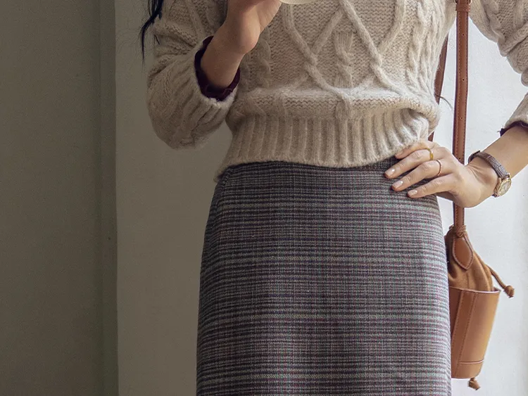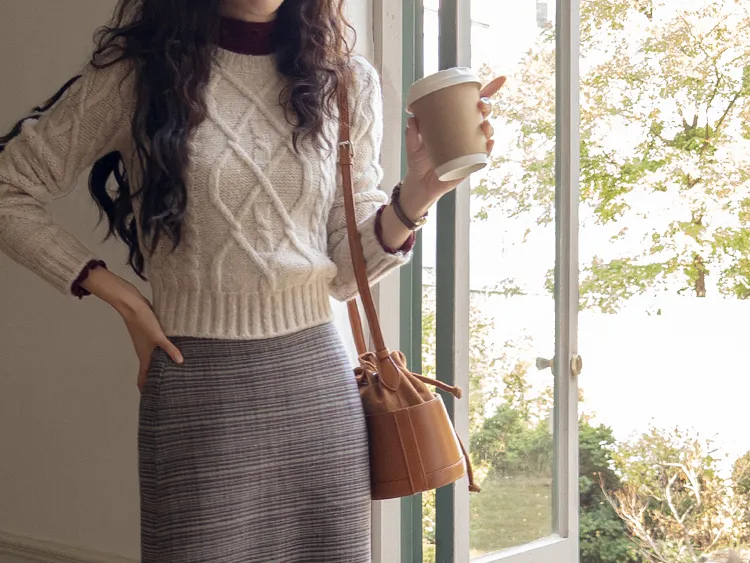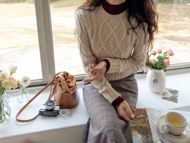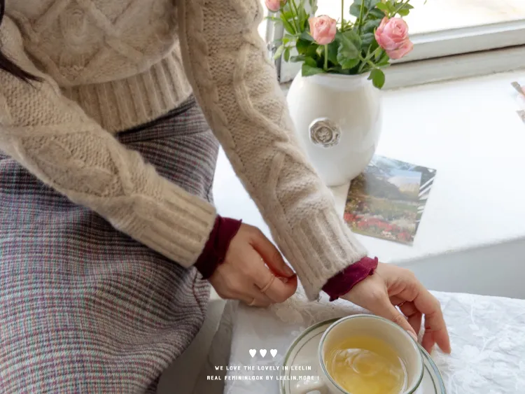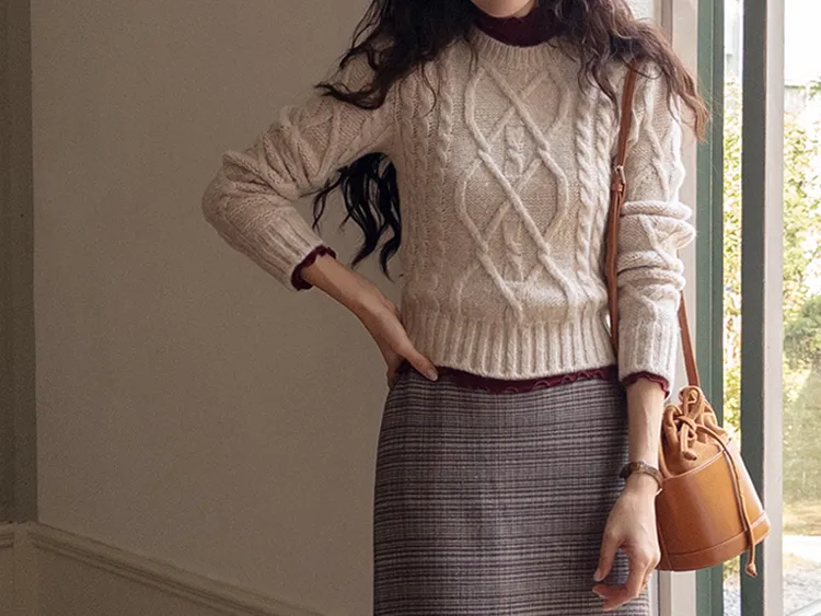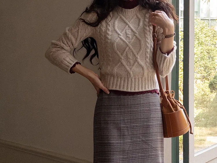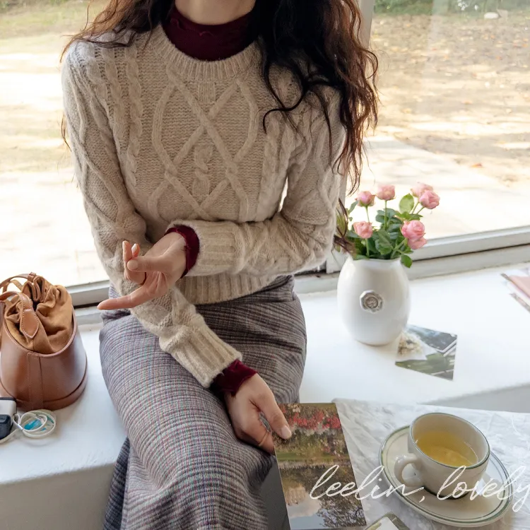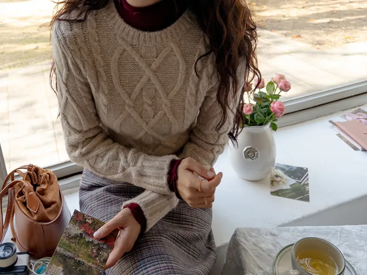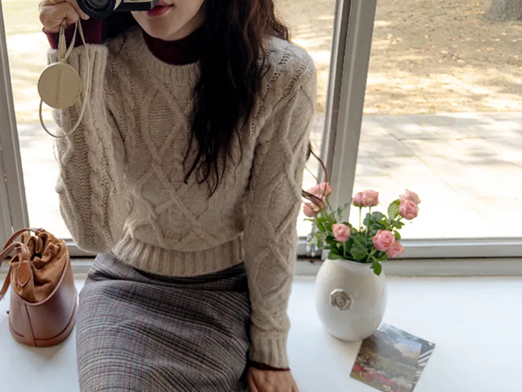 【三針編織使其厚實且百搭,整個冬天都可以穿著♥】【各種編織使其經典而充滿奢華~】【袖口和下擺提供穩定的輪廓】【羊毛混紡針織,可以穿到仲冬