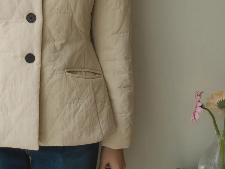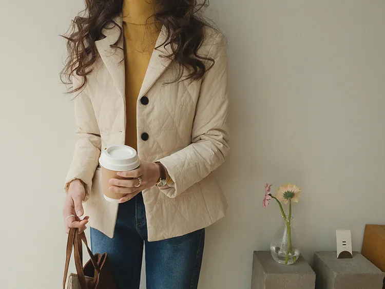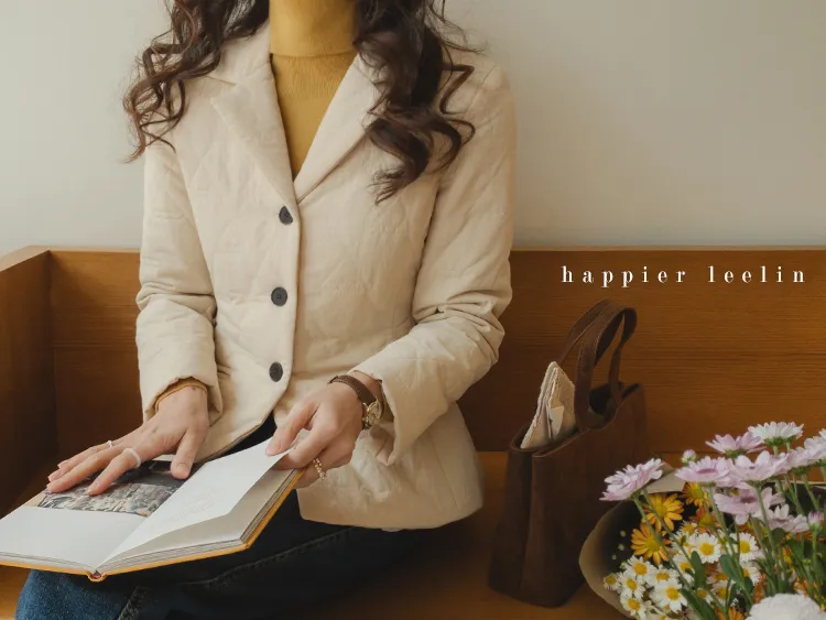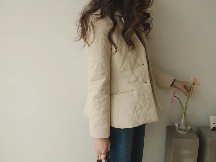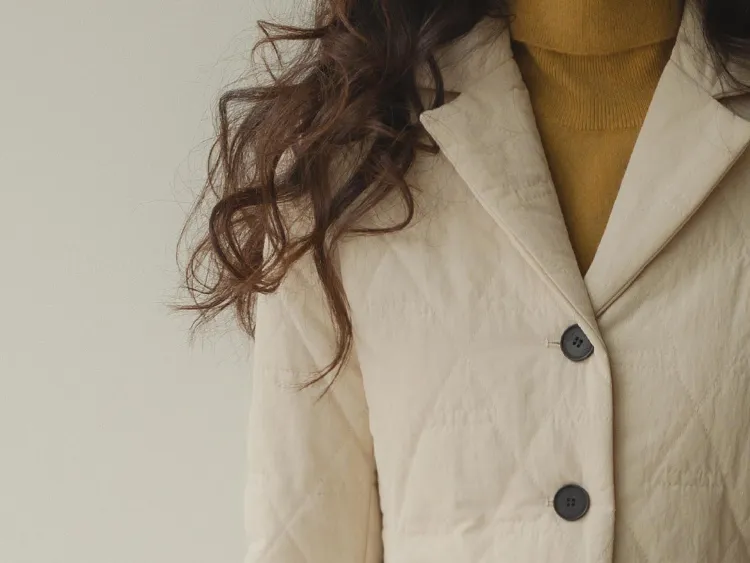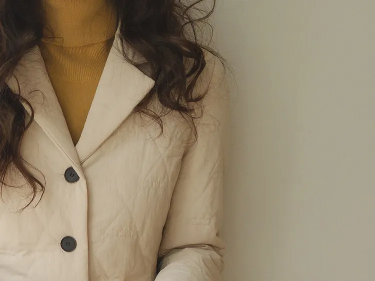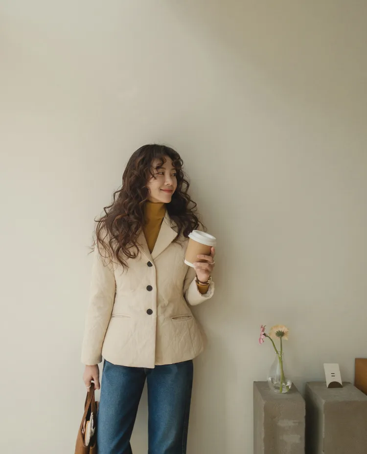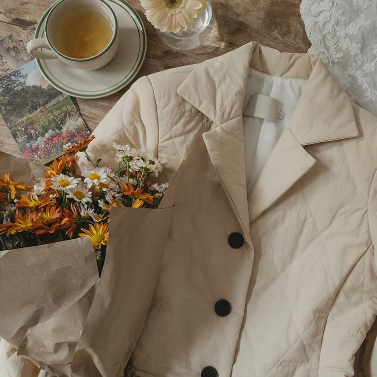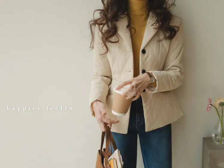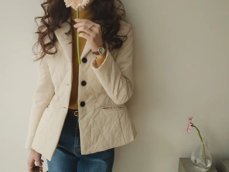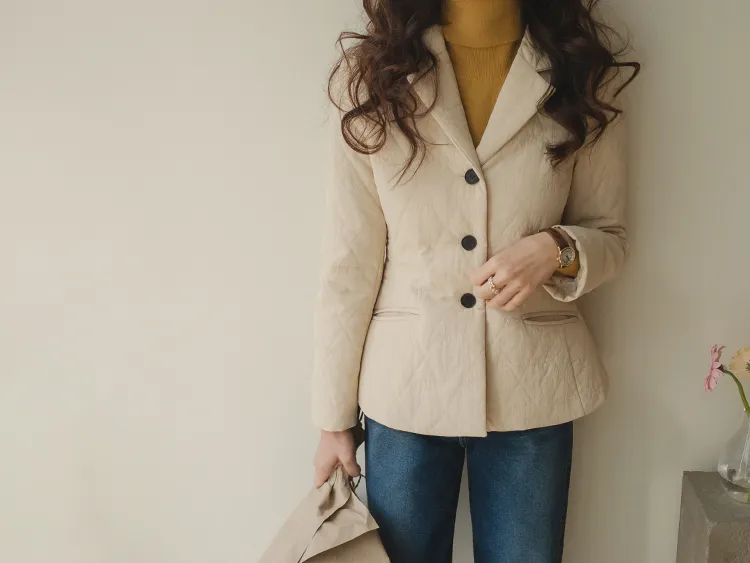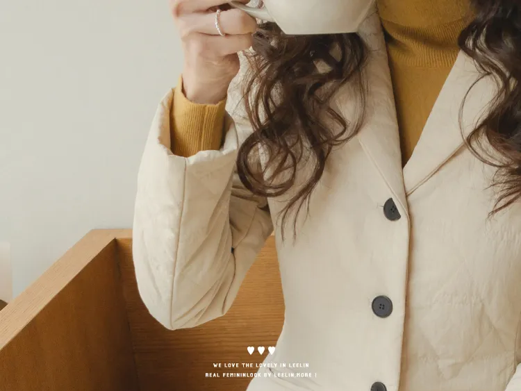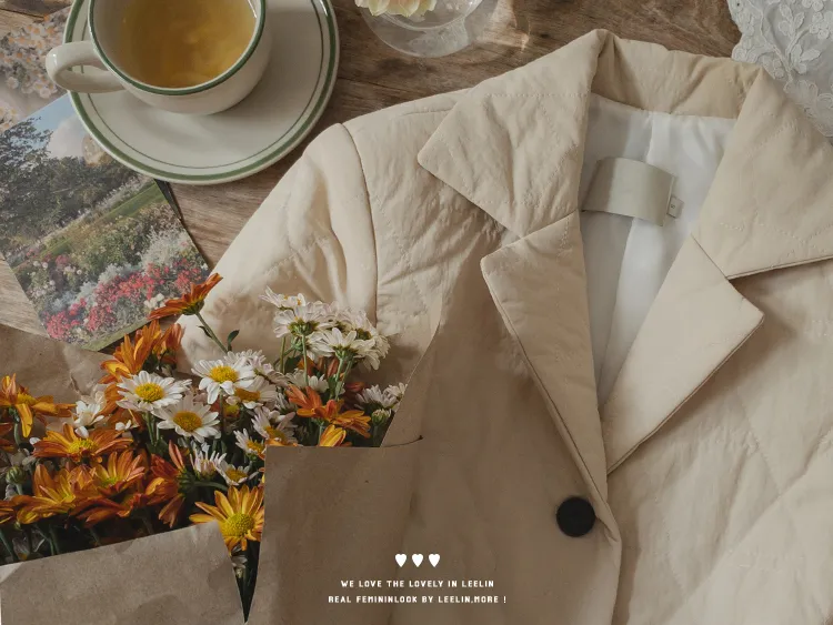 【襯墊,腰部線條纖細,女人味十足】【襯墊,在浪漫的心情中享受它~】【絎縫和領子設計,雖然有襯墊,但很奢華】【修身外套,可以從現在到初冬-!】