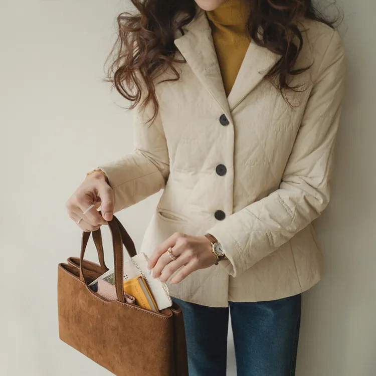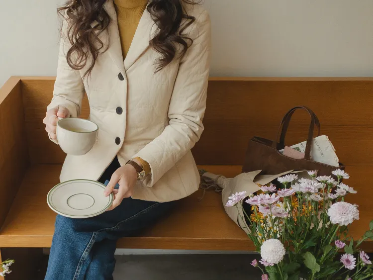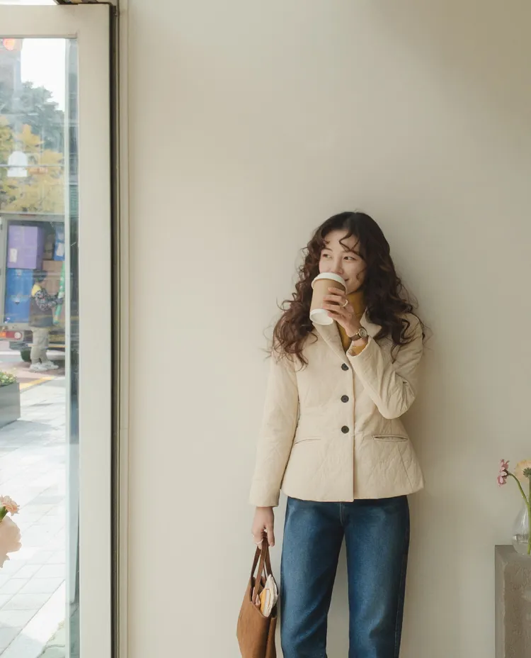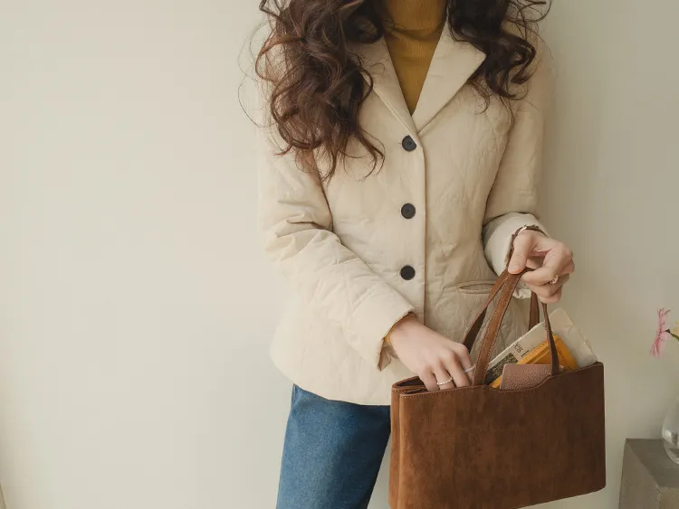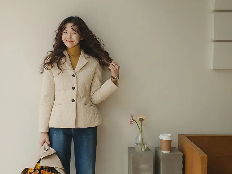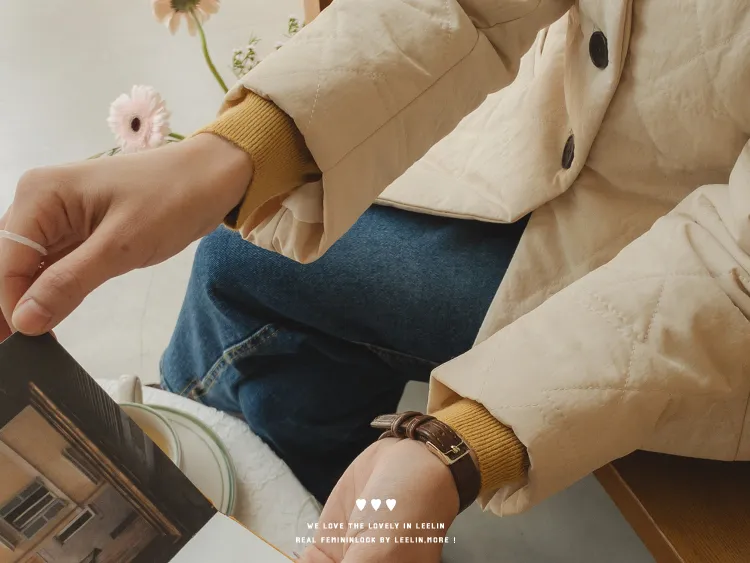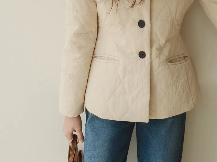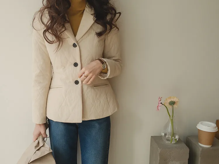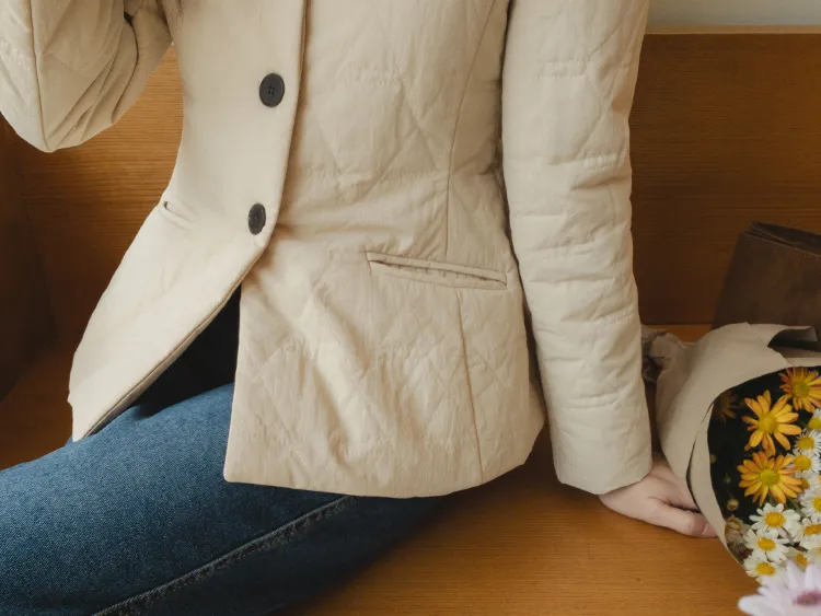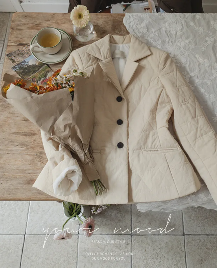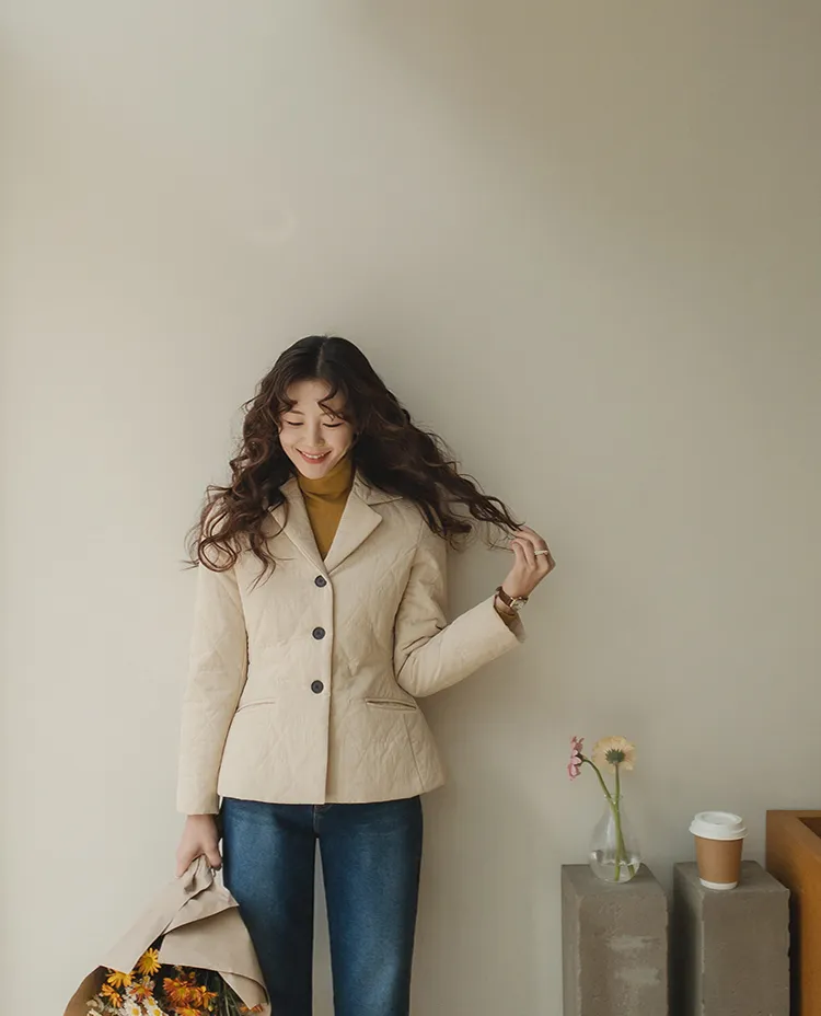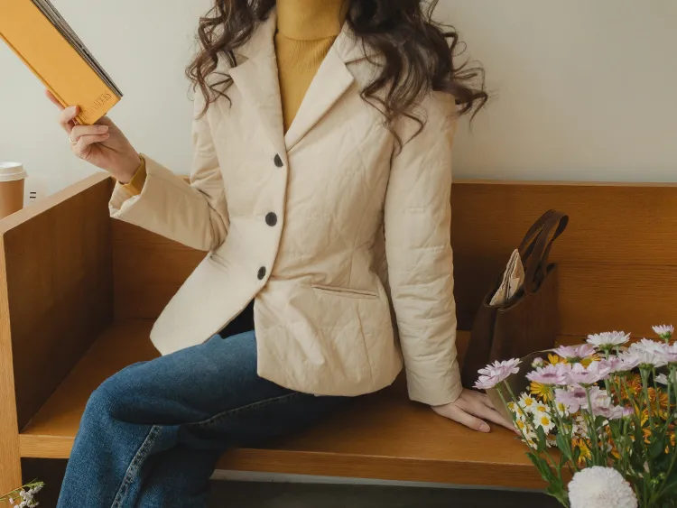 【襯墊,腰部線條纖細,女人味十足】【襯墊,在浪漫的心情中享受它~】【絎縫和領子設計,雖然有襯墊,但很奢華】【修身外套,可以從現在到初冬-!】