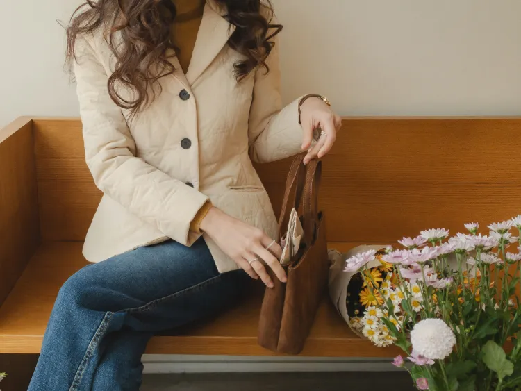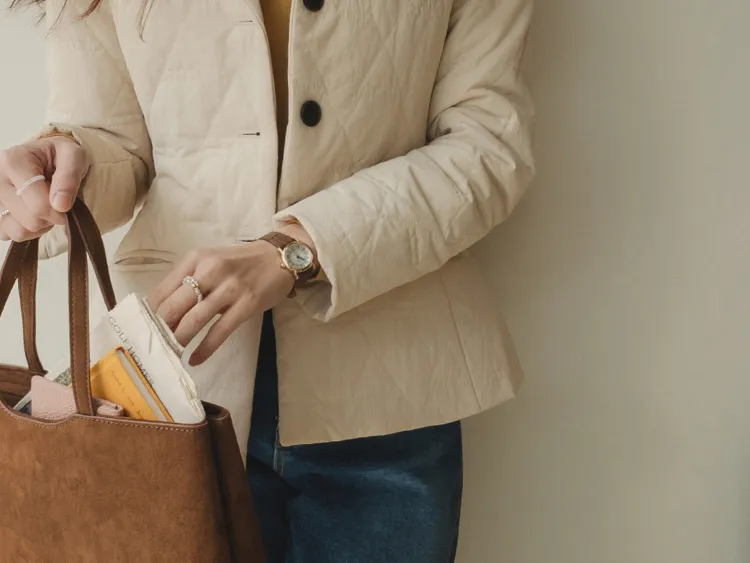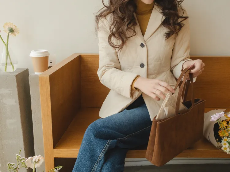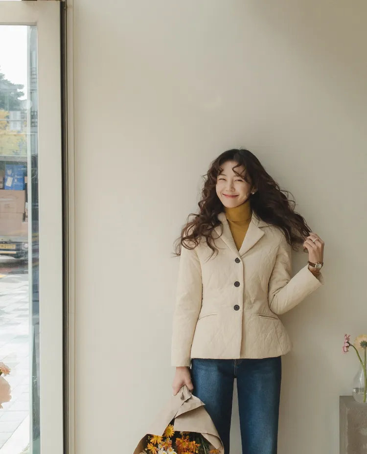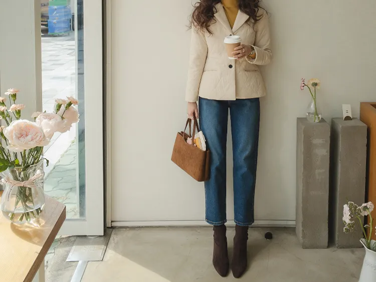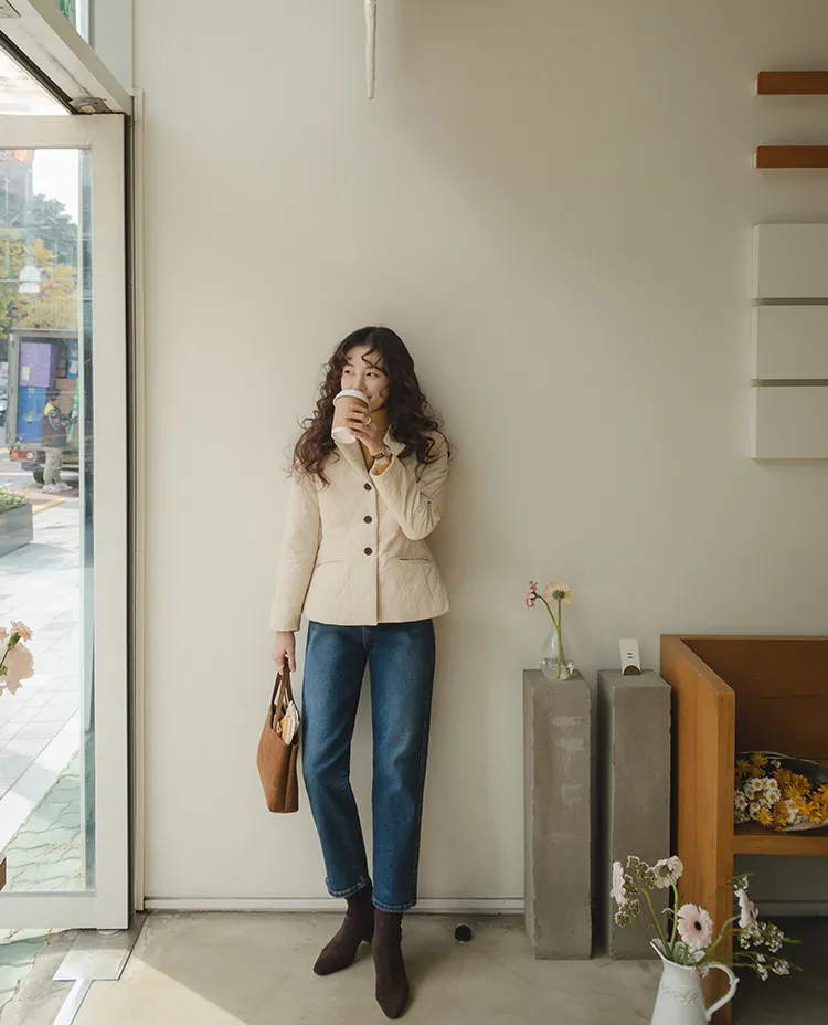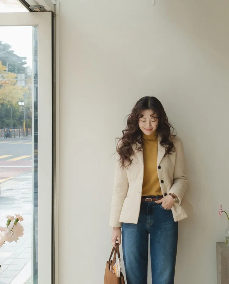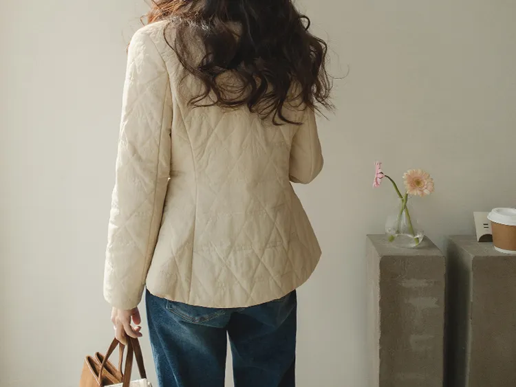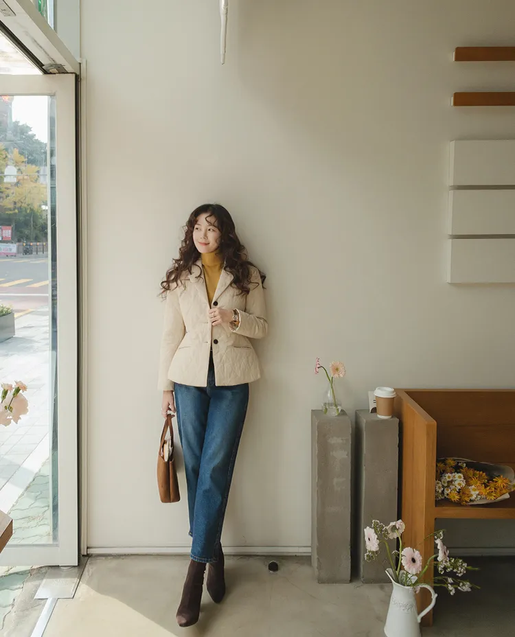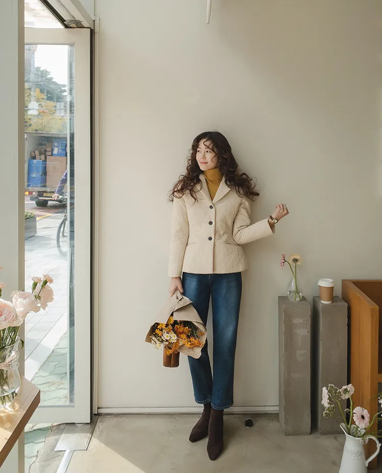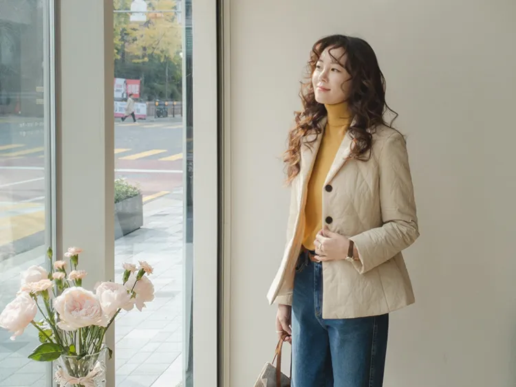 【襯墊,腰部線條纖細,女人味十足】【襯墊,在浪漫的心情中享受它~】【絎縫和領子設計,雖然有襯墊,但很奢華】【修身外套,可以從現在到初冬-!】