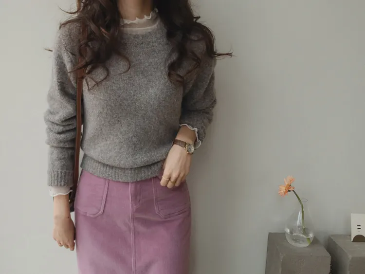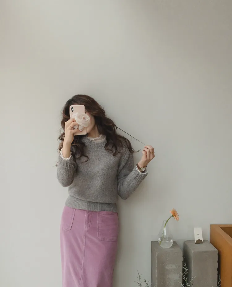 感性柔和圓領針織上衣