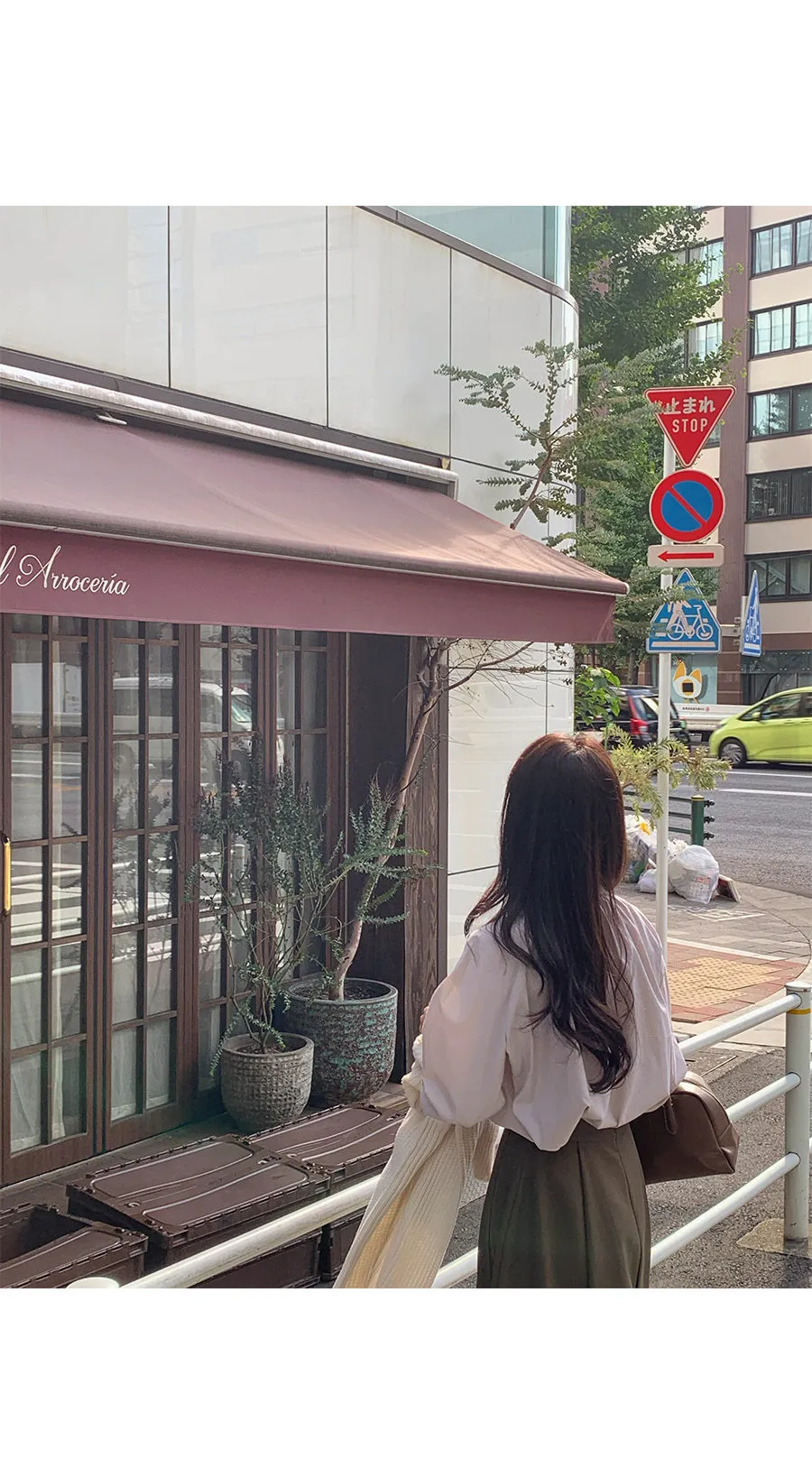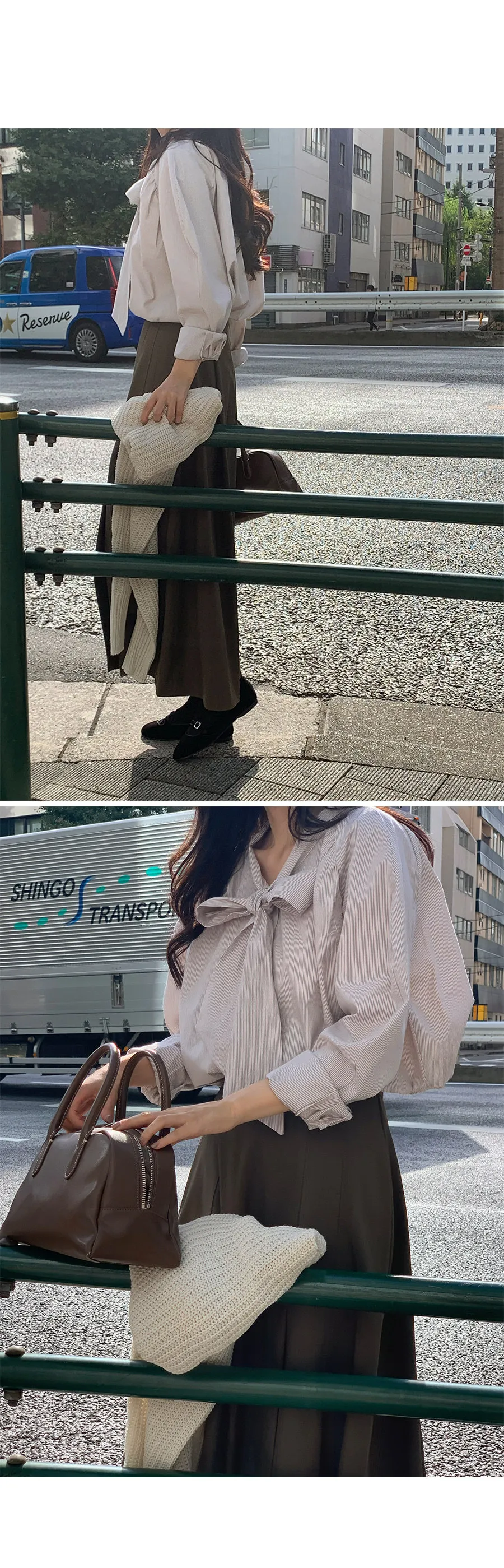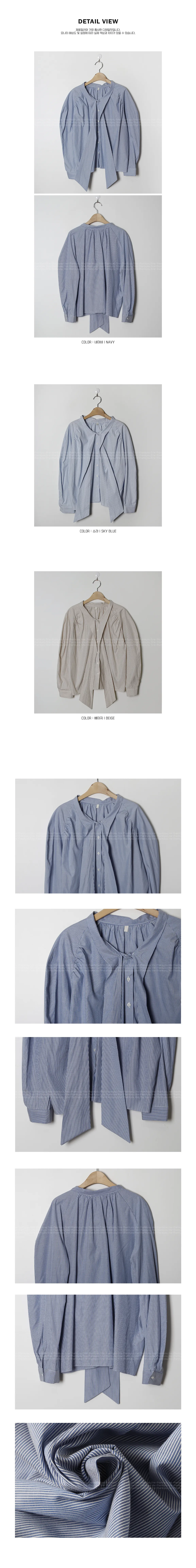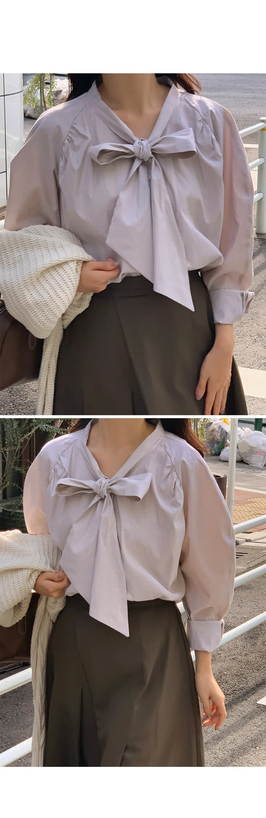 雅緻大領綁帶連肩設計條紋排扣上衣