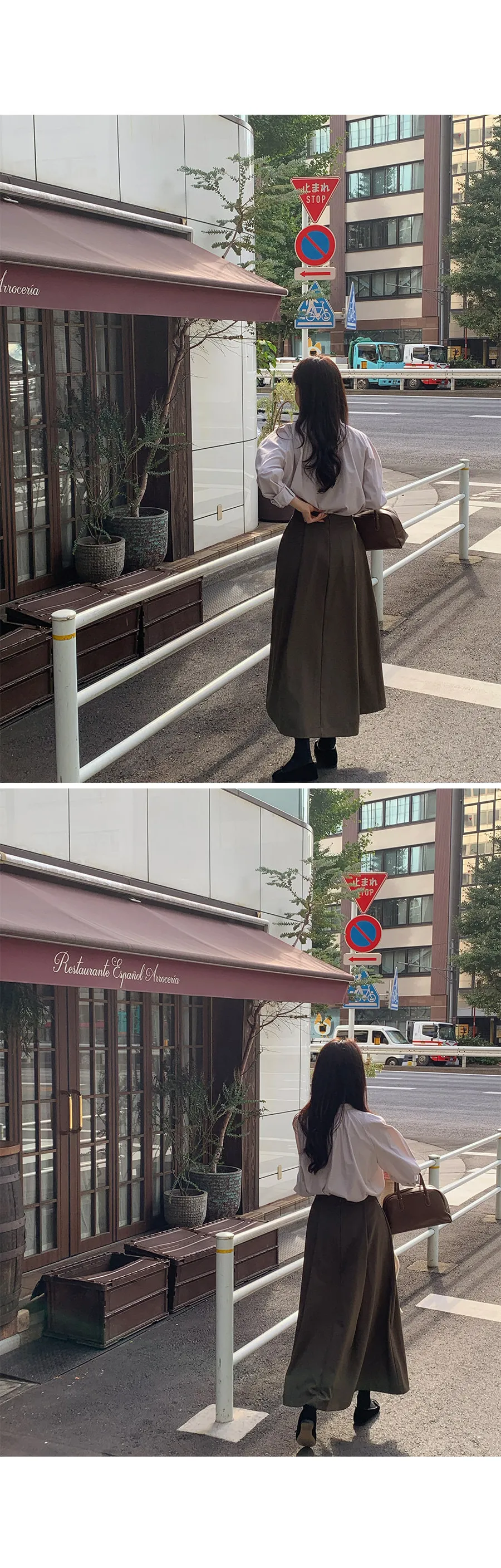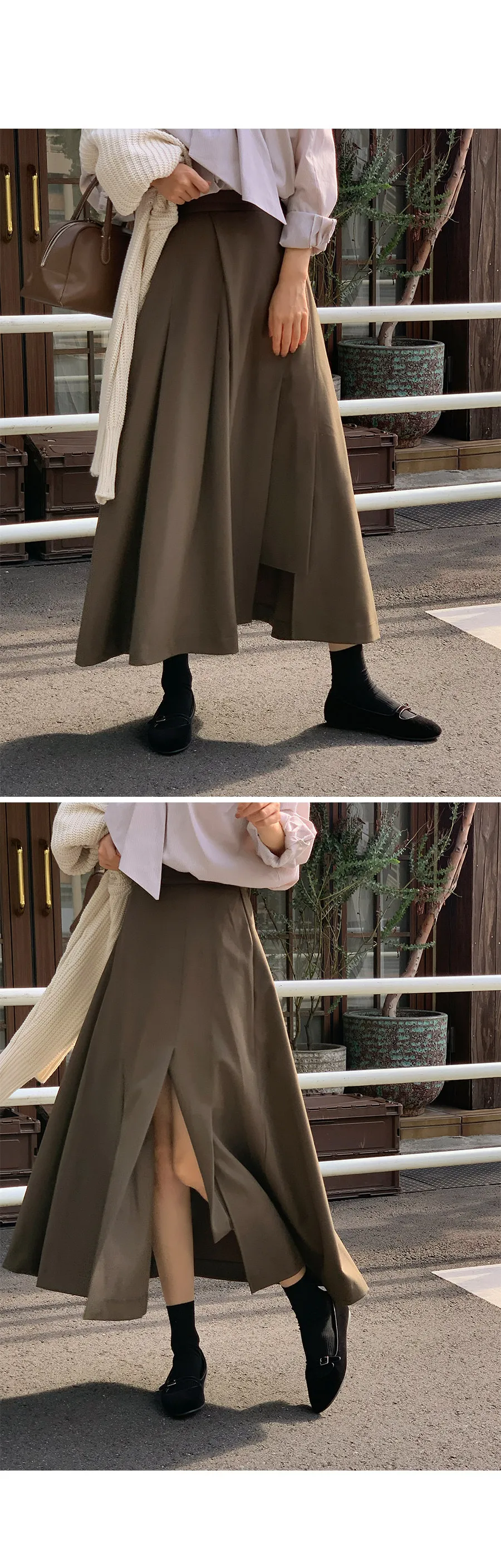 微微露出腿部線條的方形開衩完善了女人味,而右褶與針褶線相結合的不對稱設計增添了獨特的亮點——!