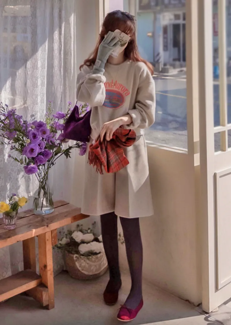 [襯裡:溫暖的軟毛刷][羊毛拉絨上衣,拉絨外襯][精緻的色彩,給人一種應季的感覺][穿著靈活,溫暖,觸感柔軟][強調字母刺繡和印花][建議作為基本保暖單品]