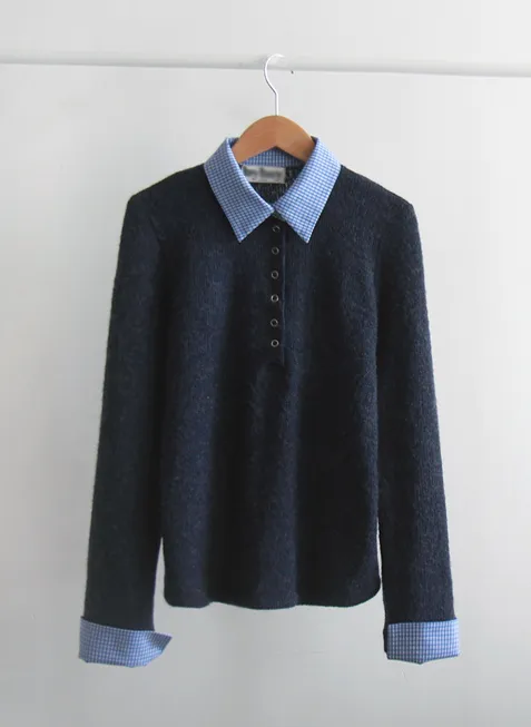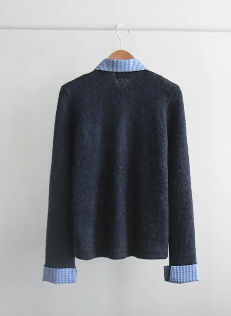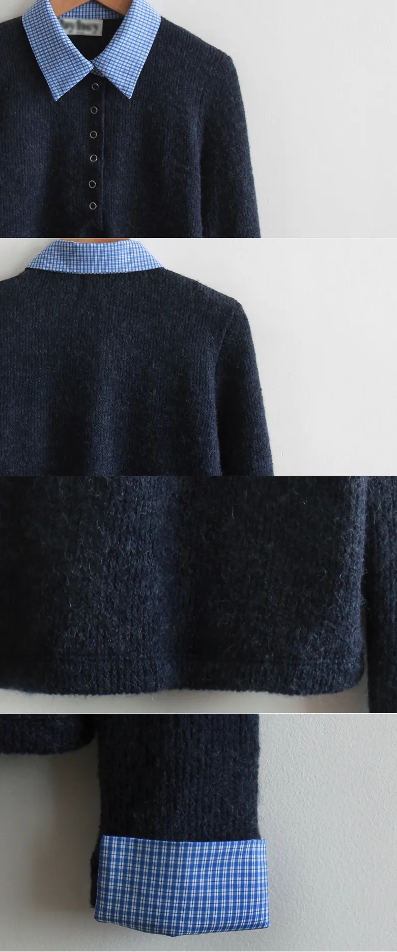 [可紐扣開合][針織材質柔軟有彈性][領子非常漂亮,格紋配色細節豐富][袖子的格紋配色也給人一種活潑的感覺][舒適柔軟的針織,有彈性][保暖又時尚,推薦這款漂亮的格紋配色]