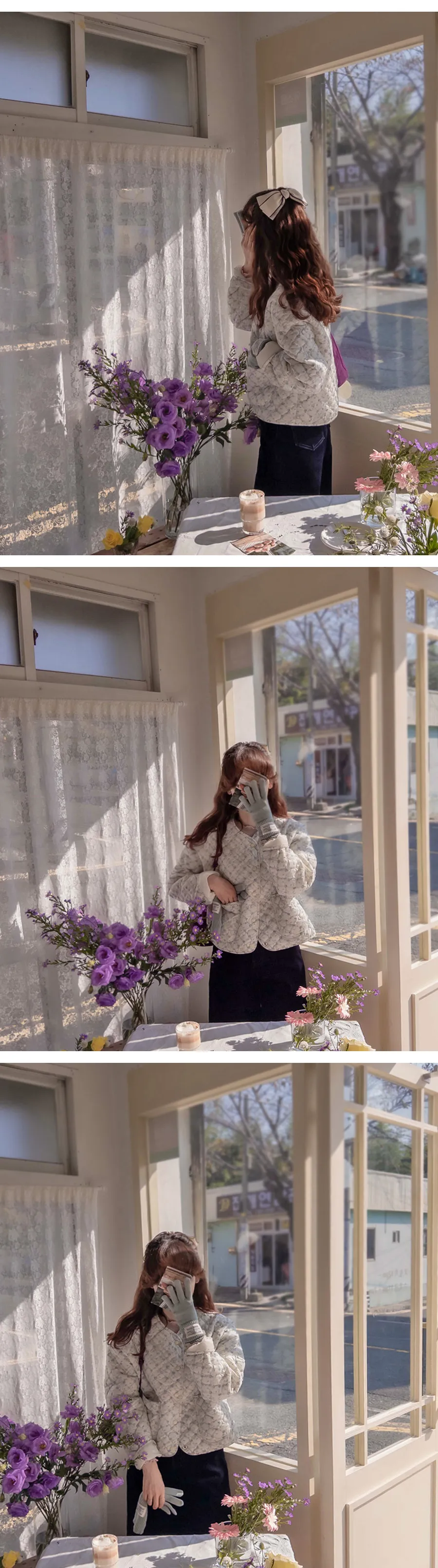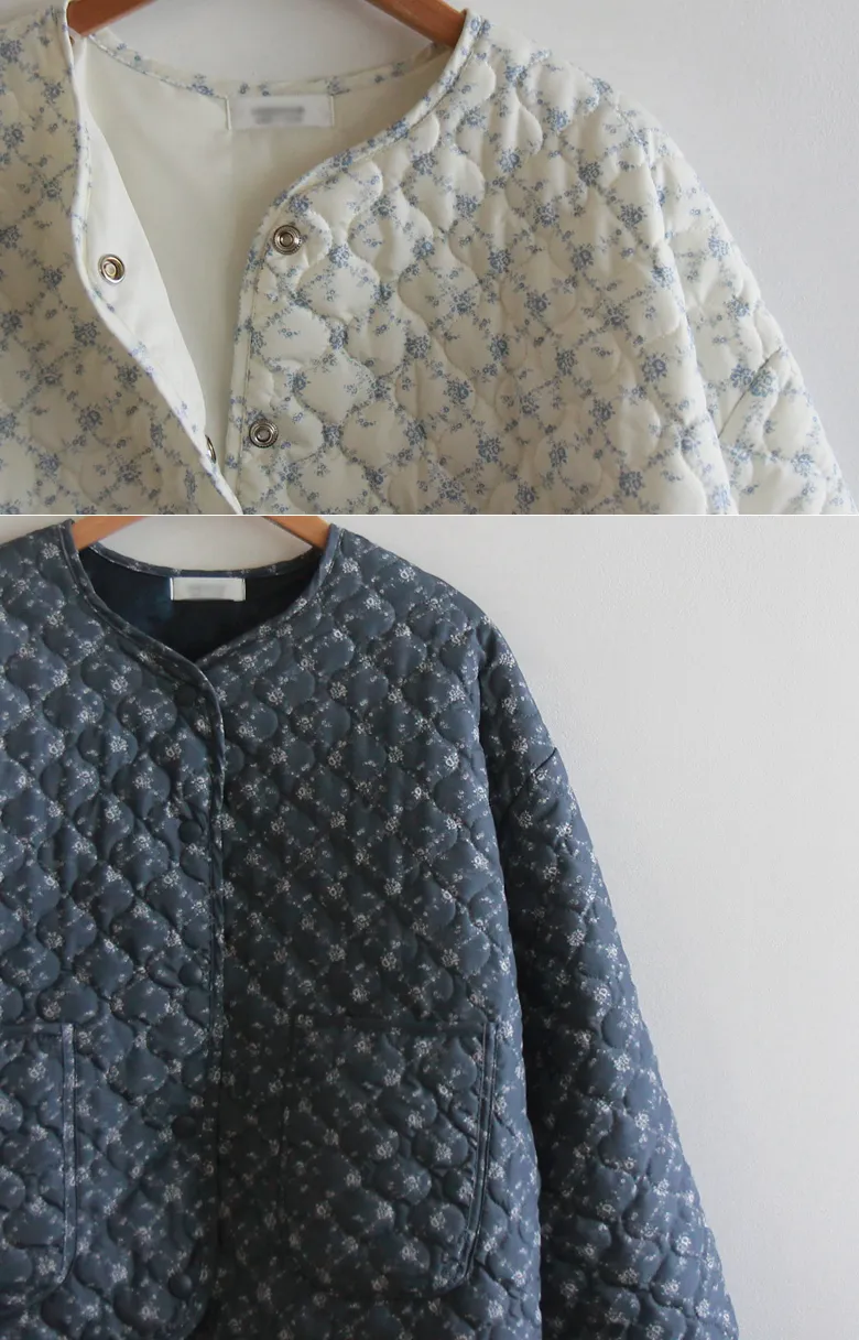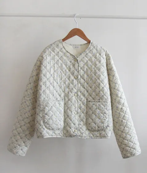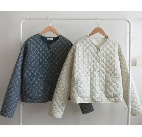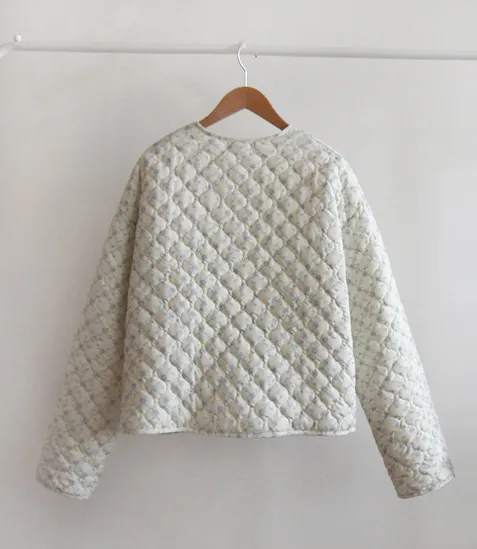 [填充物:3盎司絎縫棉][獨特活潑的絎縫設計][一款可愛的迷你花朵圖案外套][穿著溫暖又時尚][推薦作為經常穿的絎縫外套]