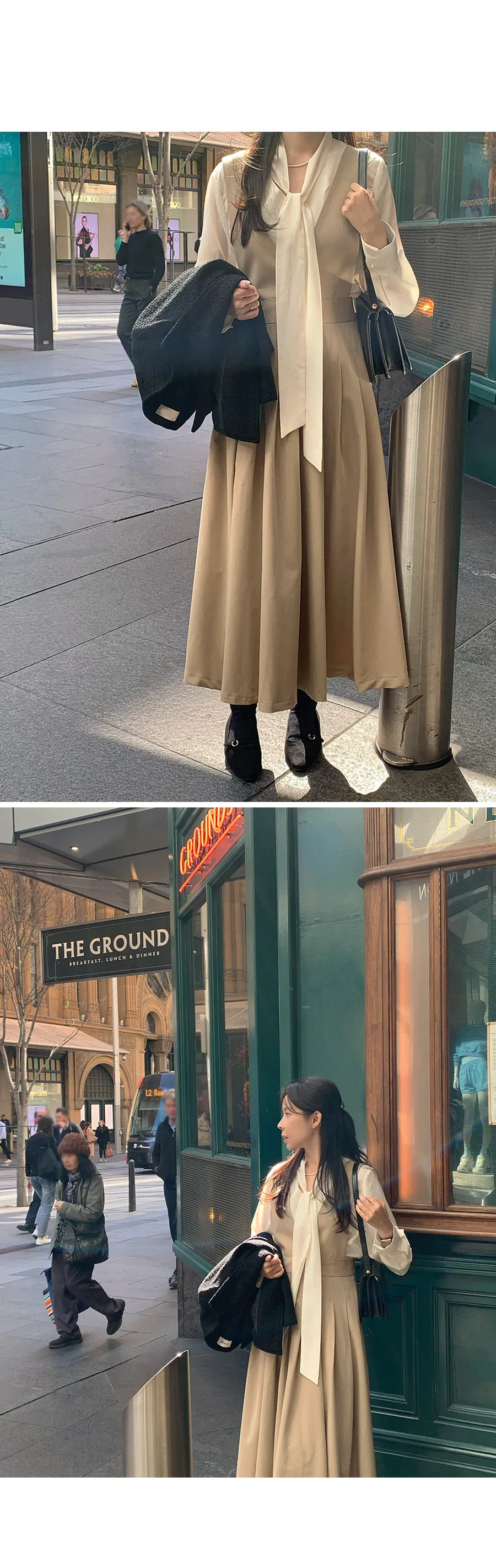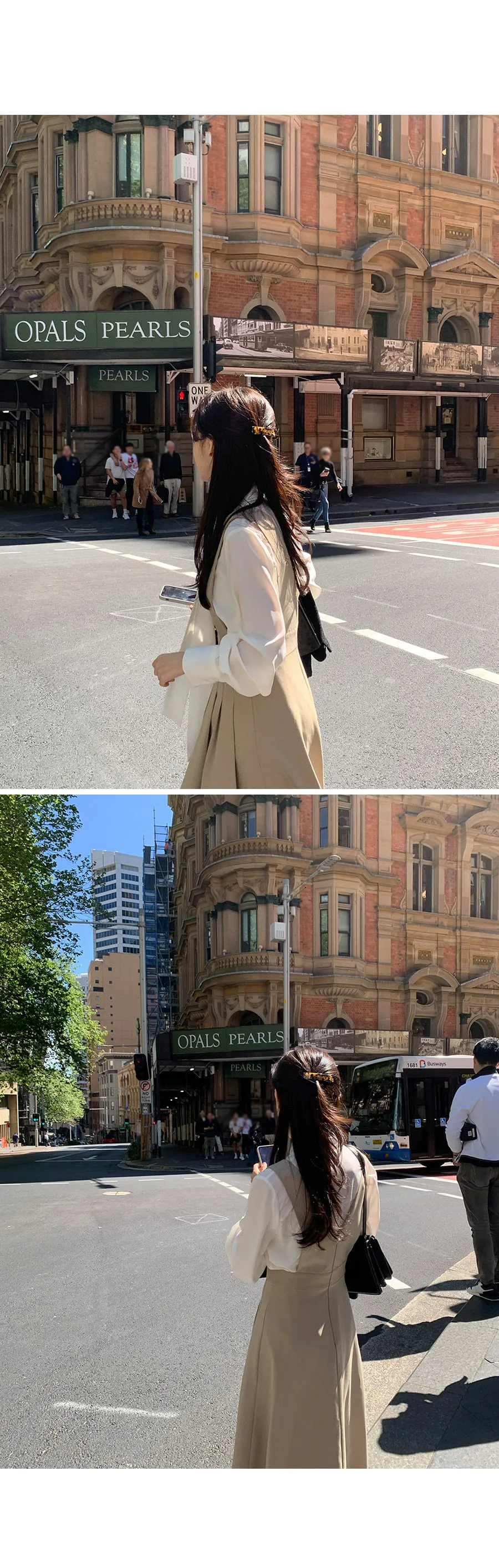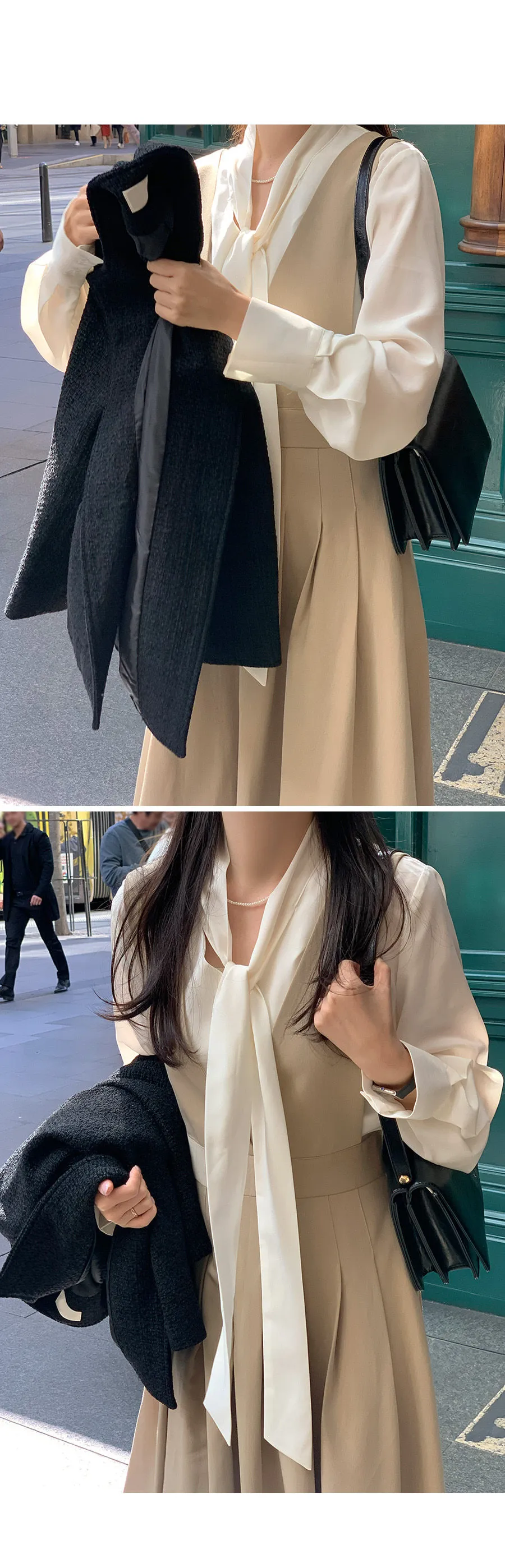 優雅氛圍長領口綁帶柔軟排扣上衣