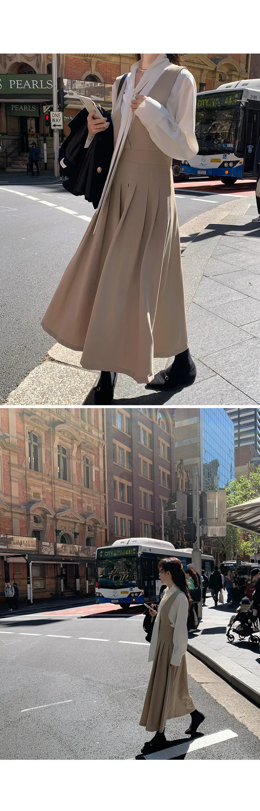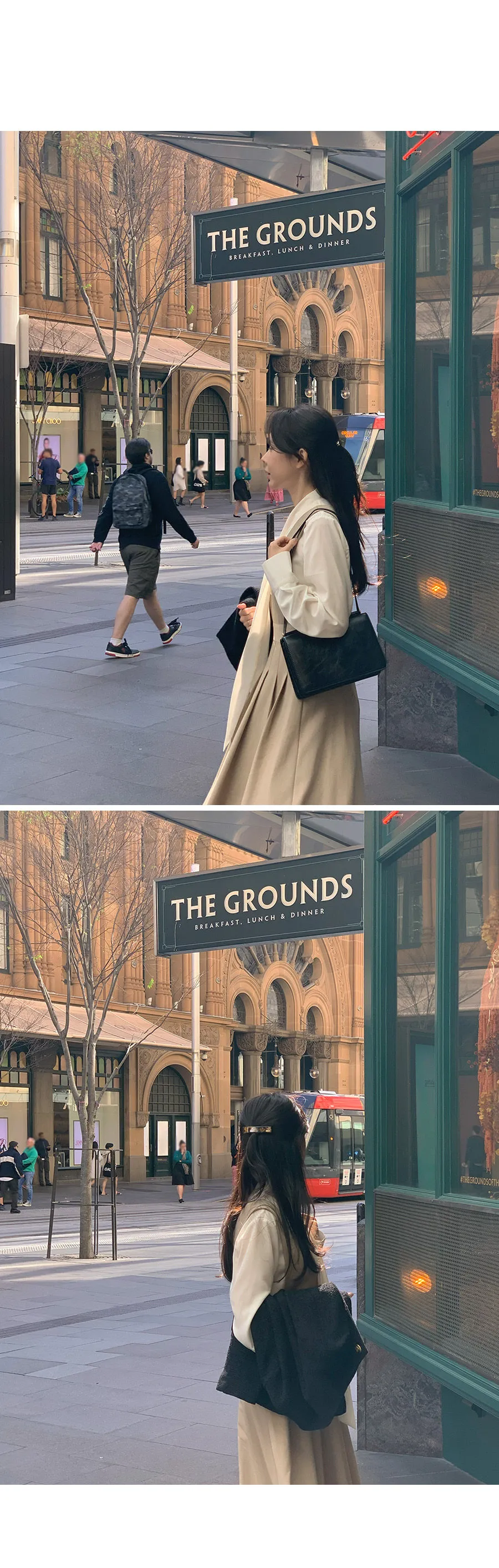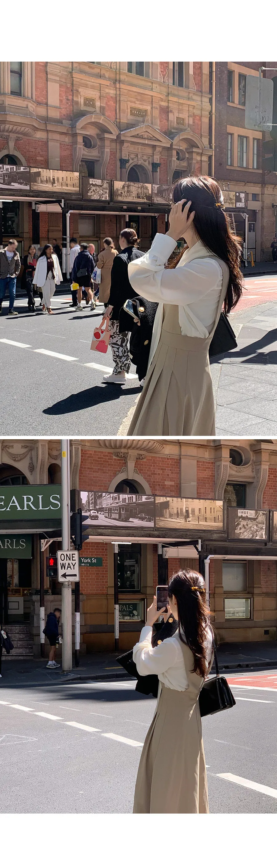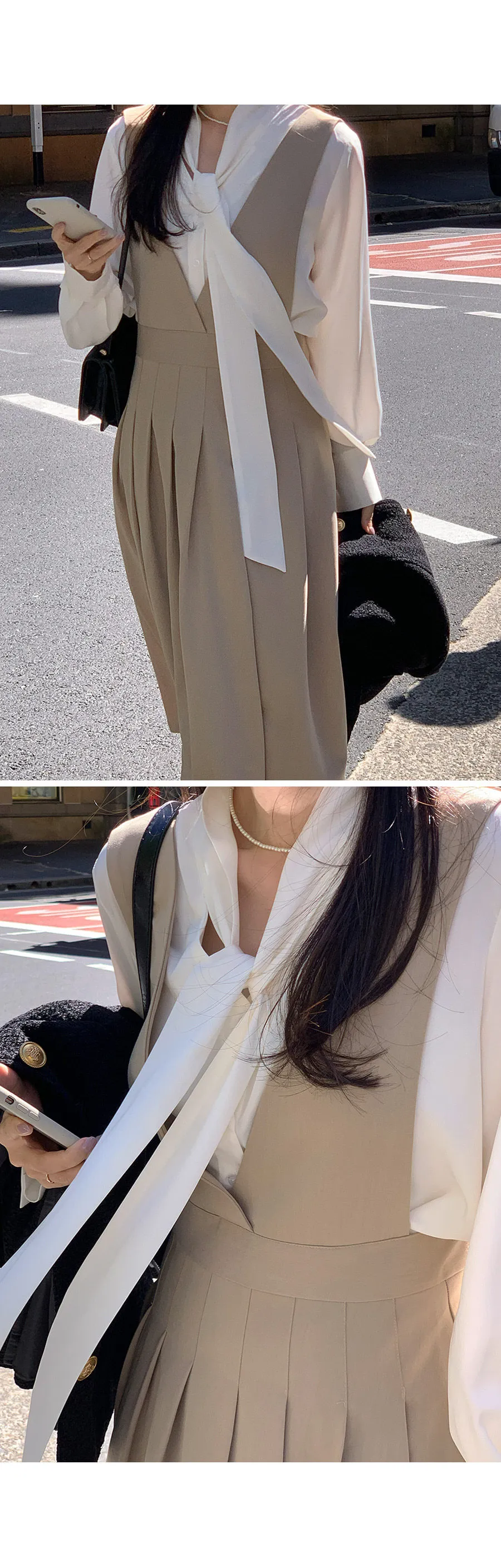 優雅氛圍長領口綁帶柔軟排扣上衣
