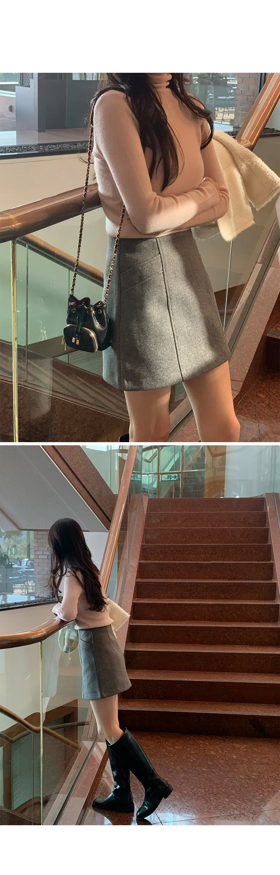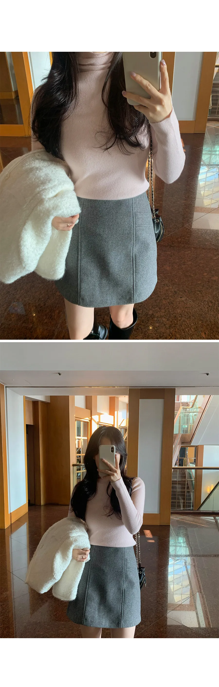 簡約縫線設計修身絨質短裙