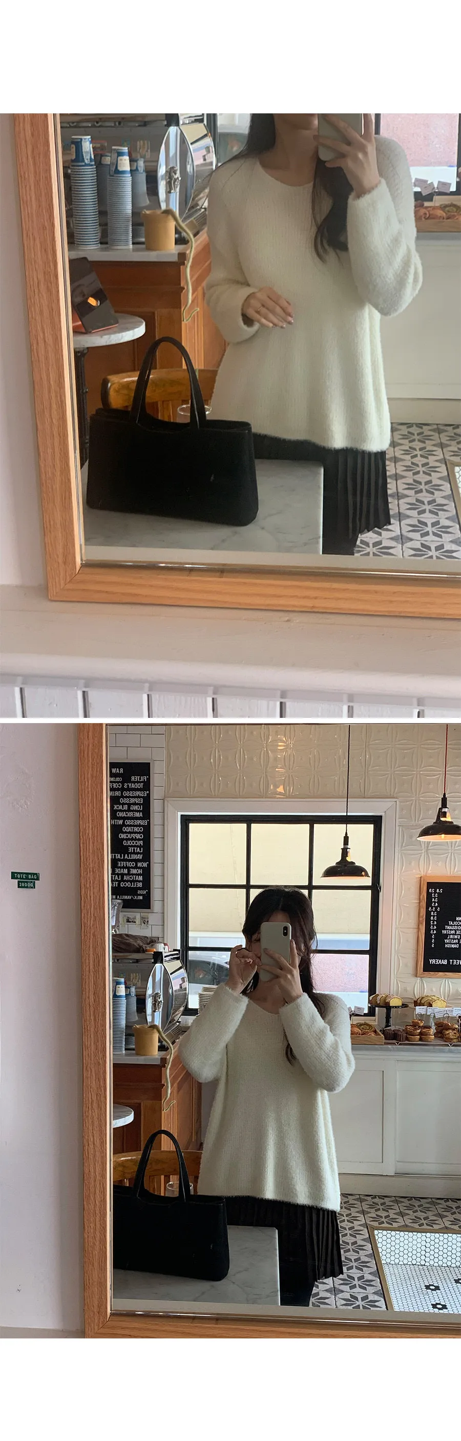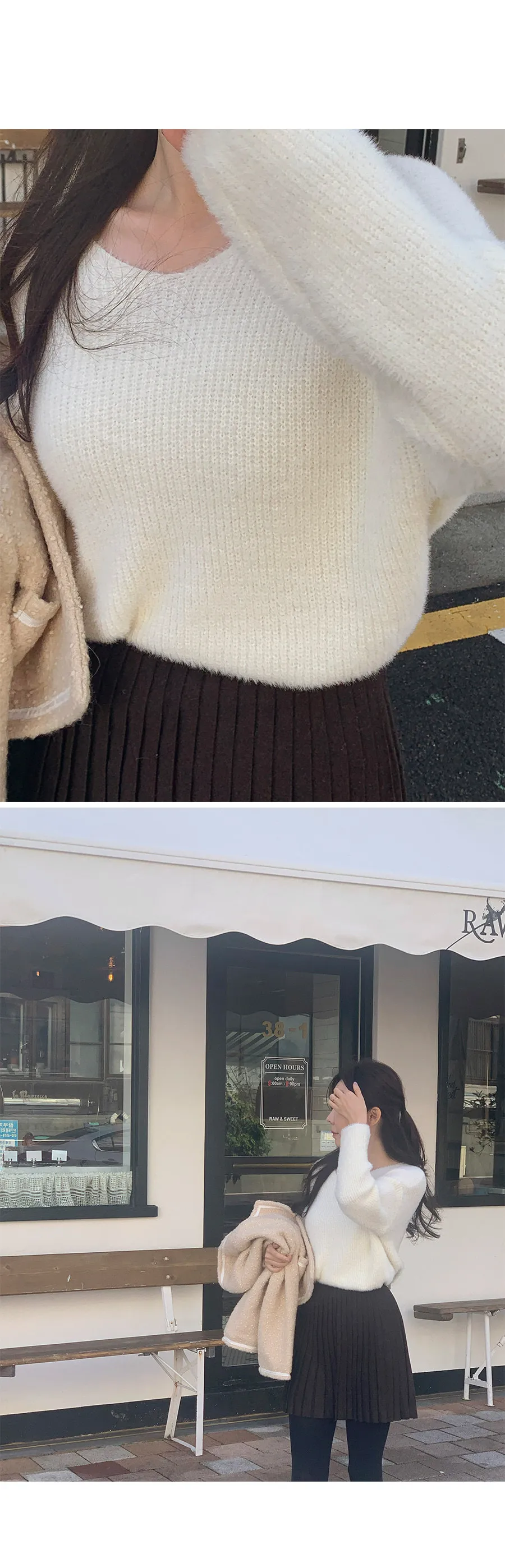 柔和V領蓬鬆柔軟毛絨針織上衣