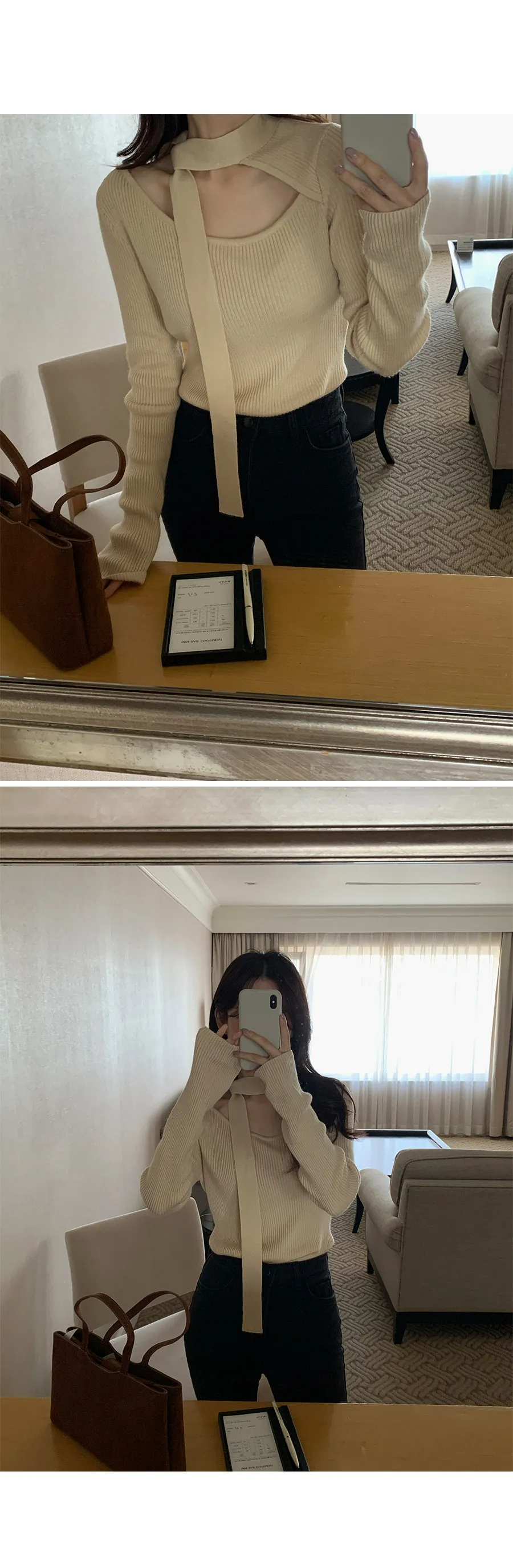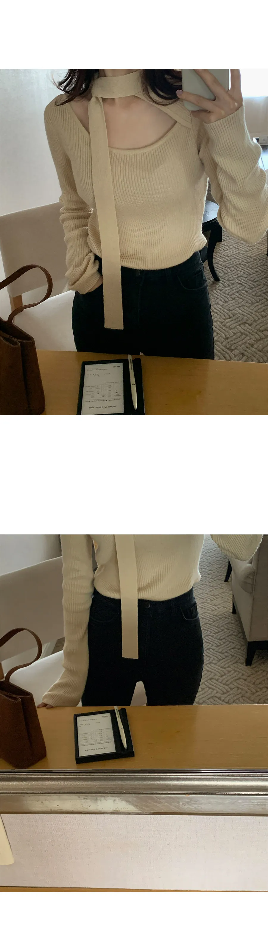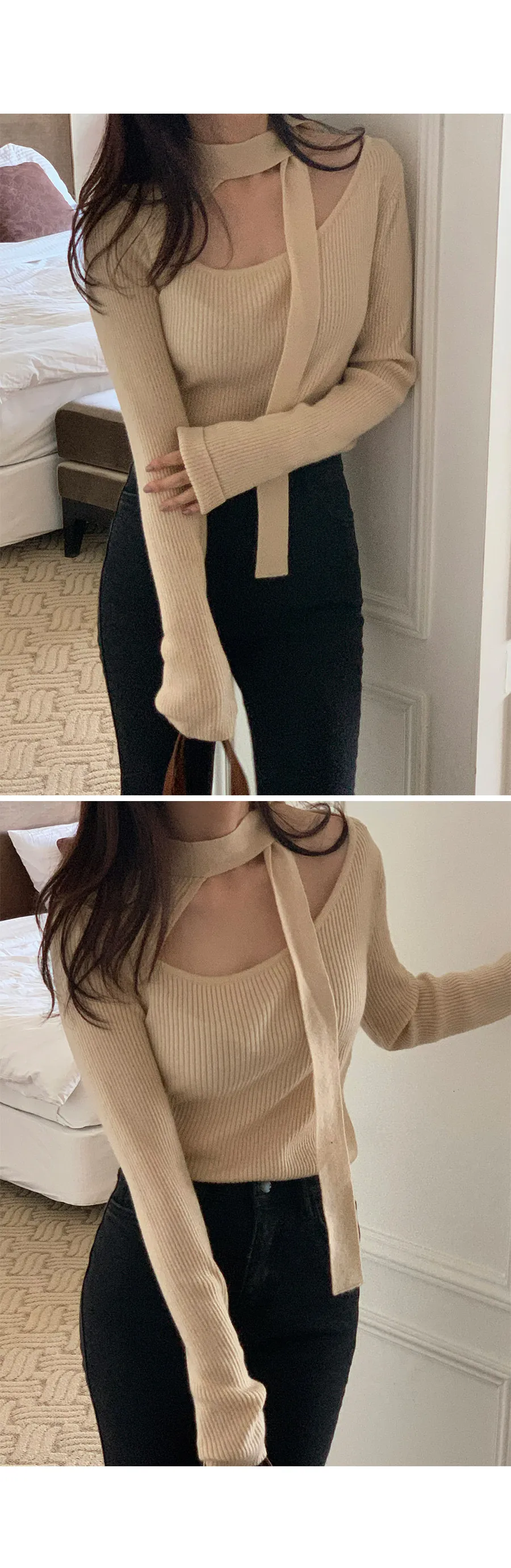 一款內搭針織上衣,獨特剪裁的繫帶領口