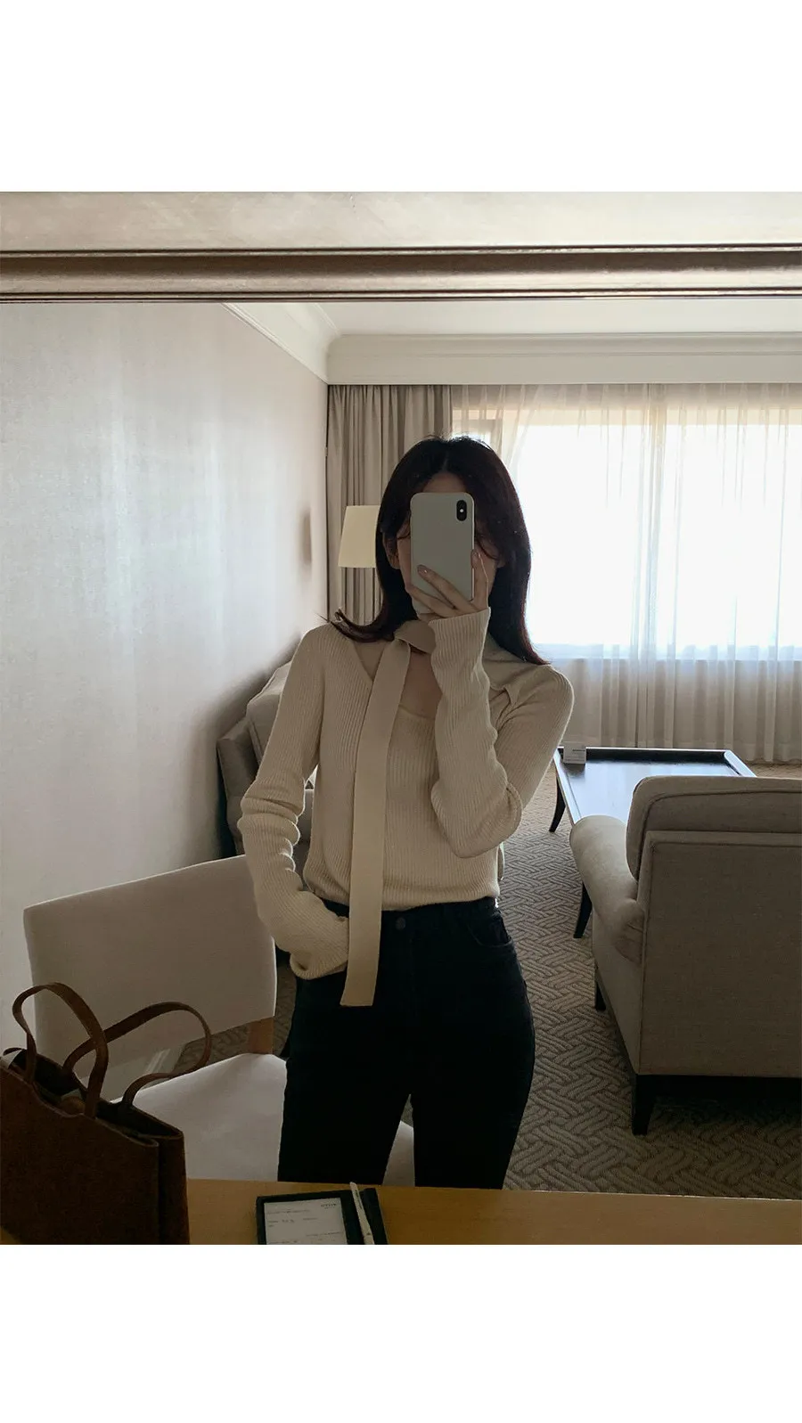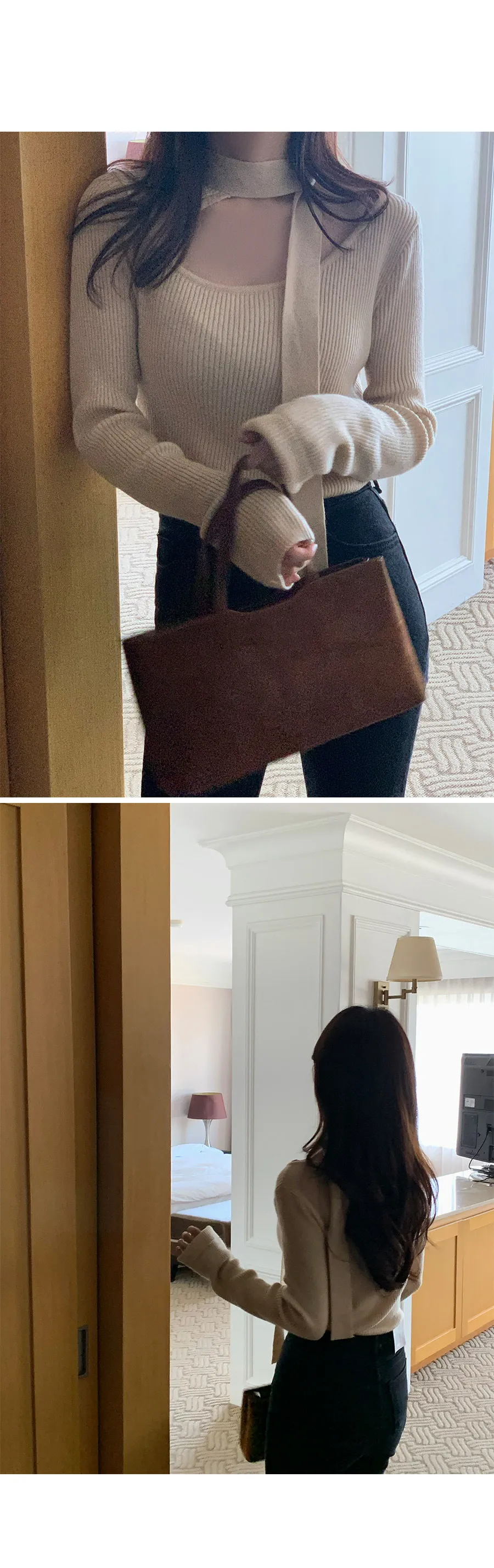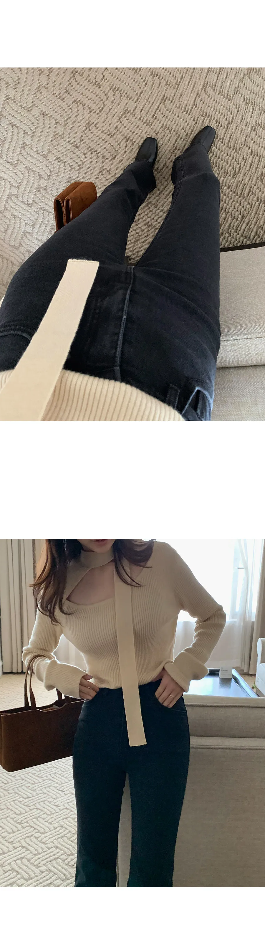 一款內搭針織上衣,獨特剪裁的繫帶領口