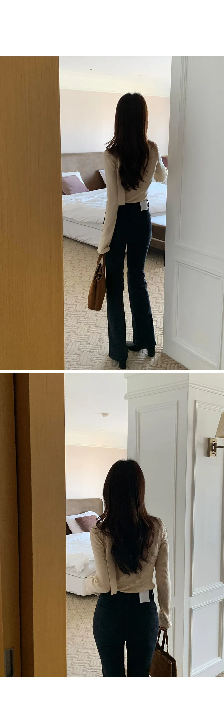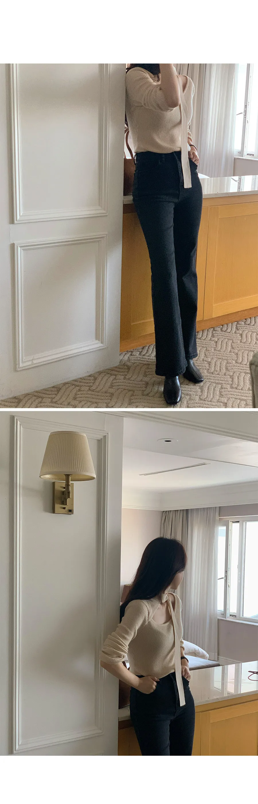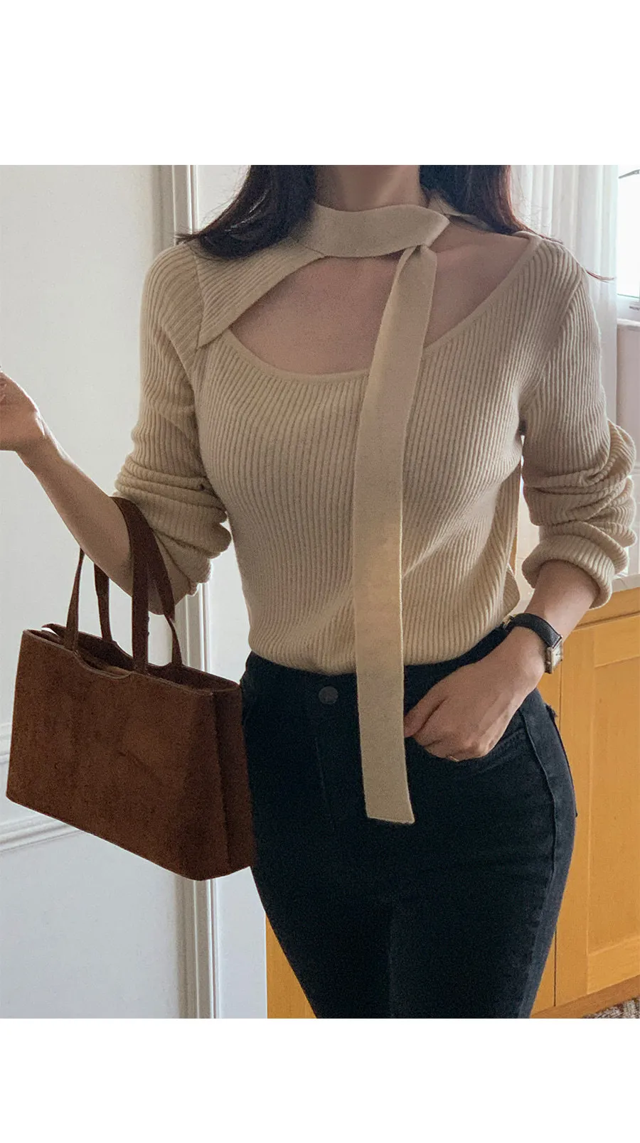 感性領口領帶剪裁修身羅紋針織上衣