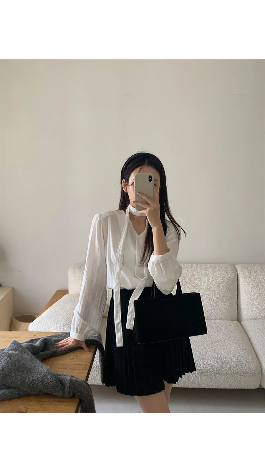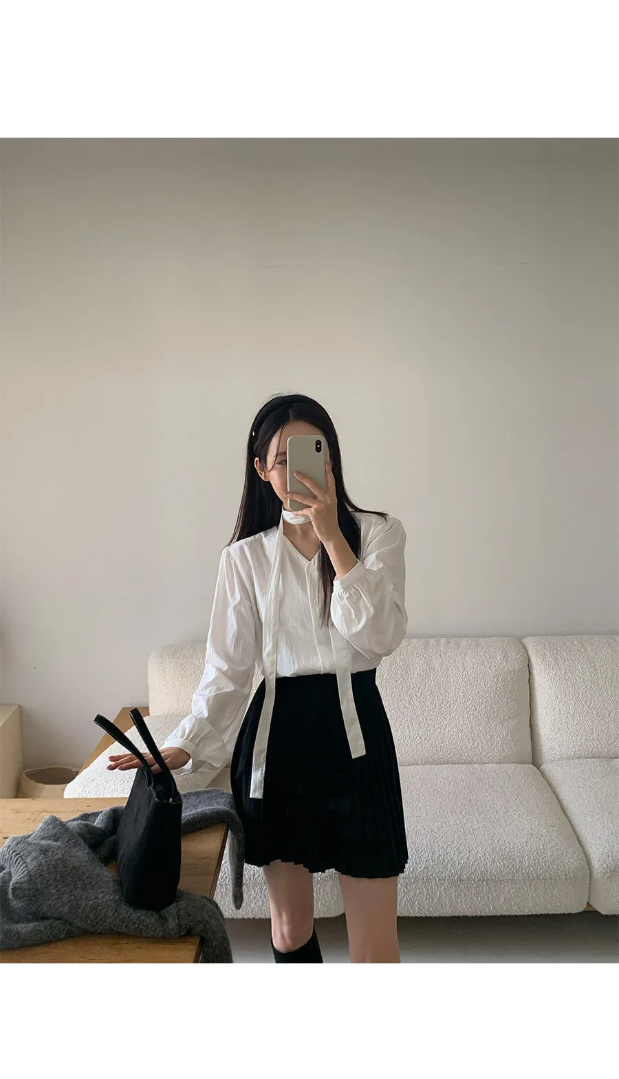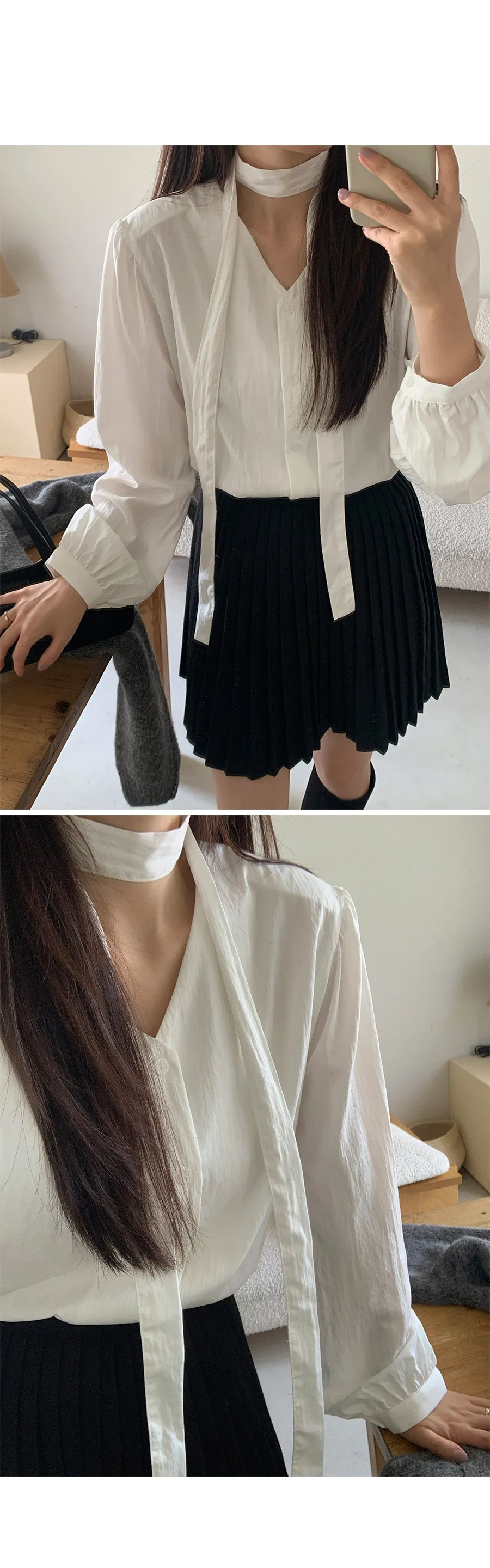 精緻氣質圓潤V領附領綁帶排扣上衣