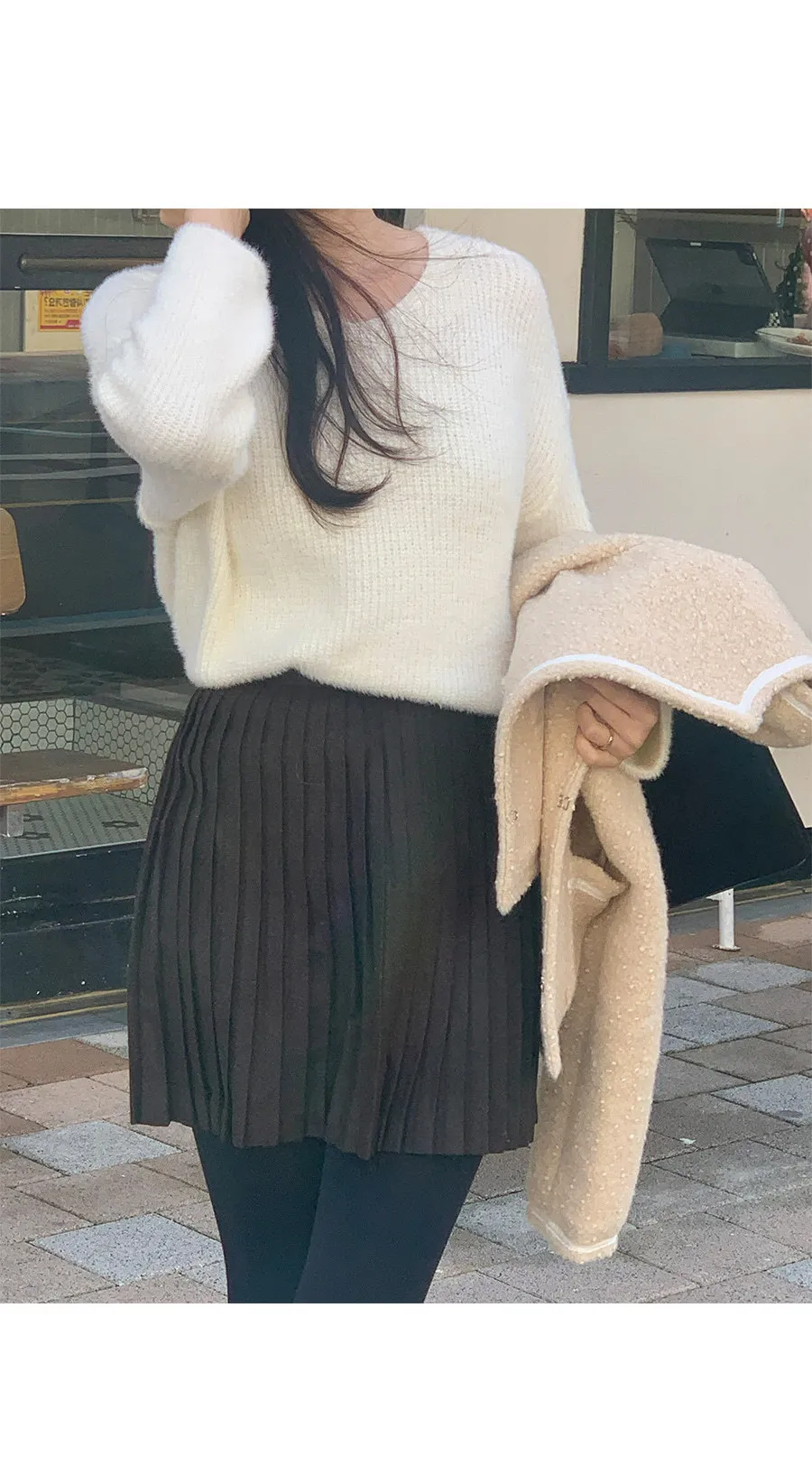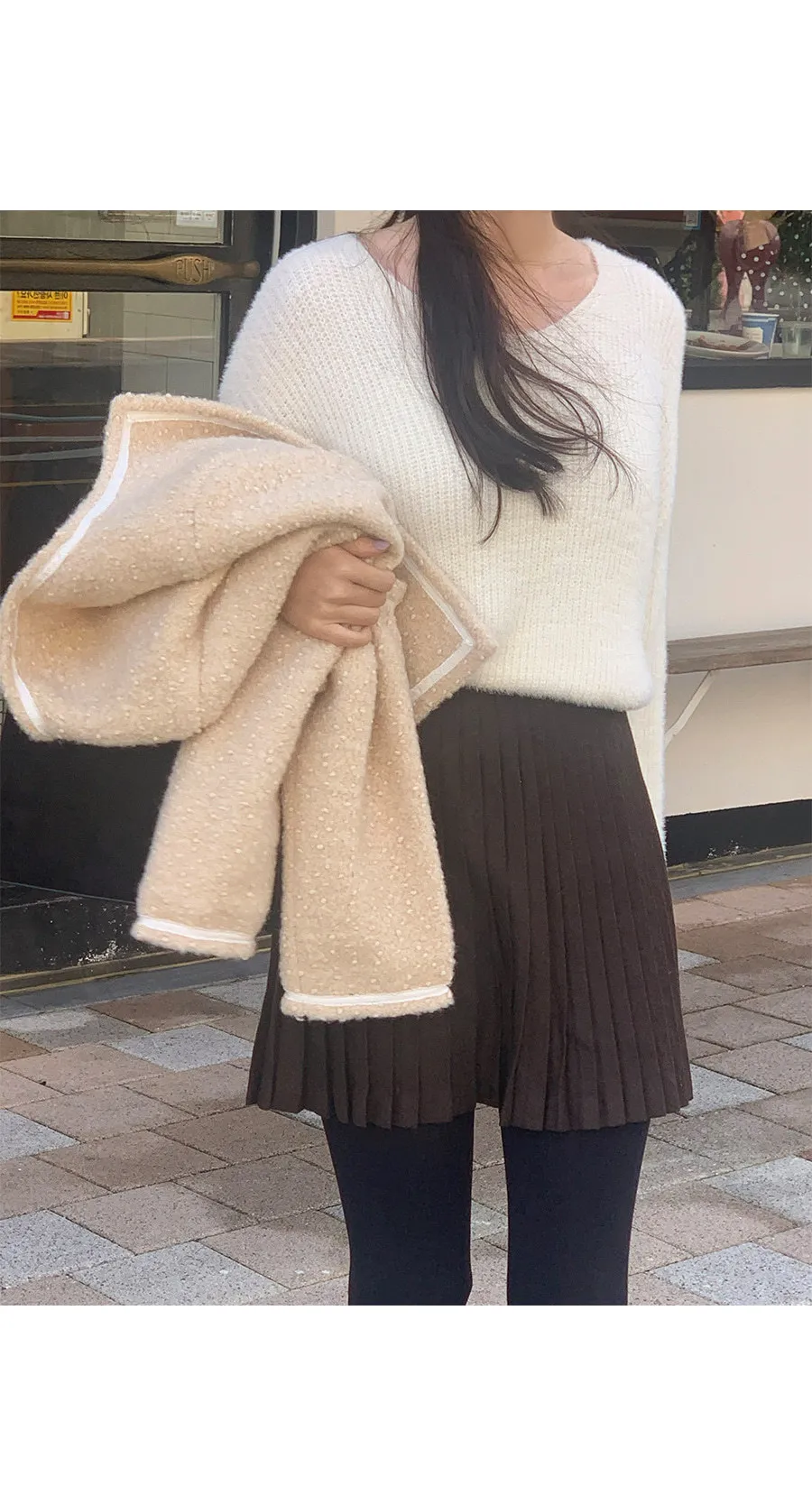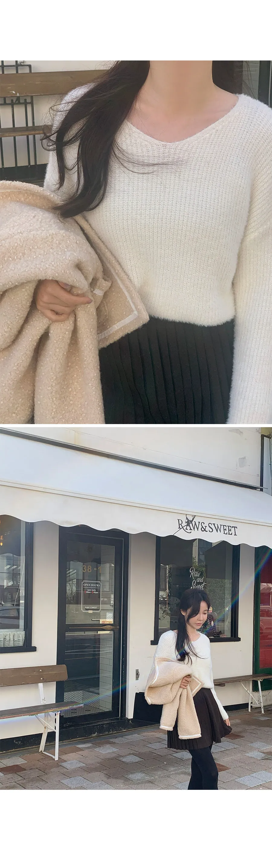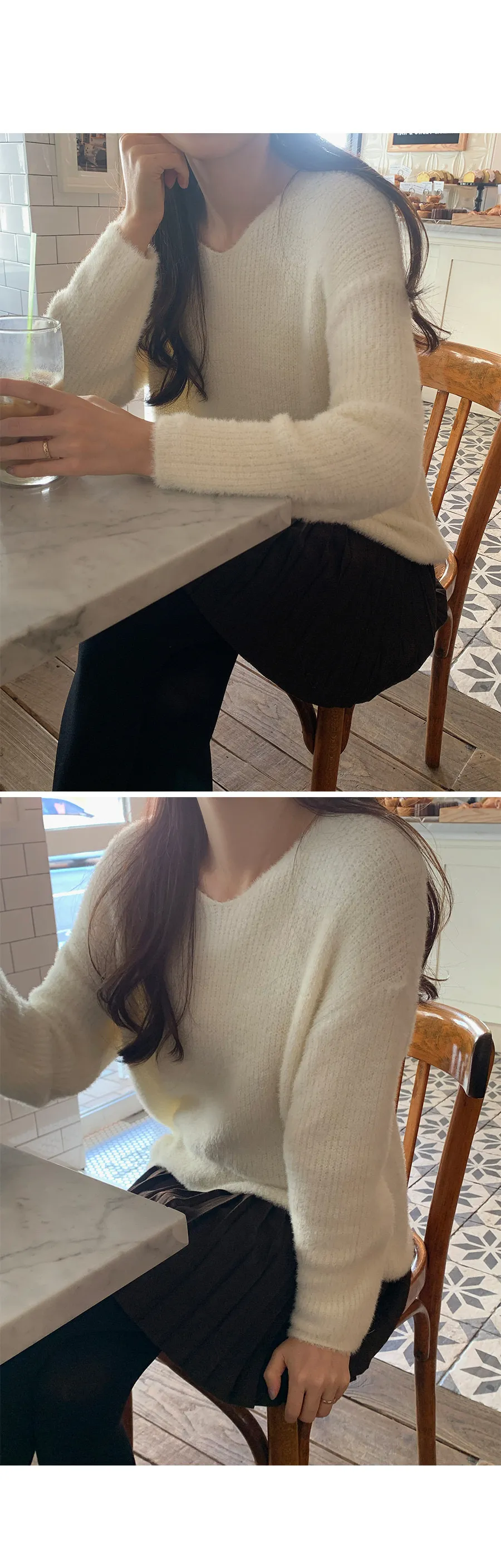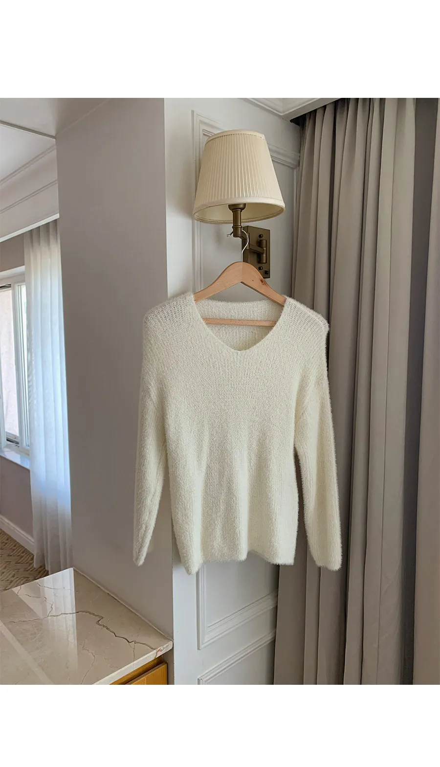 柔和V領蓬鬆柔軟毛絨針織上衣