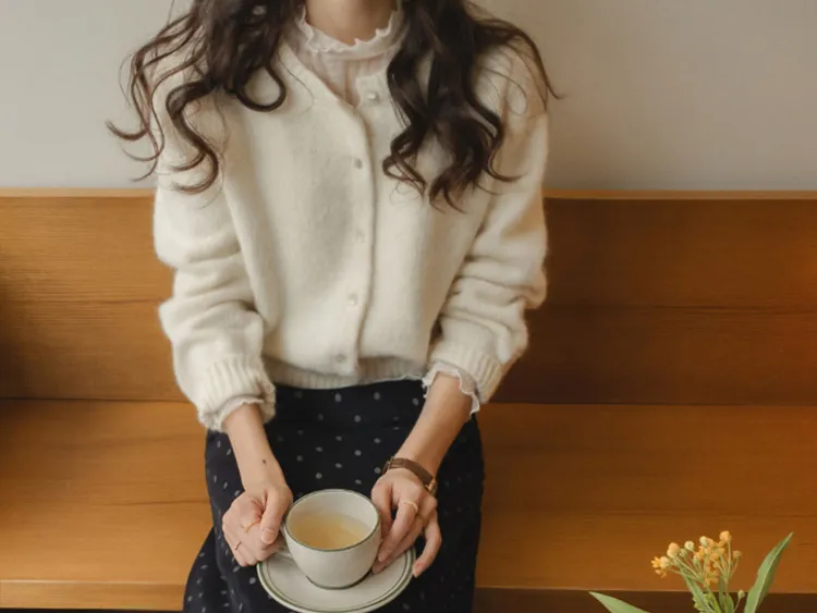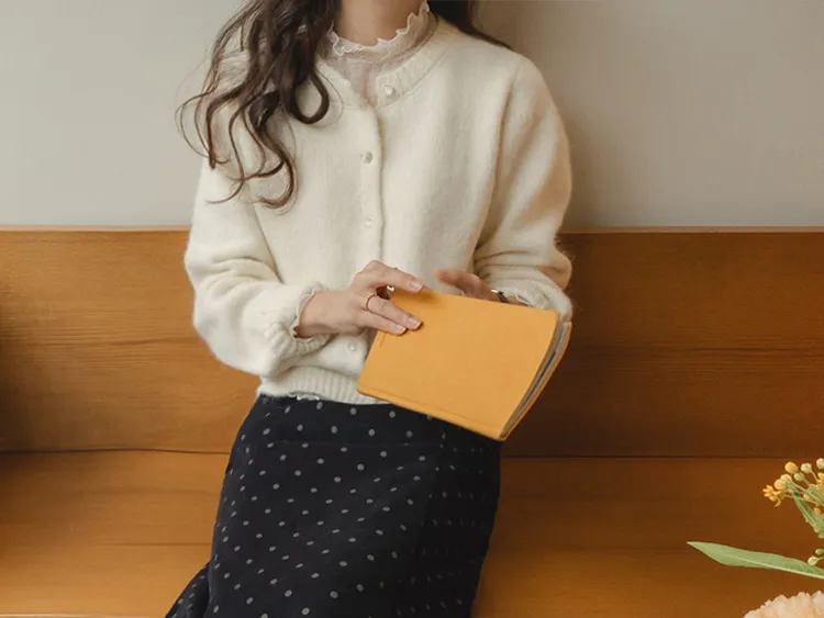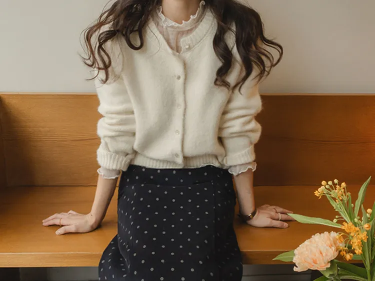 可愛微妙蕾絲線條波浪邊半高領內搭透膚上衣