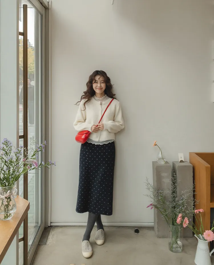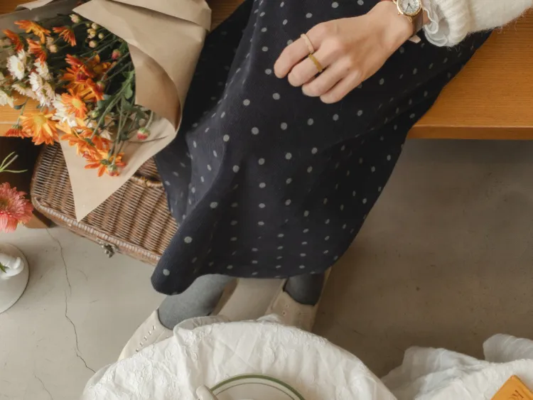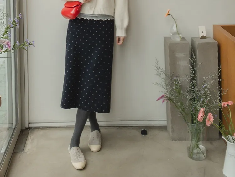 【兩側縫線線條,讓腿部線條顯得更直更長】【最愛的圓點圖案,浪漫情調~】
