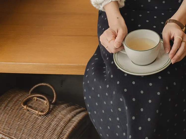 【用微妙的圓點圖案,提升特點】【背帶和開衩細節穿著舒適~】