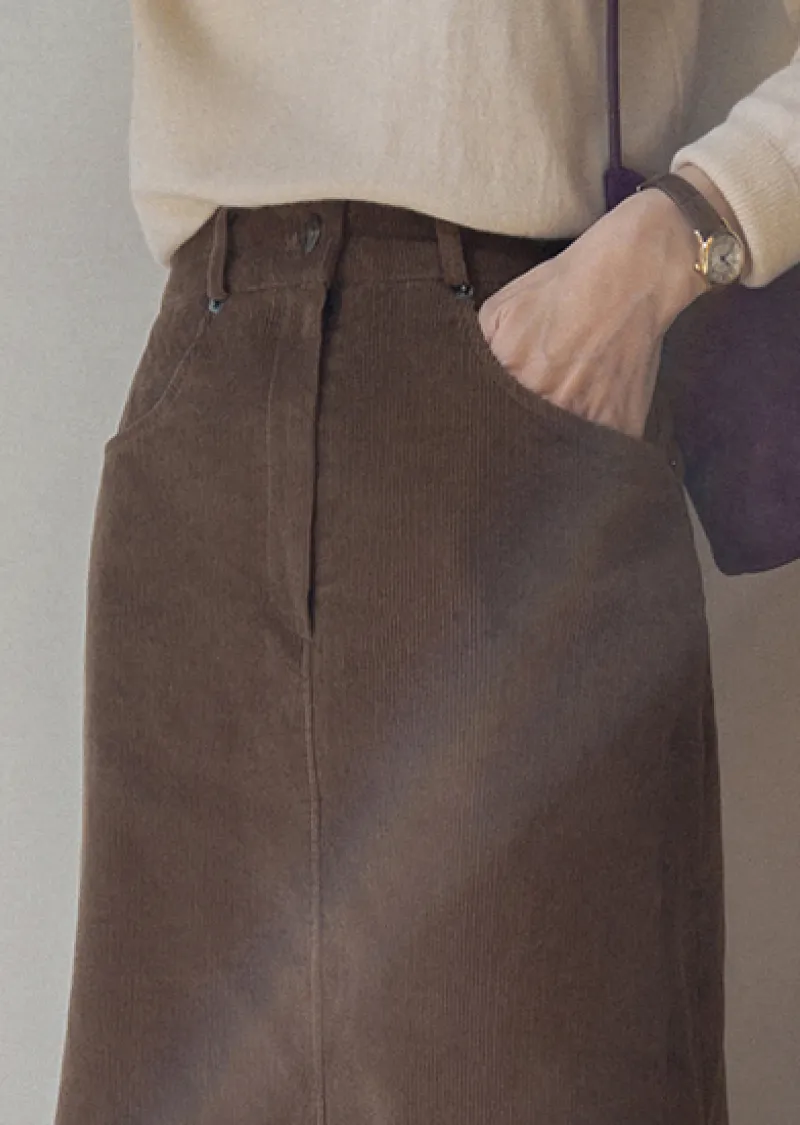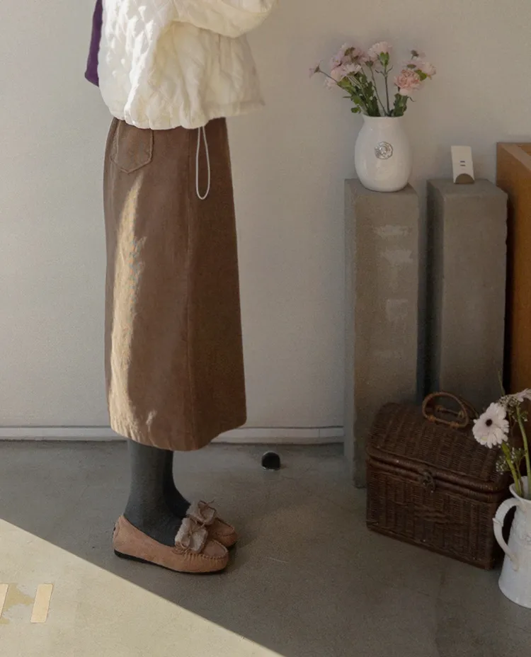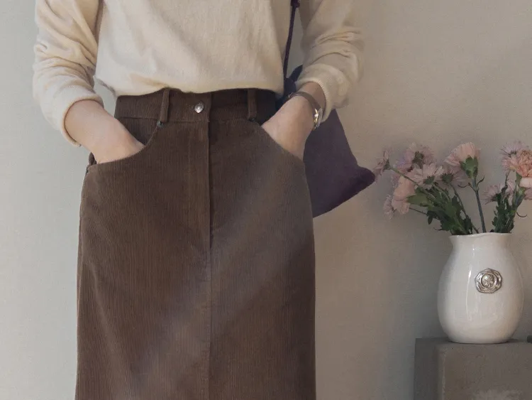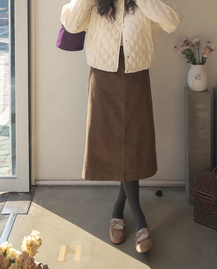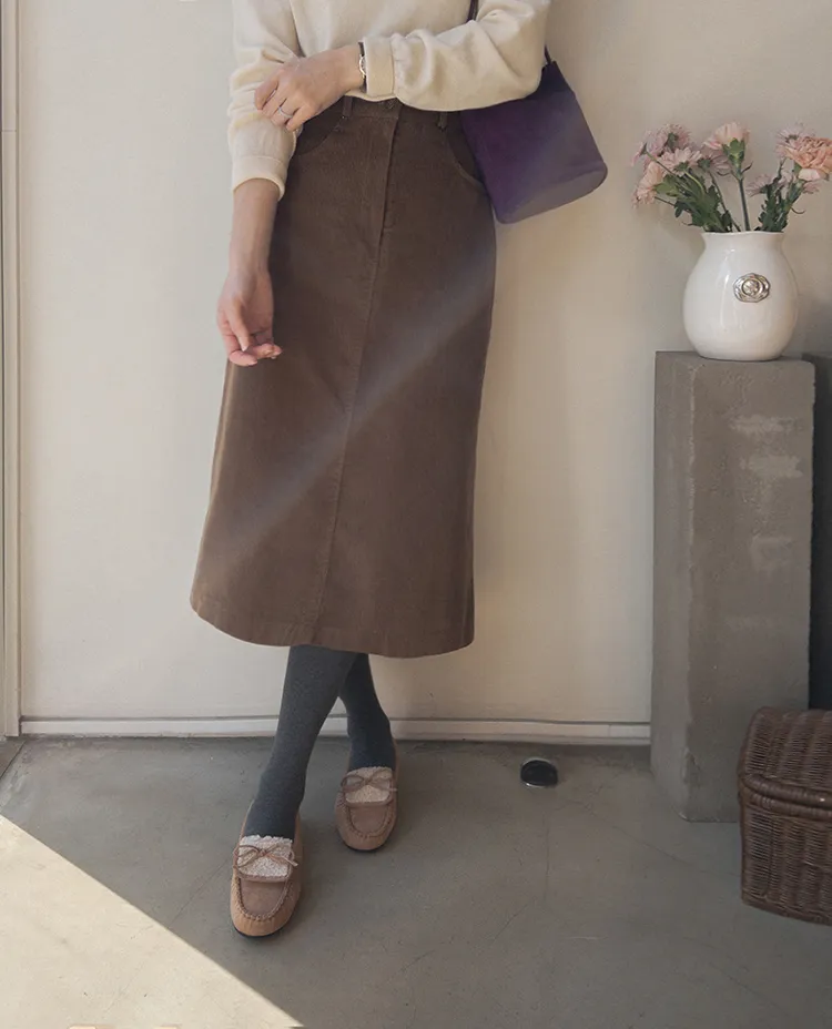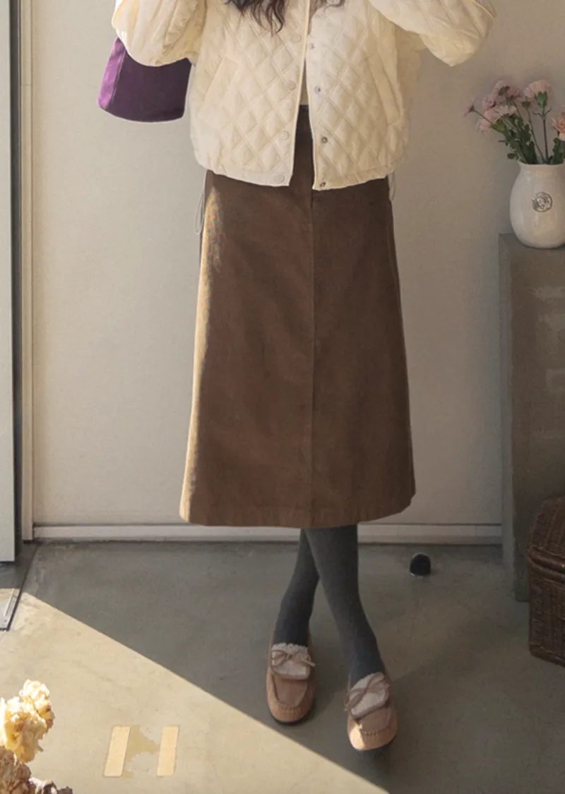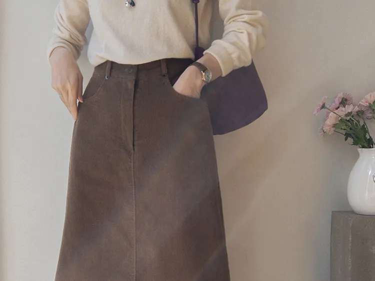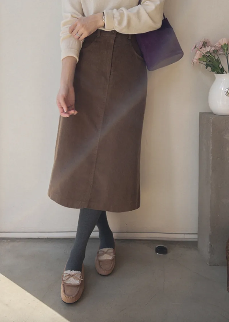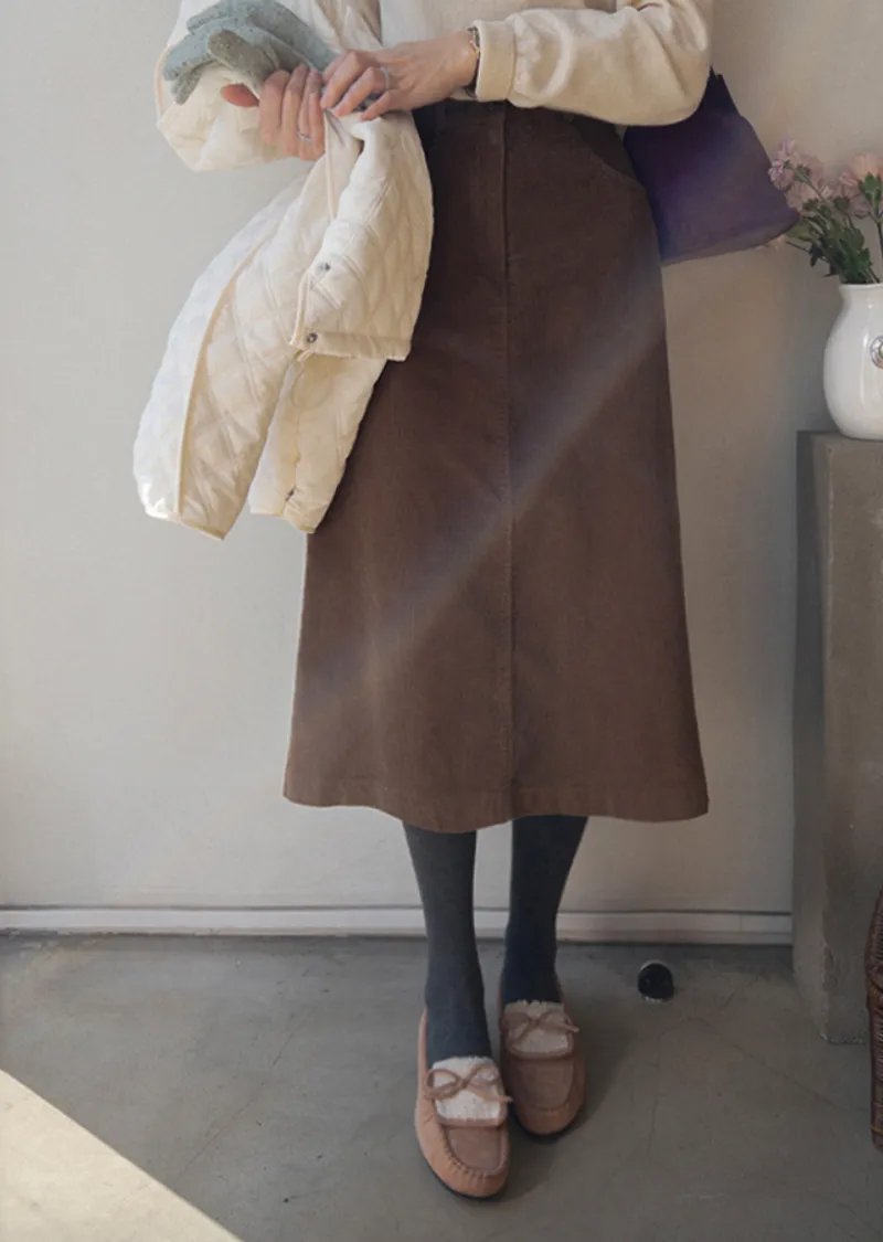 冬季舒適A字剪裁後開衩燈芯絨中長裙