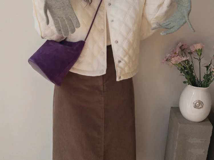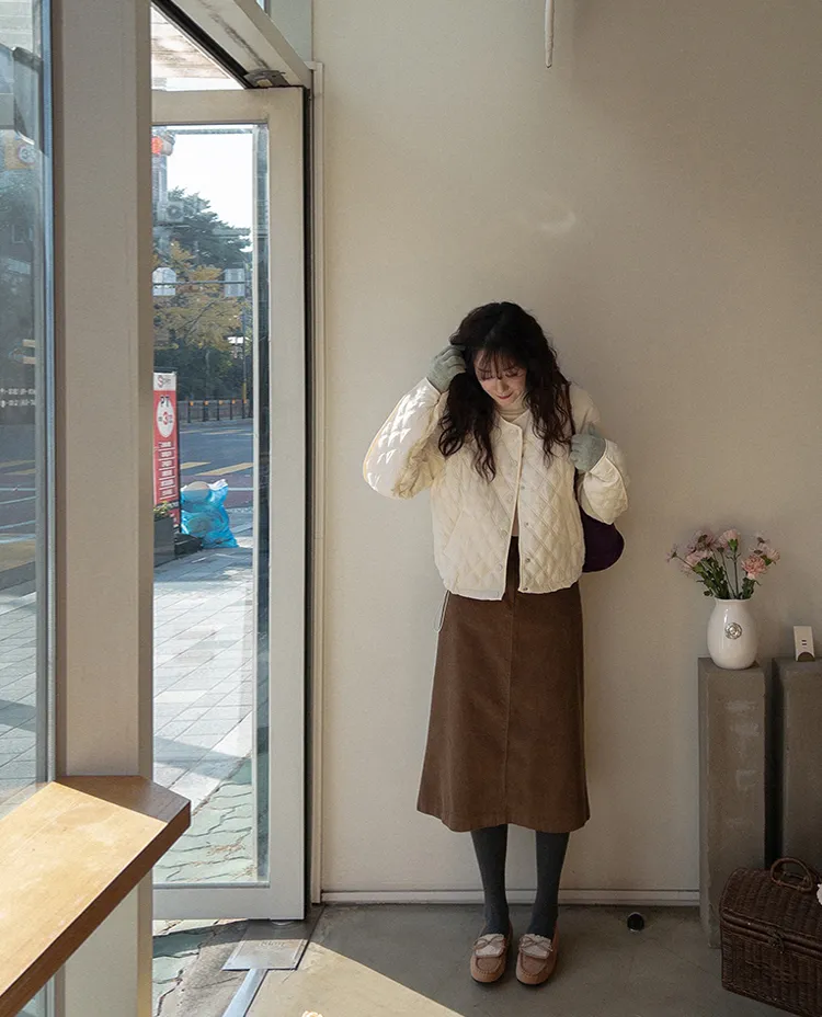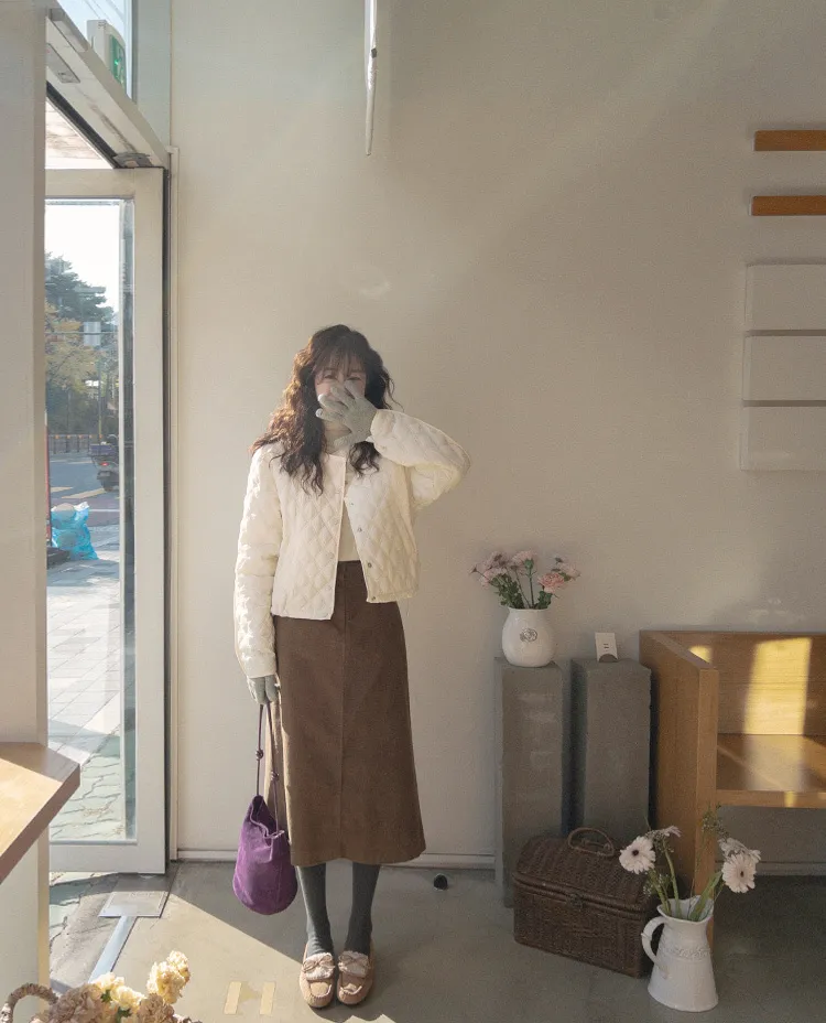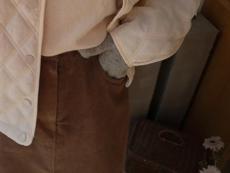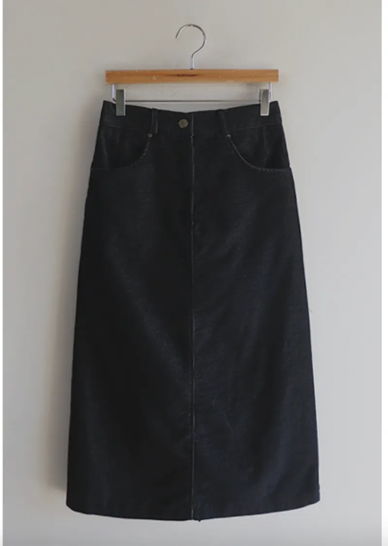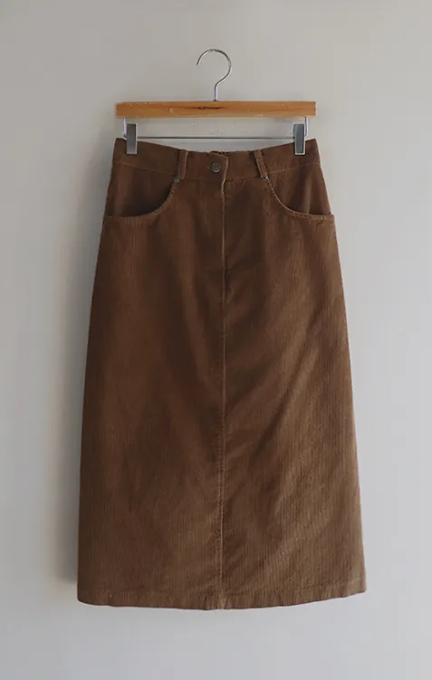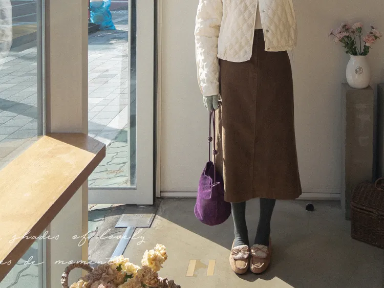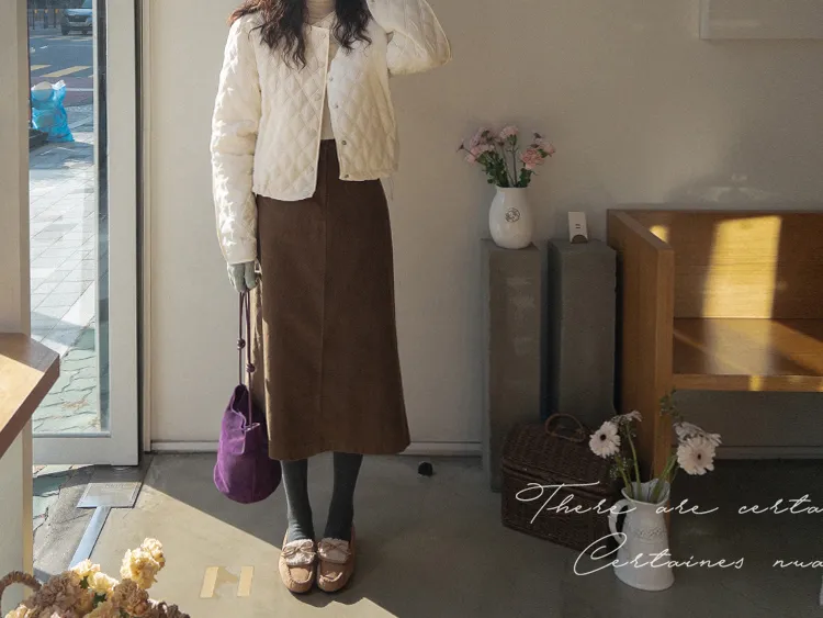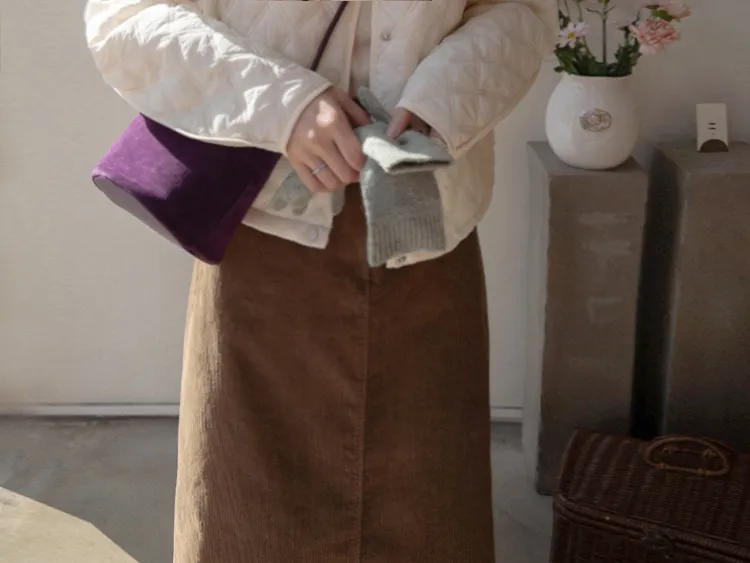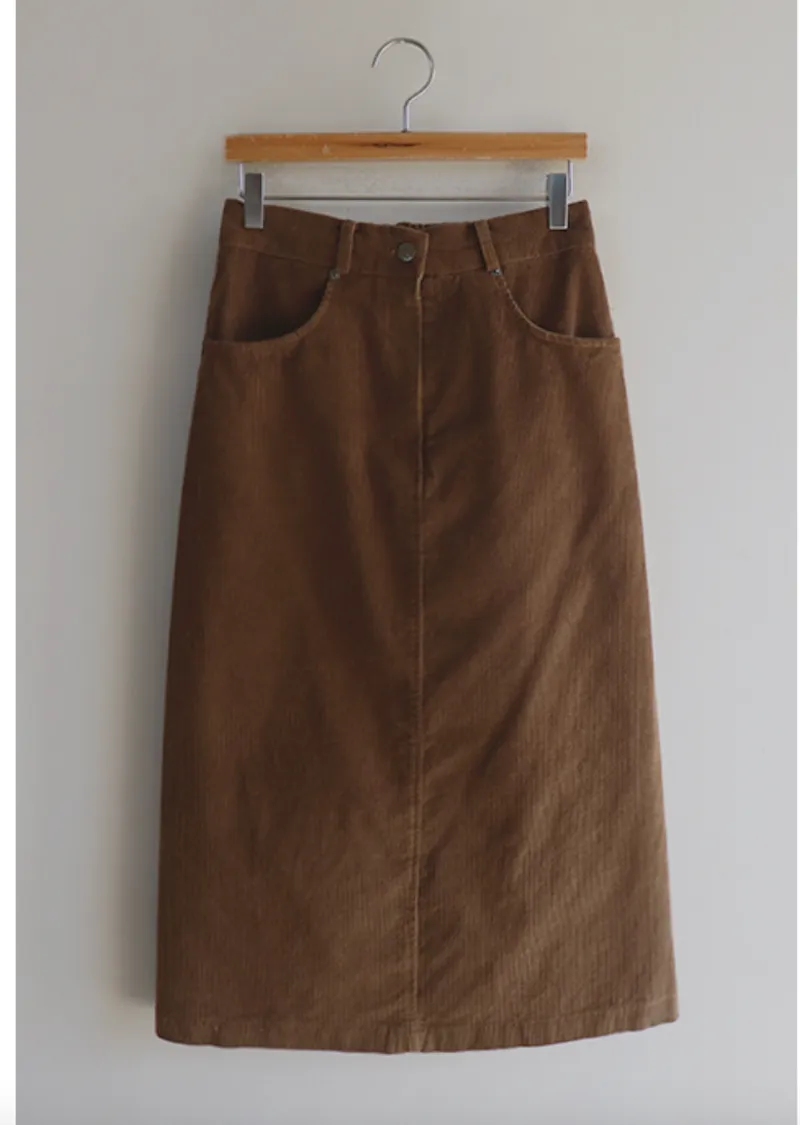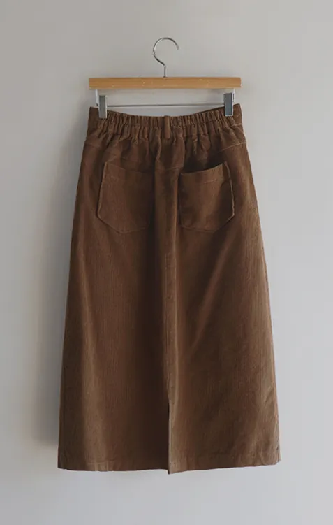 冬季舒適A字剪裁後開衩燈芯絨中長裙