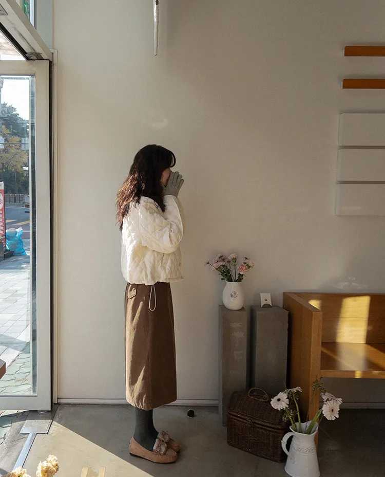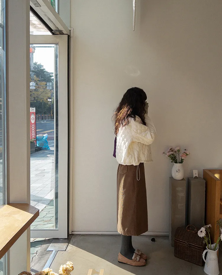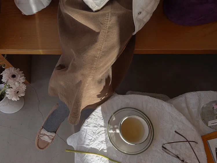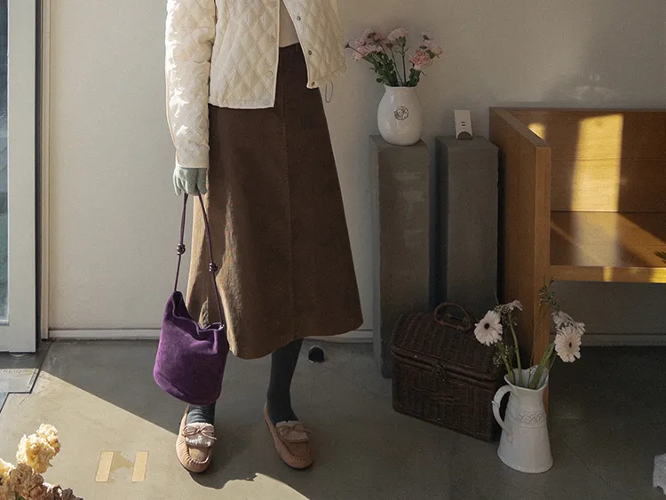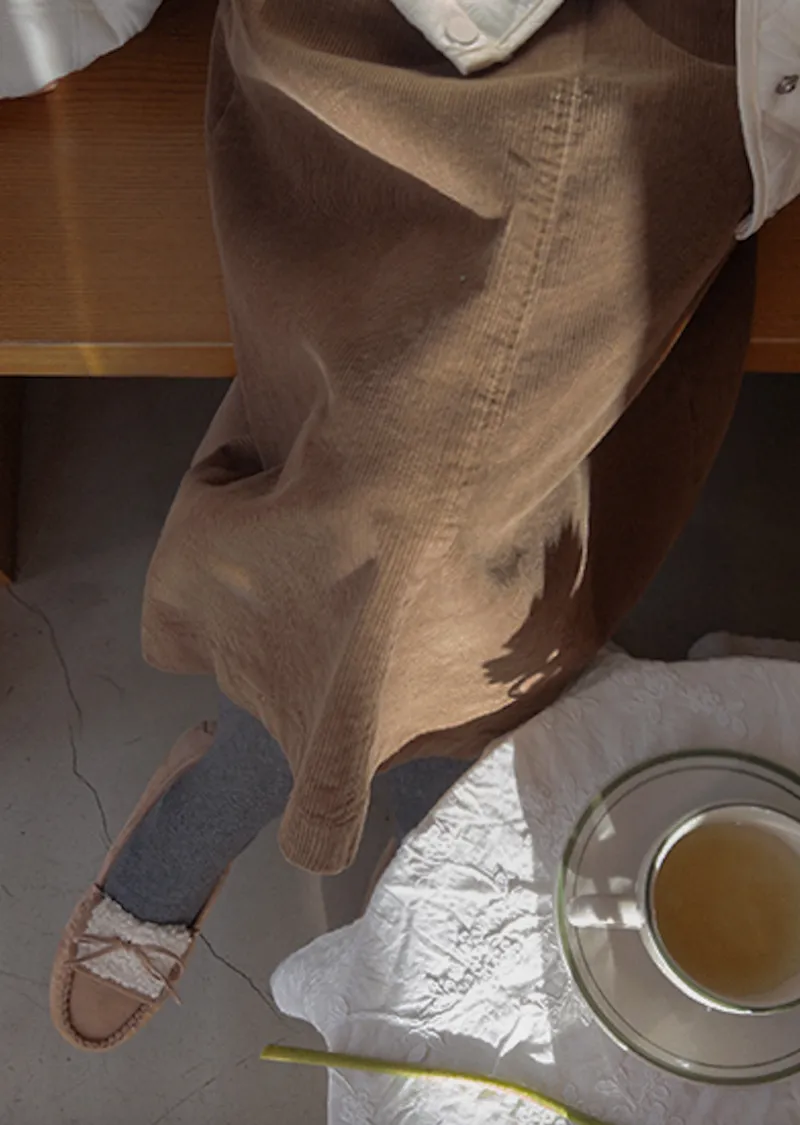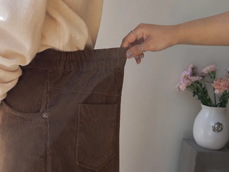 【A字裙顯得更長更顯瘦♥】【溫暖的燈芯絨材質,適合冬季】【腰部有綁帶,舒適合身! 】【活動起來真的很舒服後開衩細節~】