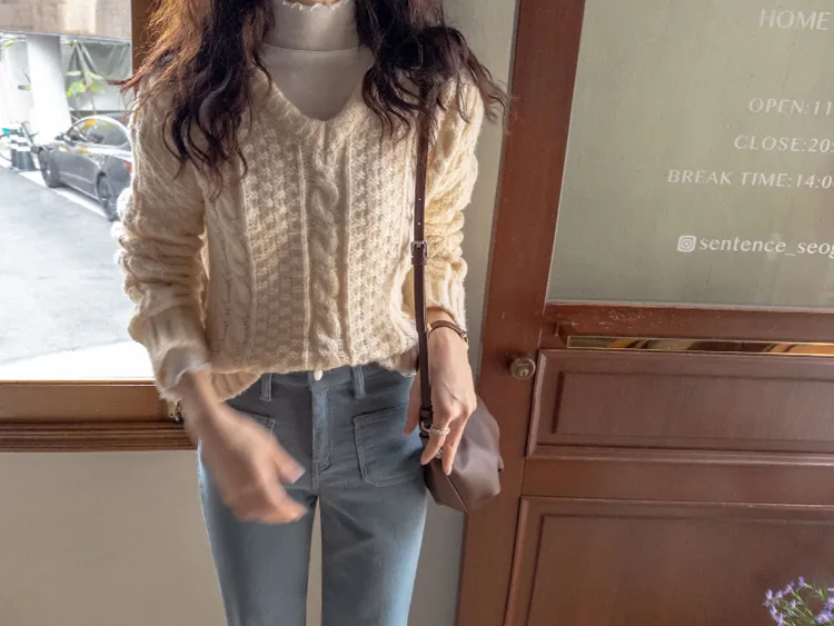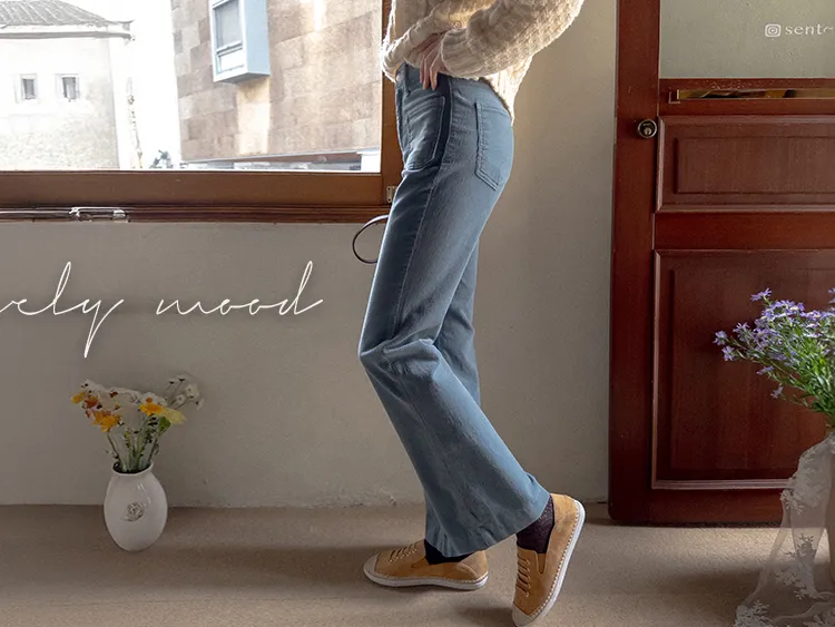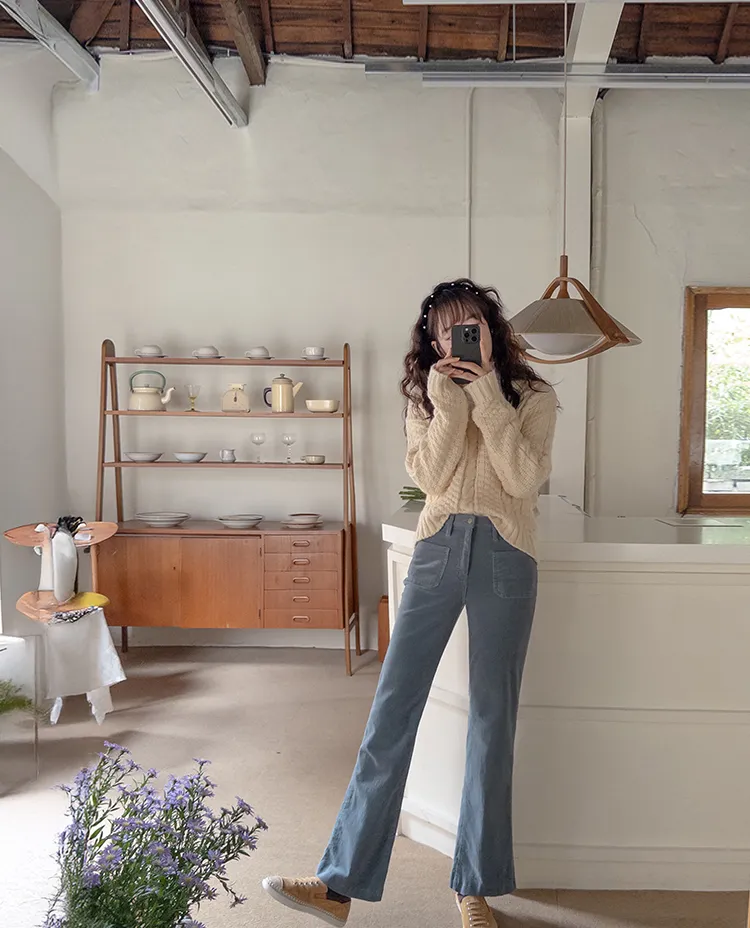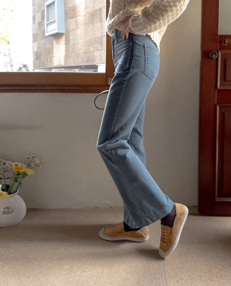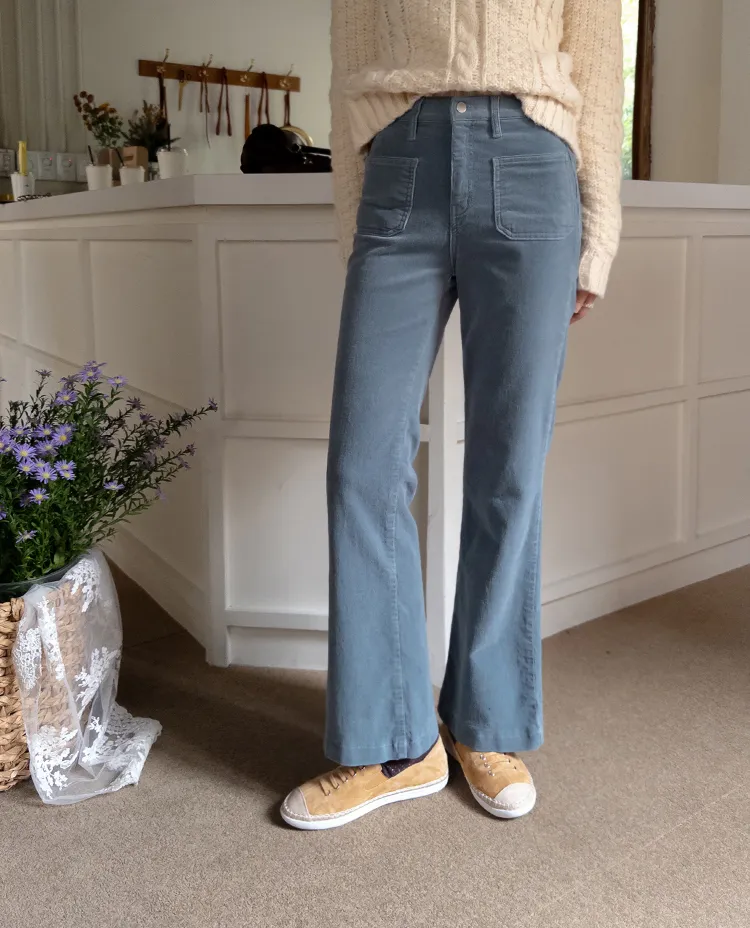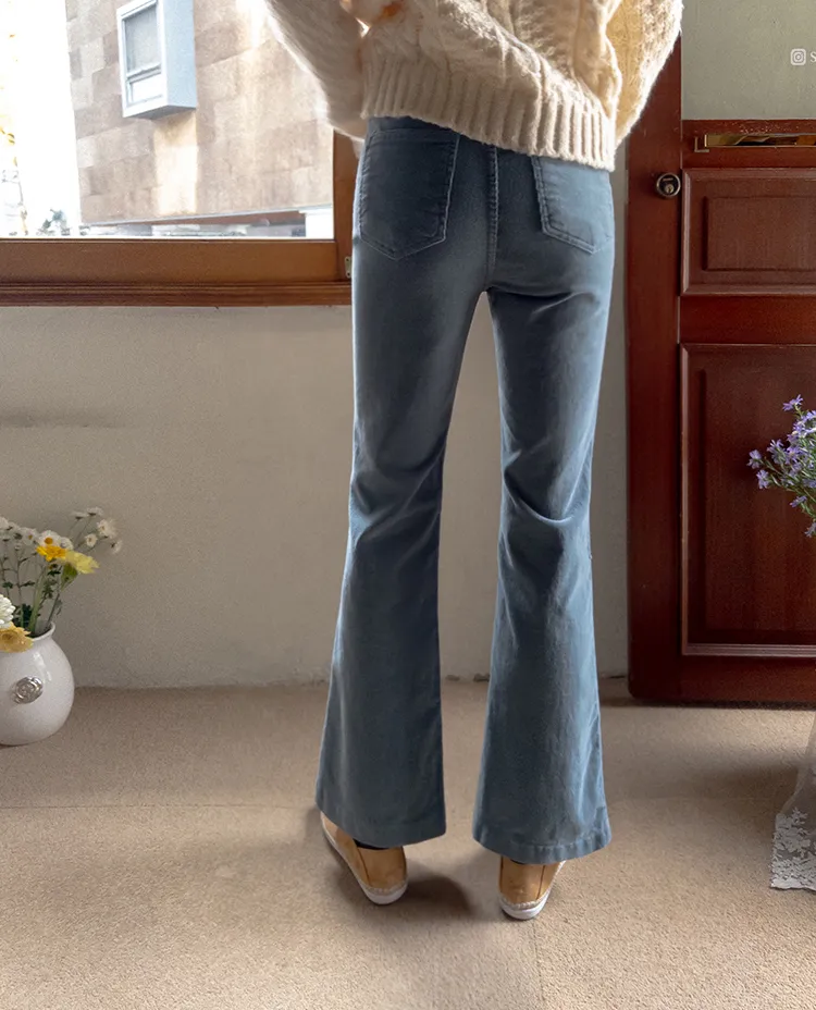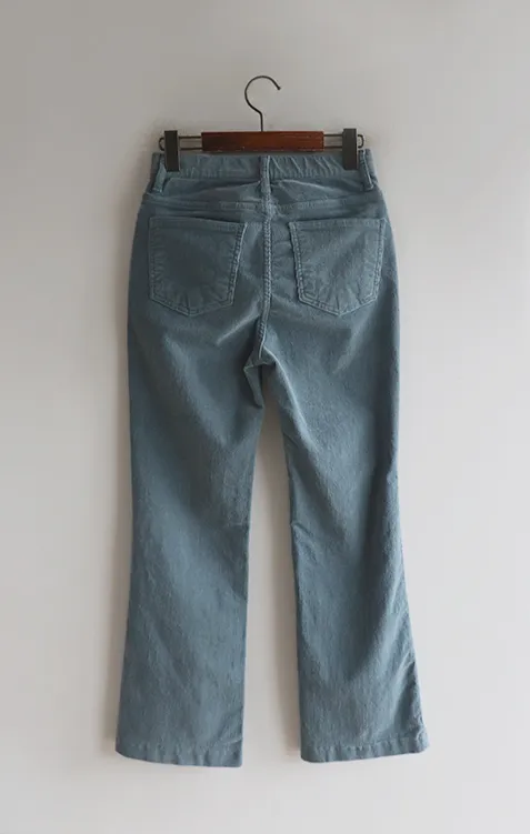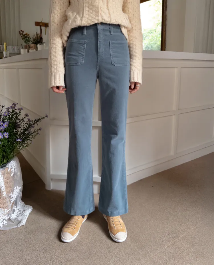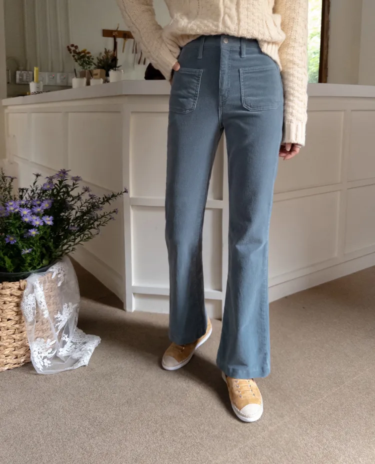 柔和色感方形口袋點綴靴型剪裁修身燈芯絨休閒褲