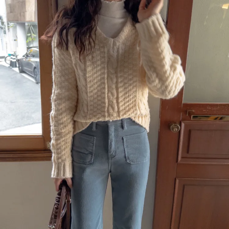 浪漫波浪邊修身可內搭柔軟彈性高領上衣
