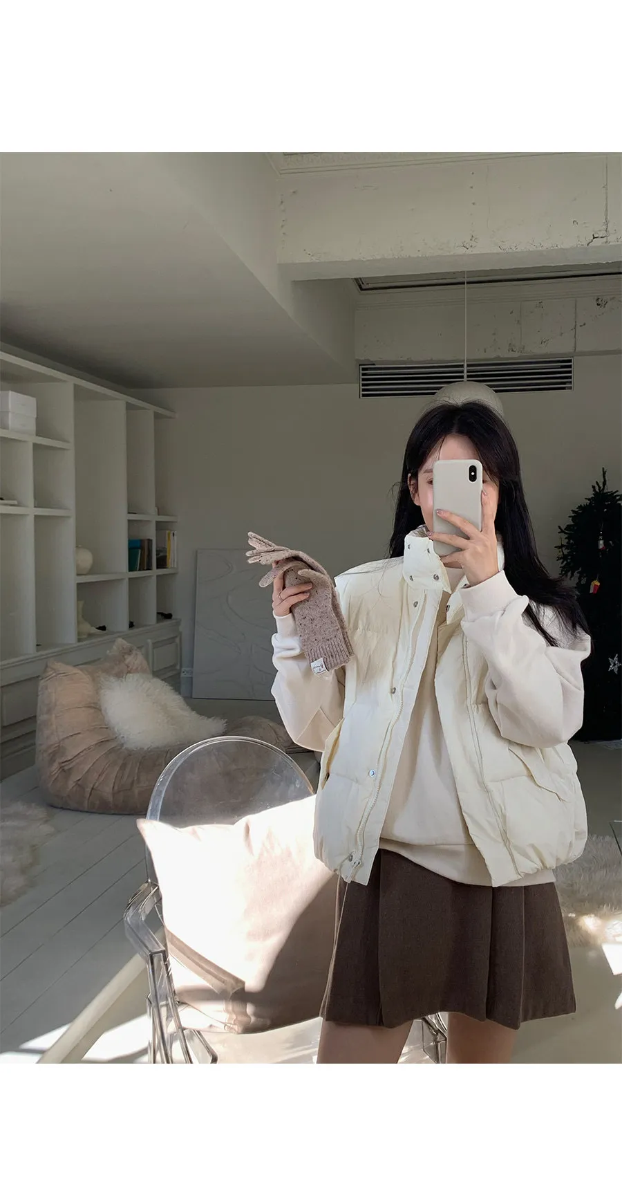 秋冬穿搭A字剪裁針摺修身短裙