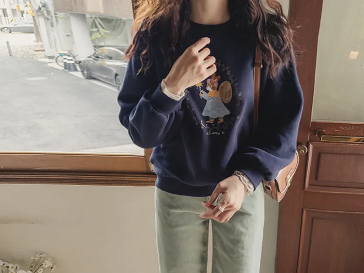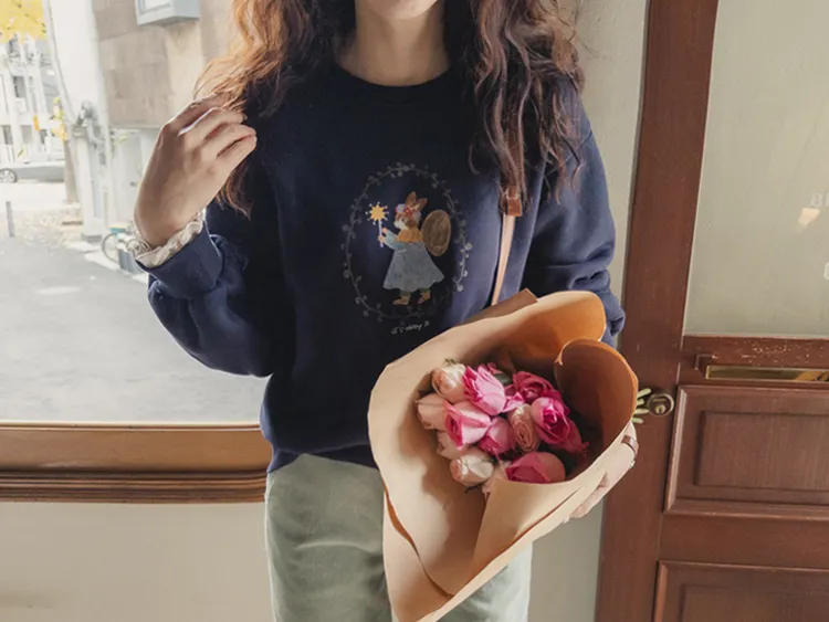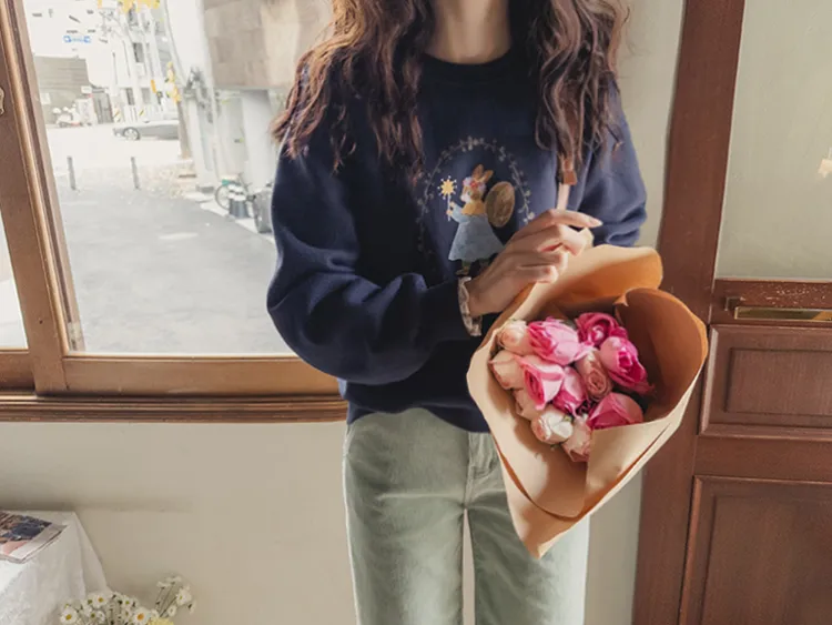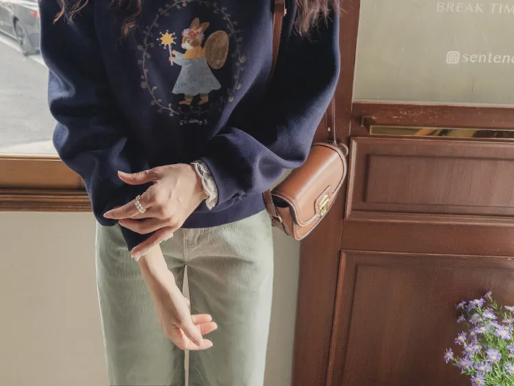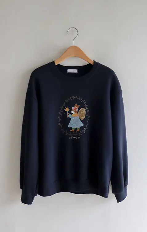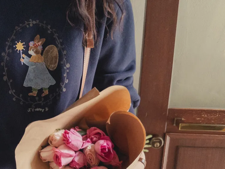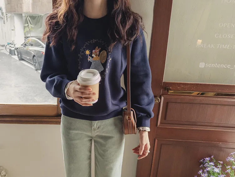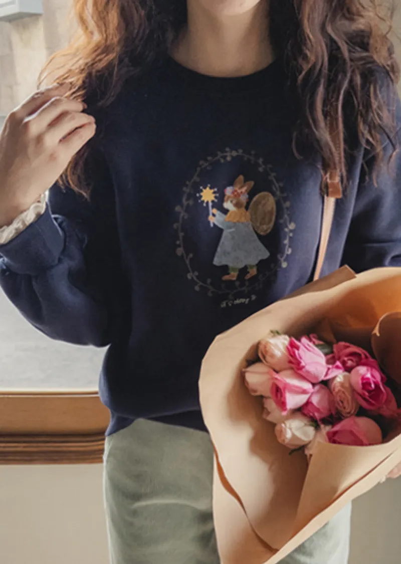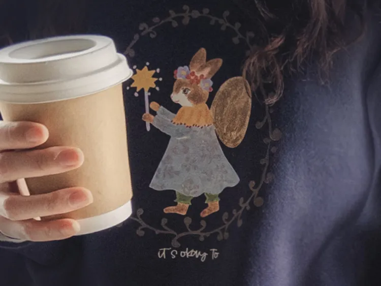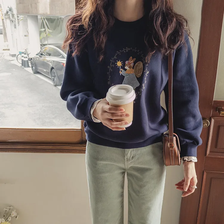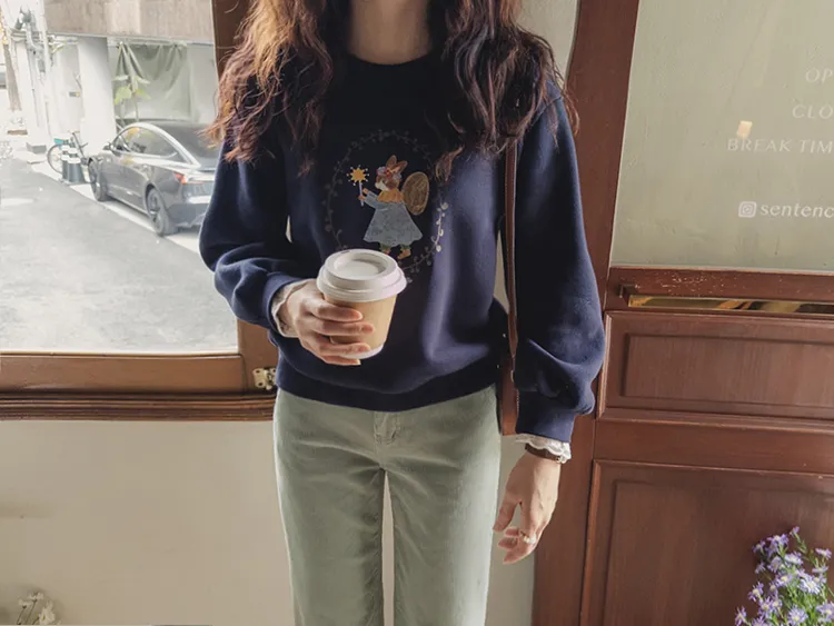 【袖子蕾絲設計增加可愛感-♥】【拉絨布料冬天也保暖】【可愛的兔子印花好可愛~>,<】【寬鬆廓形打造精緻合身~