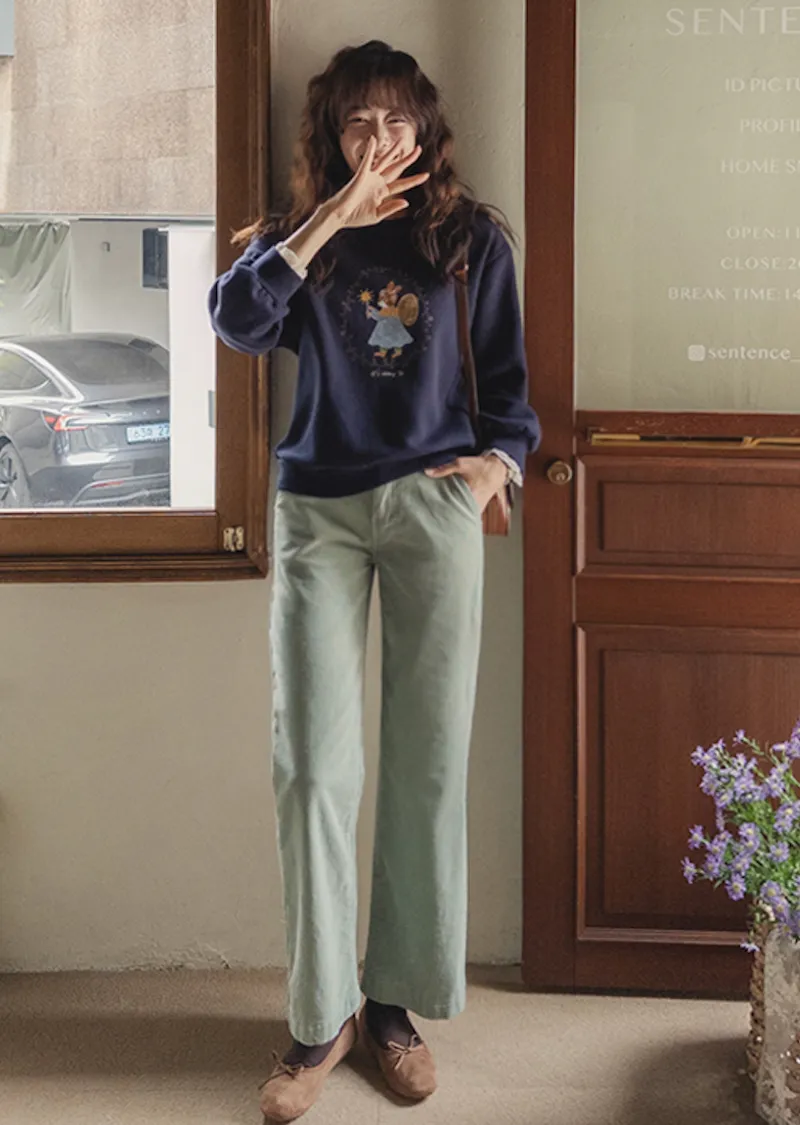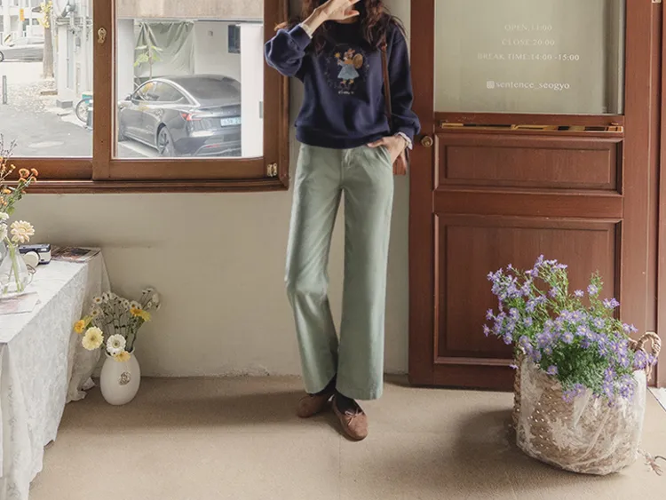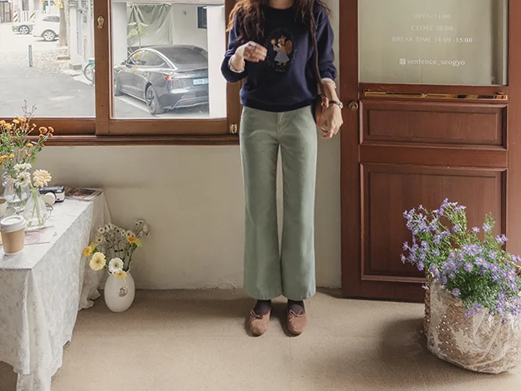 溫暖氛圍刷毛彈性寬版燈芯絨休閒褲