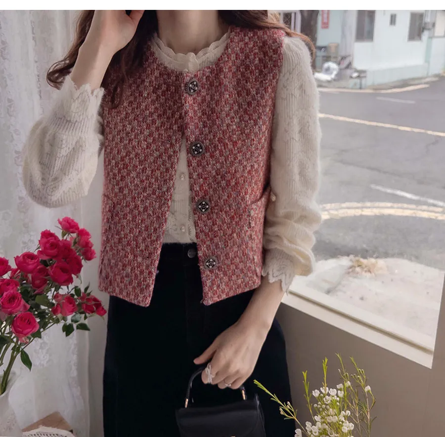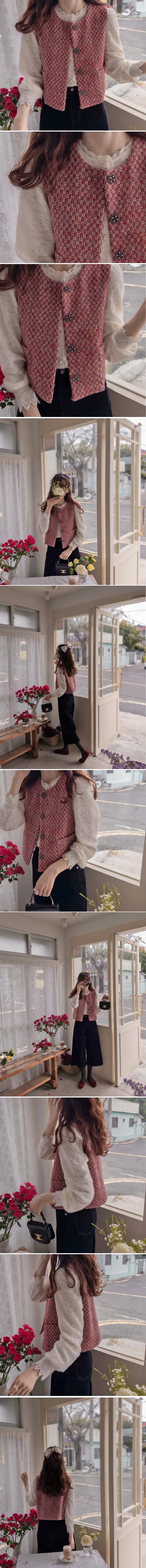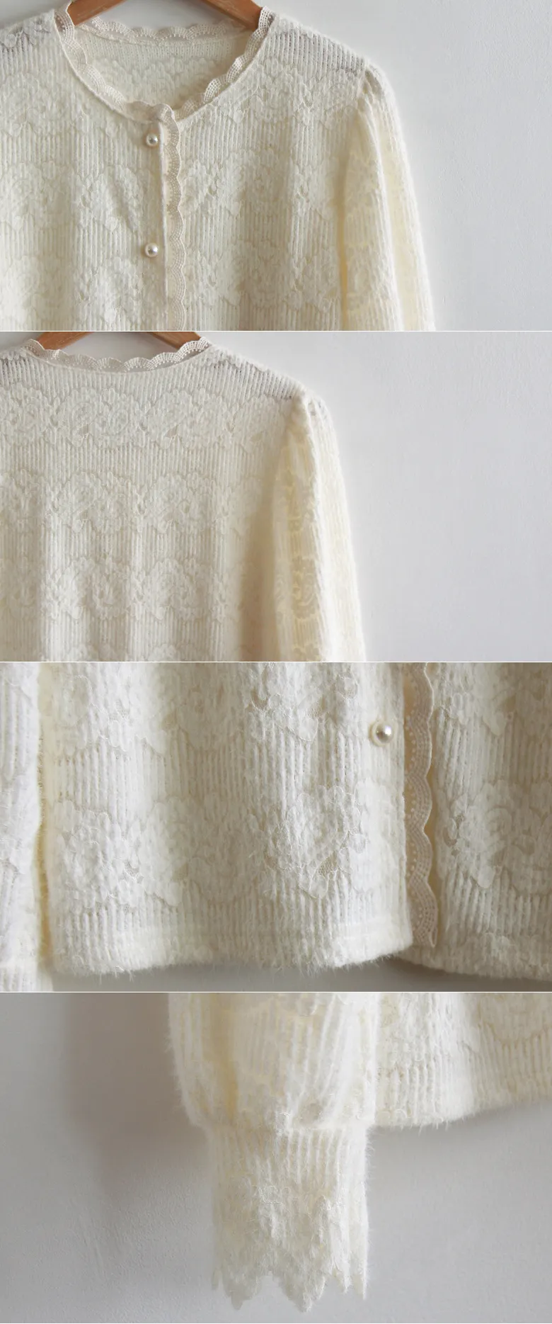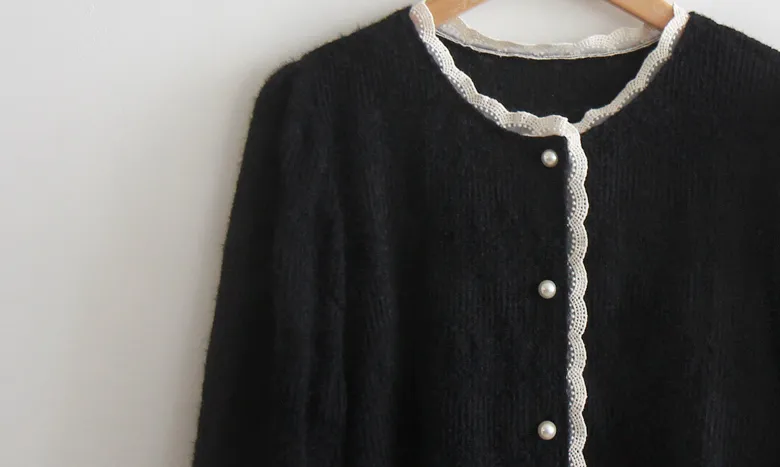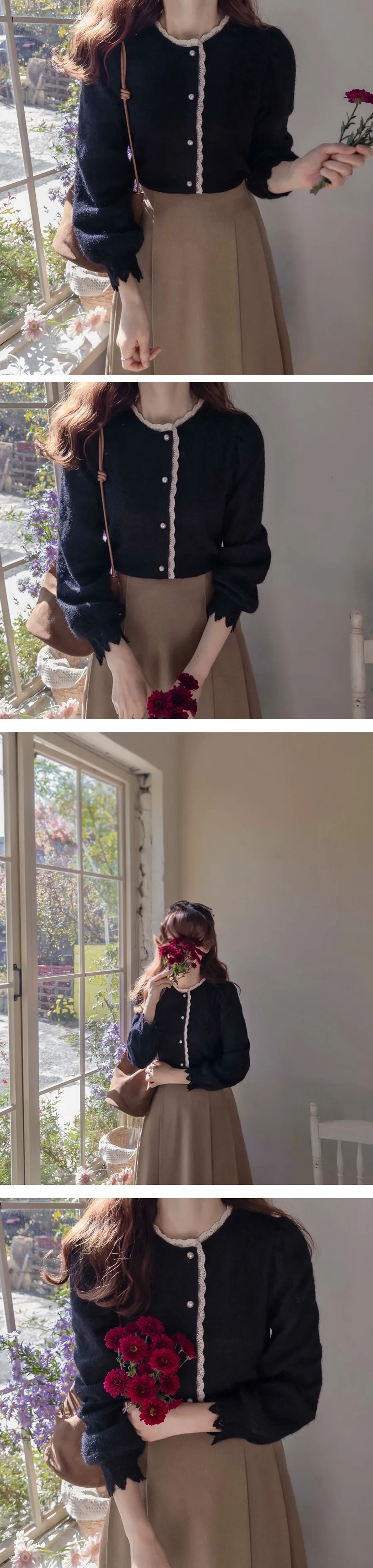【非常可愛的排扣上衣,彈性拉絨蕾絲布料】【領口是波浪形蕾絲,給人一種優雅的感覺】【浪漫魅力推薦作為合身的拉絨排扣上衣