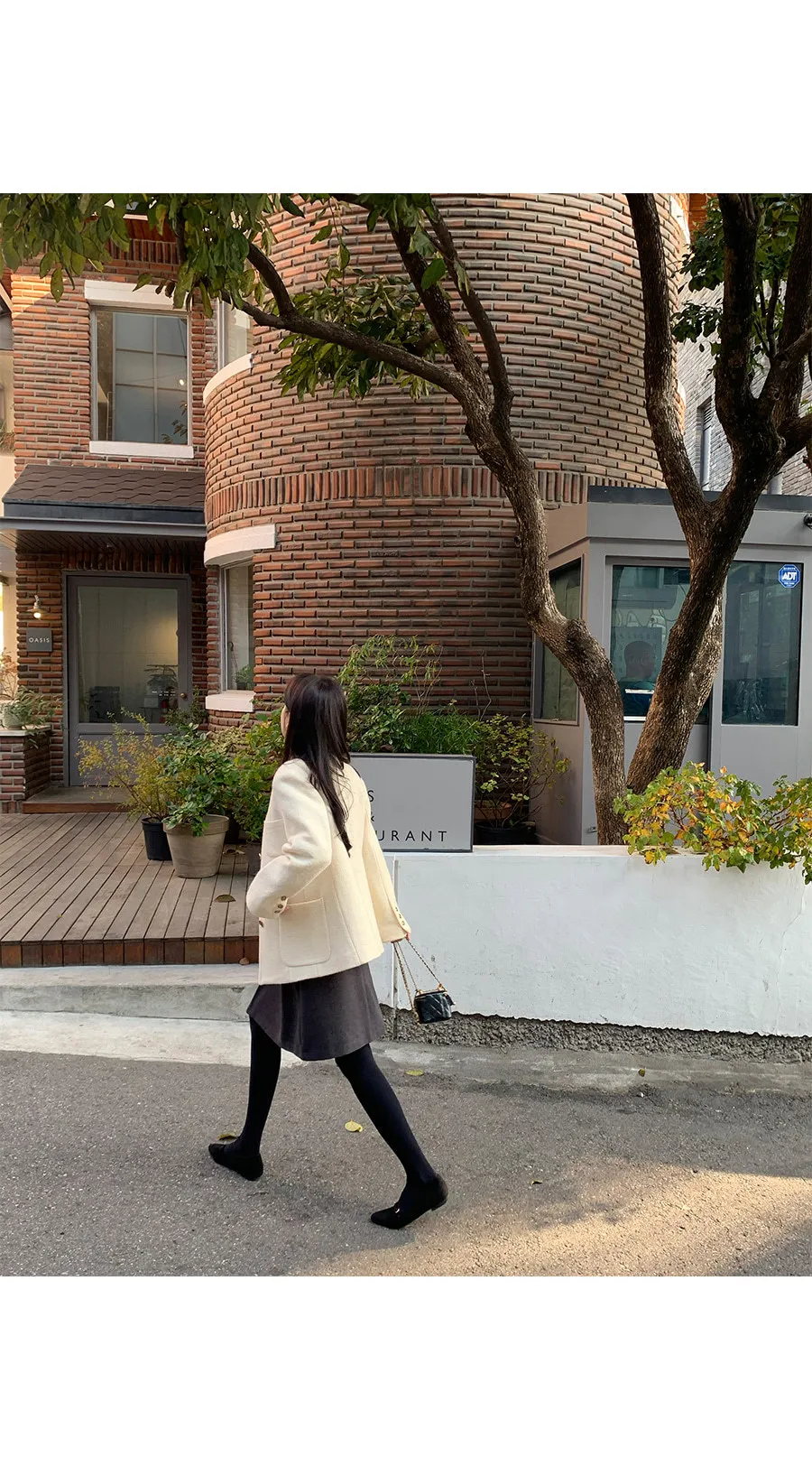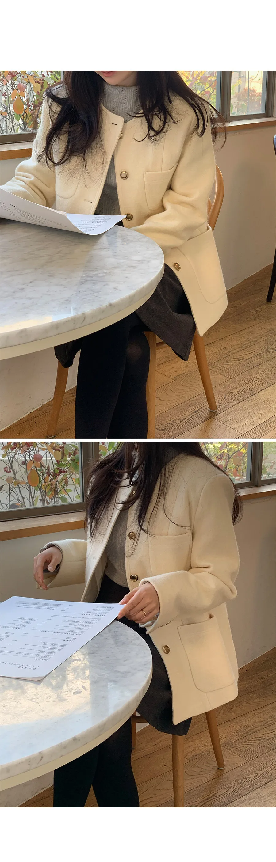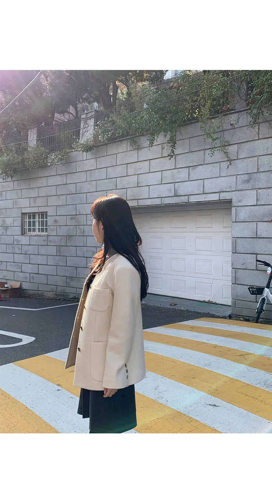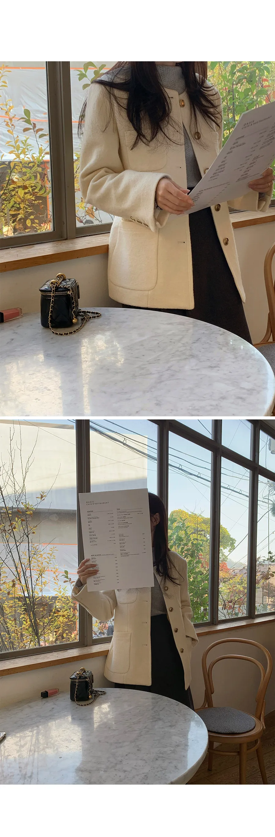 精緻氛圍羊毛混紡外套。這款夾克採用精緻的設計和微妙的裝飾 ,營造出奢華的氛圍。 腰線輪廓 營造出女性化的貼合感, 接縫提升了品質, 非常適合在更奢華的氛圍中穿著。 遮蓋臀部的半長款以及金色鈕扣和口袋細節營造出更精緻的氛圍:)