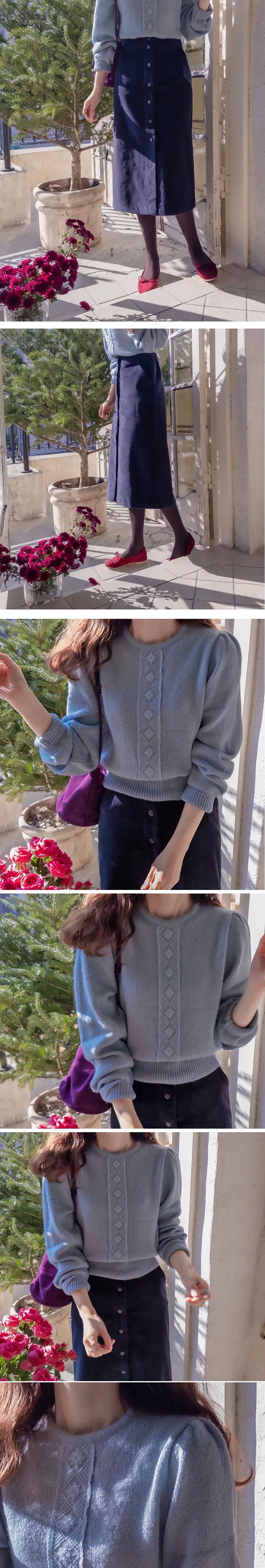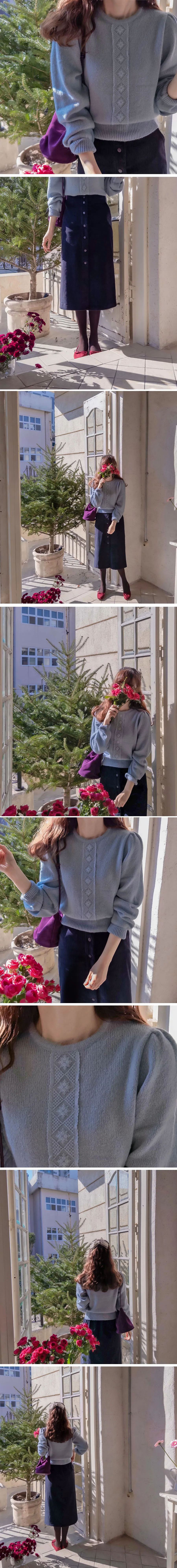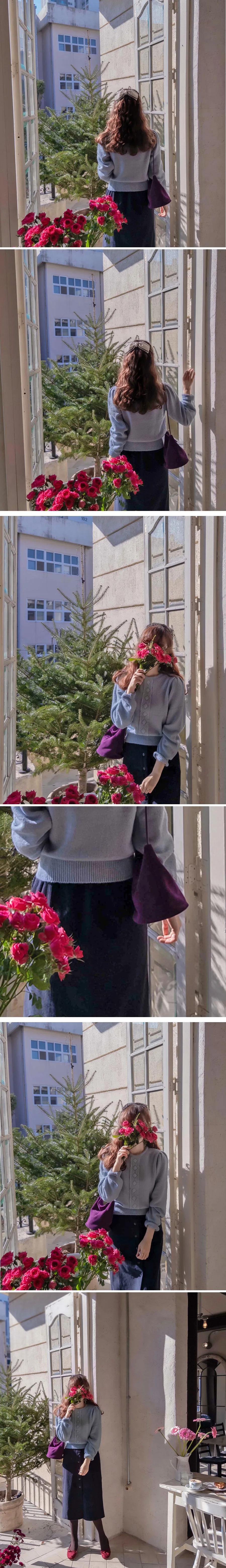 柔和波浪領邊心形圖案針織開衫