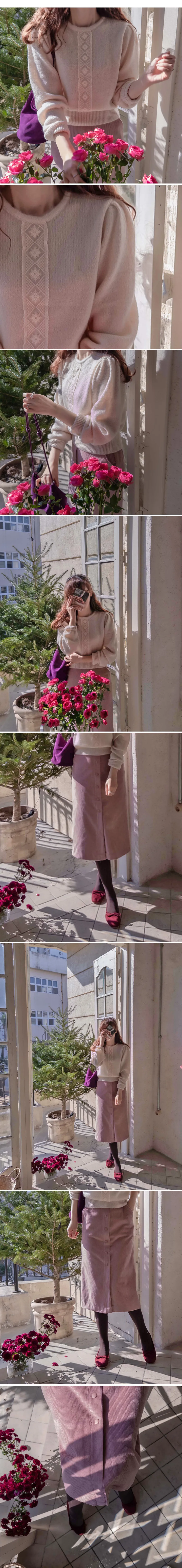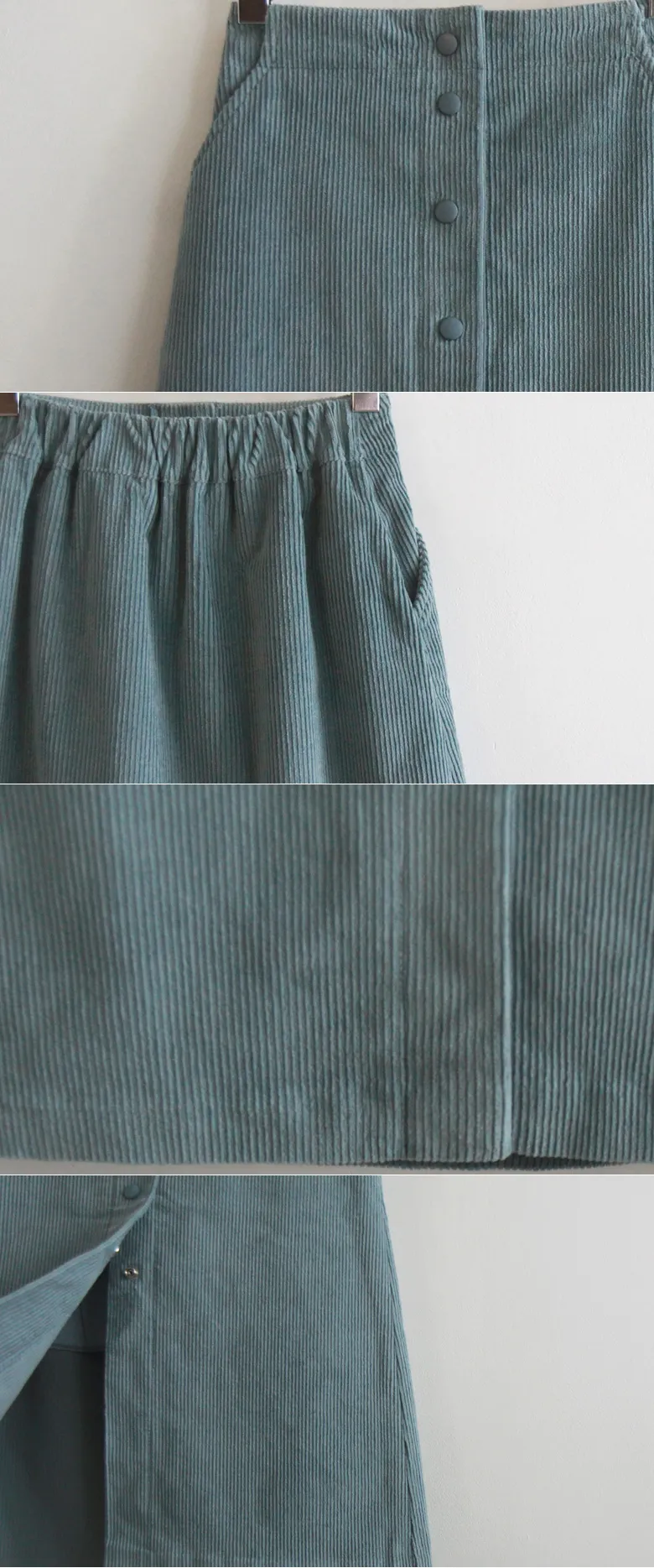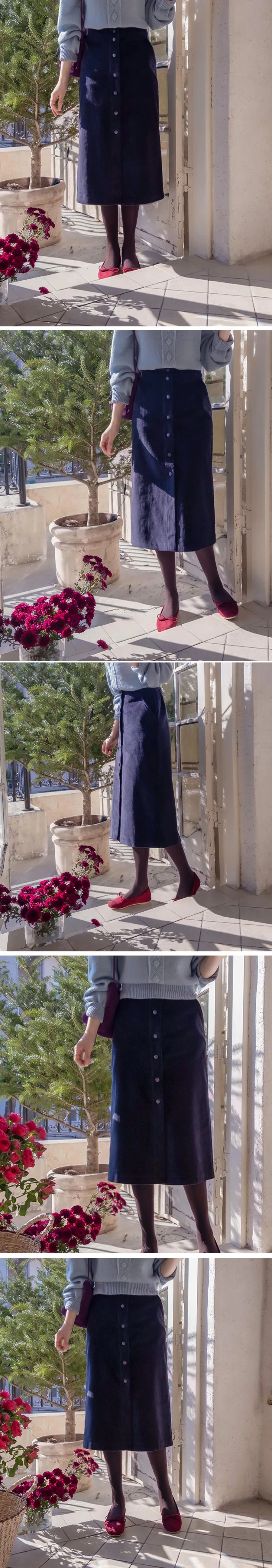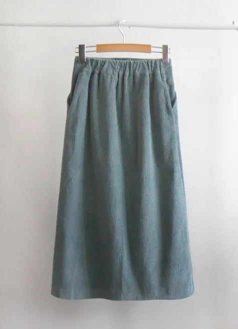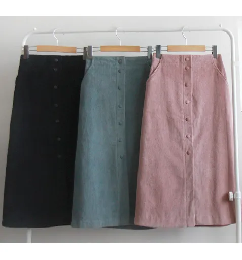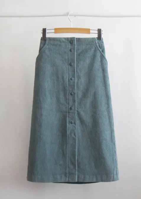 優雅排扣腰部彈性燈芯絨中長裙