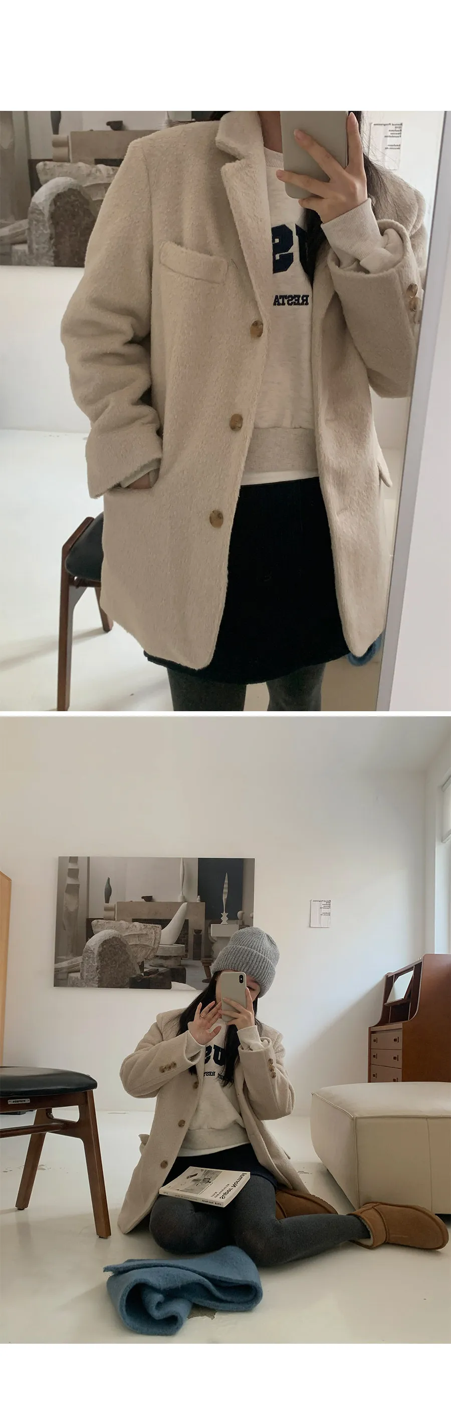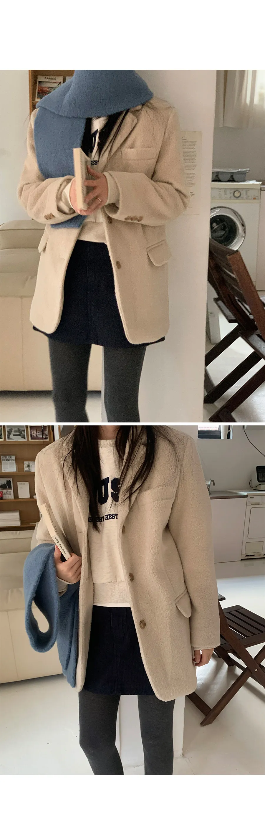 絎縫襯裡羊駝毛混紡外套