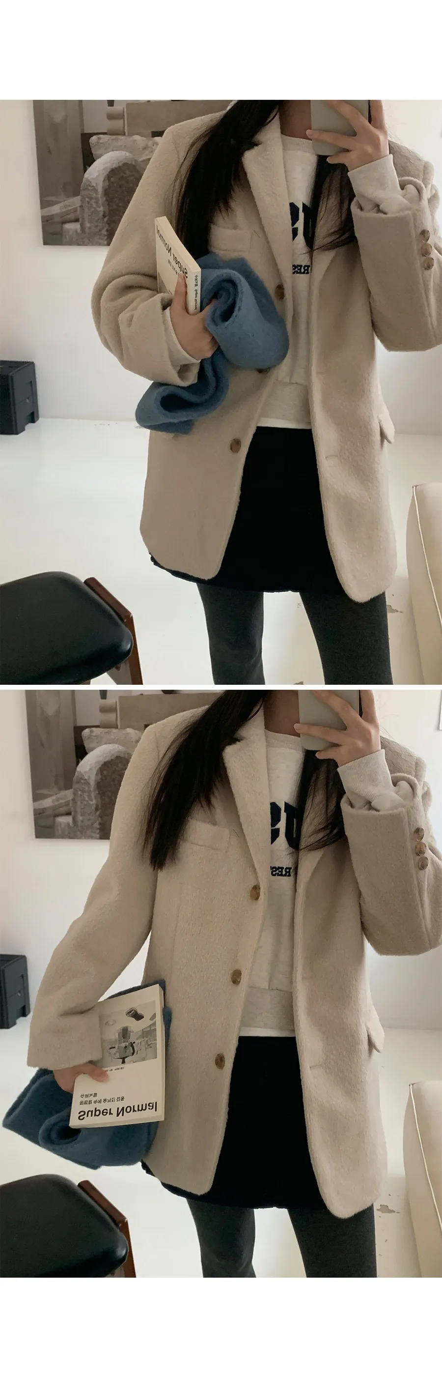 標準設計合身內襯絎縫羊毛外套