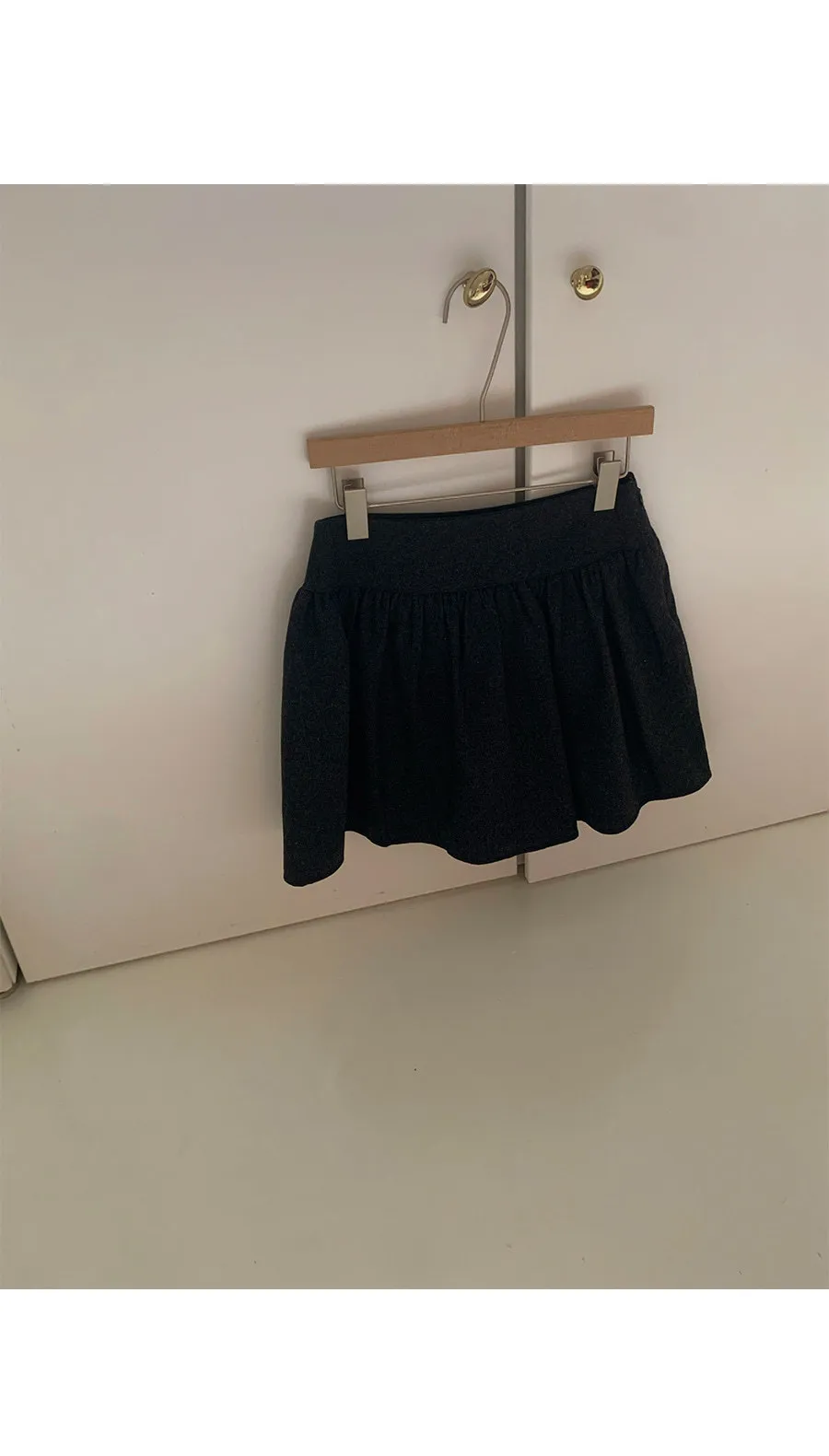 褲子襯裡)裙子採用略帶氣球般的A字形剪裁,長度極短,