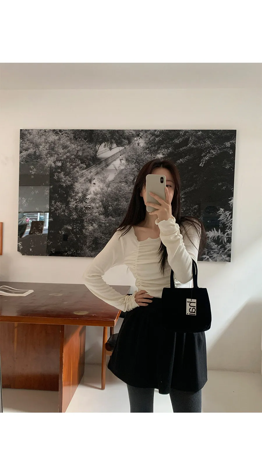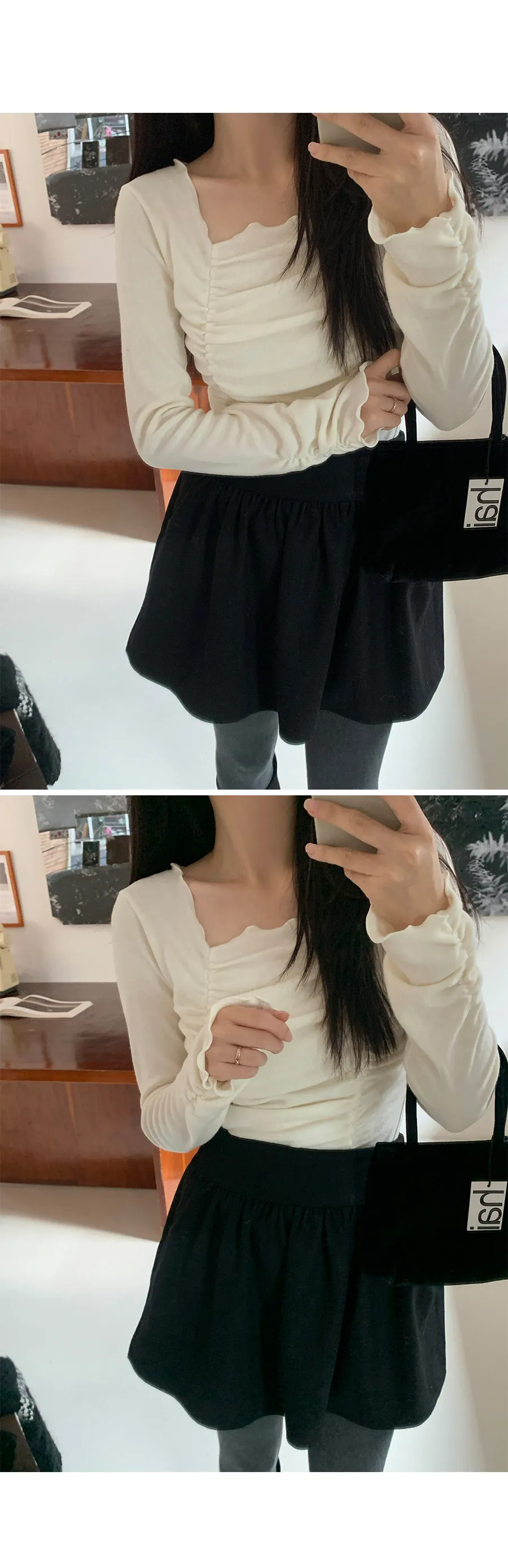 柔美方領波浪邊皺摺廓形上衣