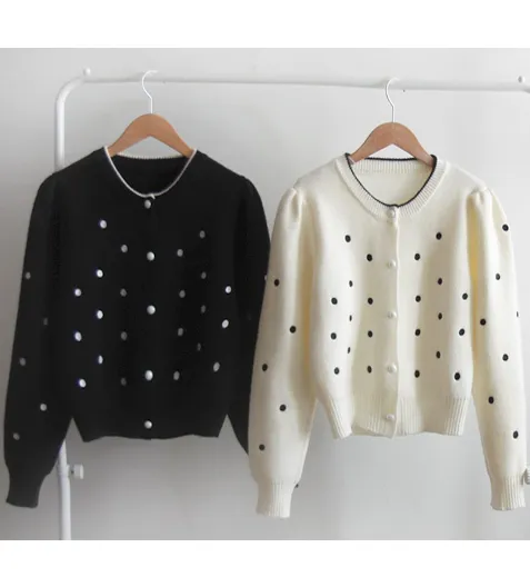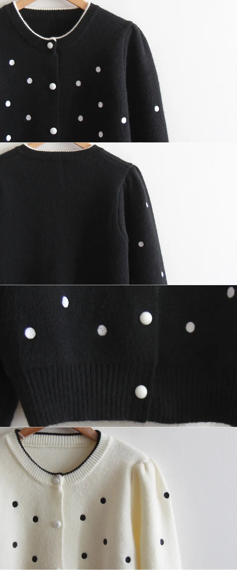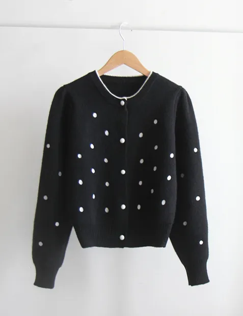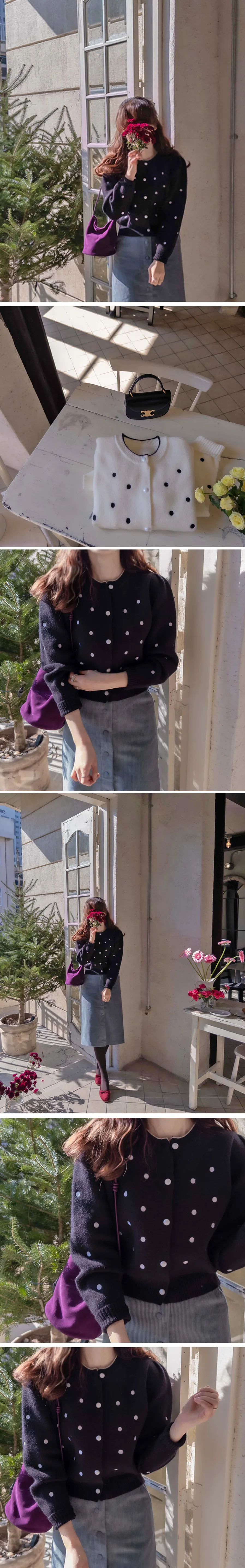 可愛圓點點柔軟舒適肩線剪裁開衫