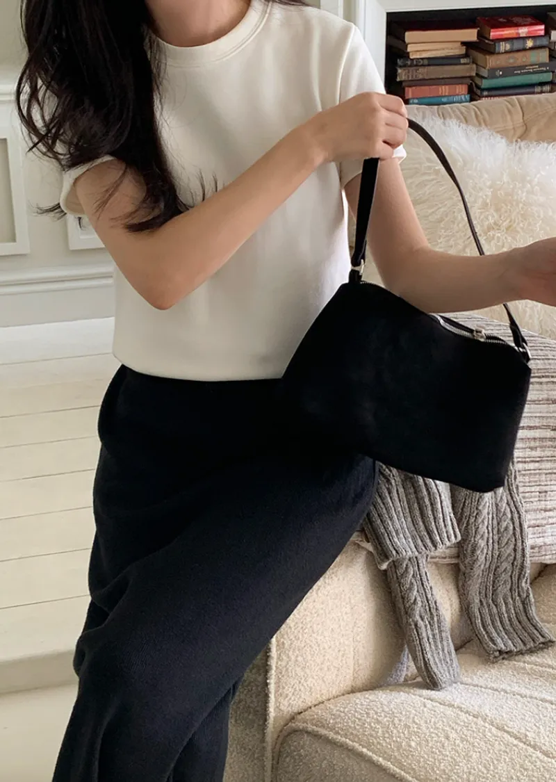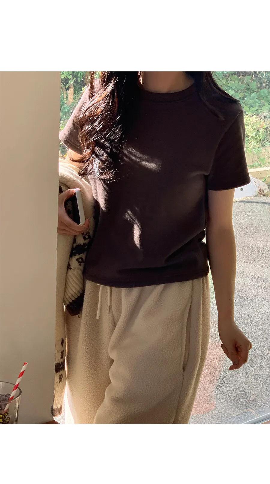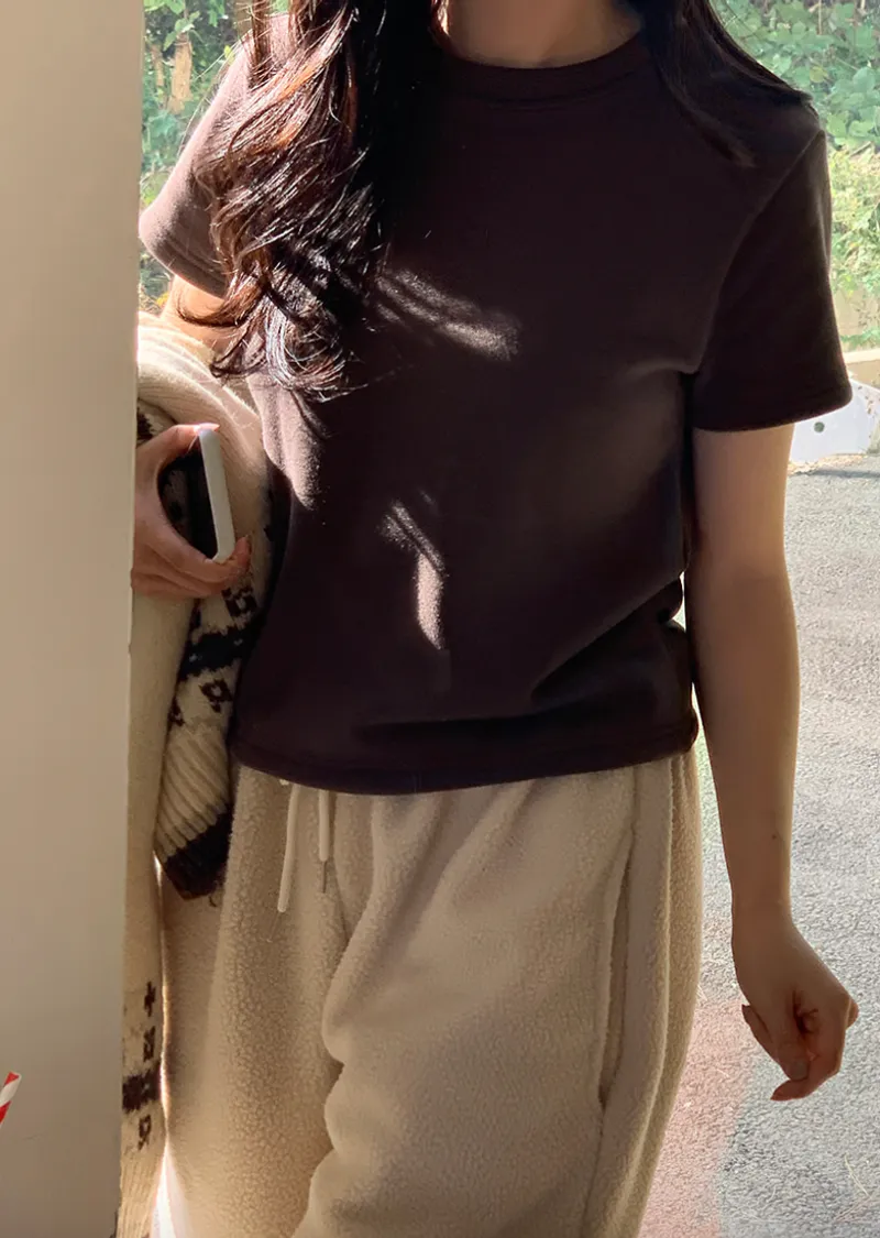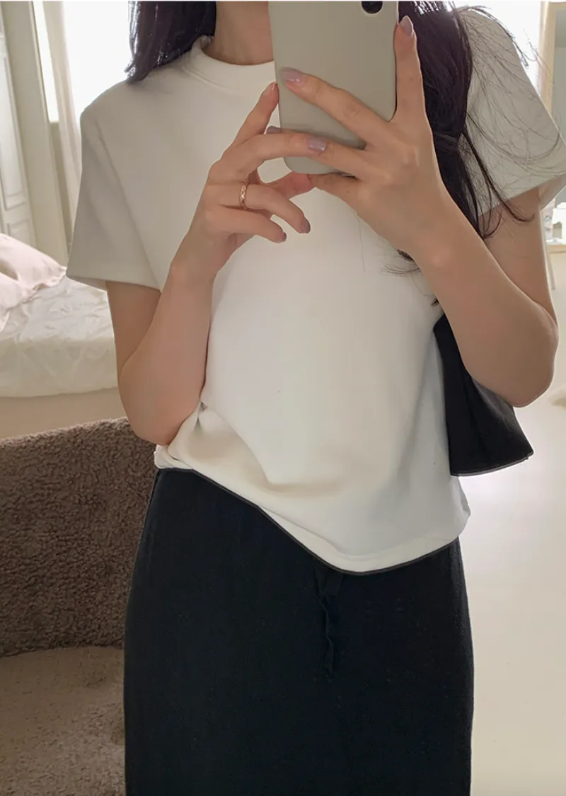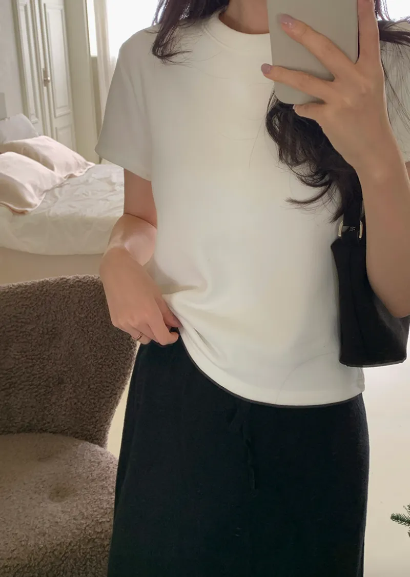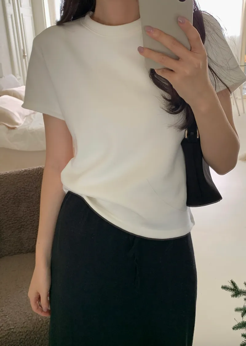 柔軟內襯簡潔剪裁圓領短袖上衣