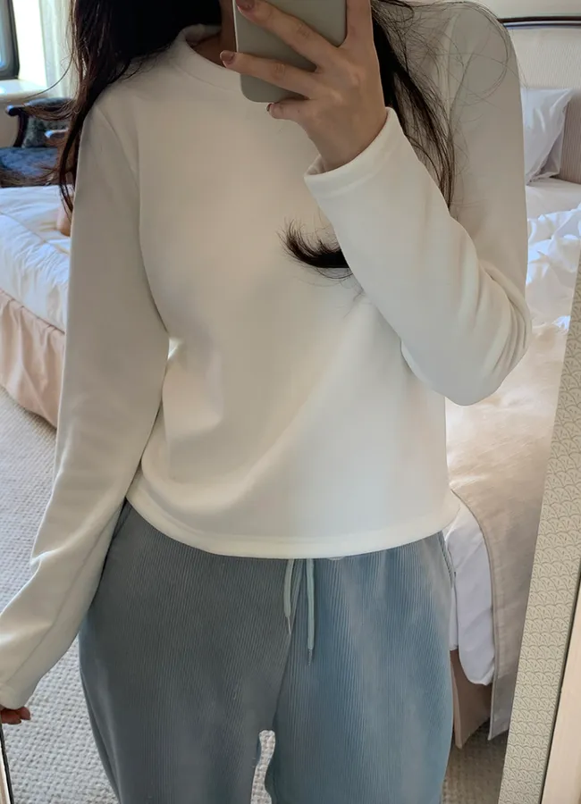 柔軟內襯簡潔剪裁圓領長袖上衣