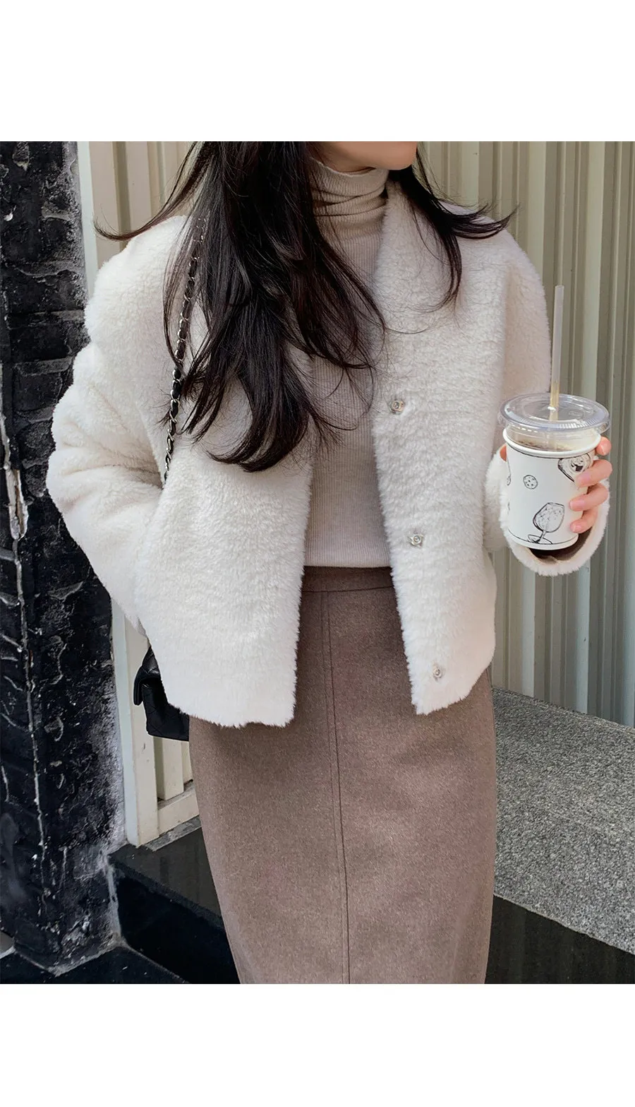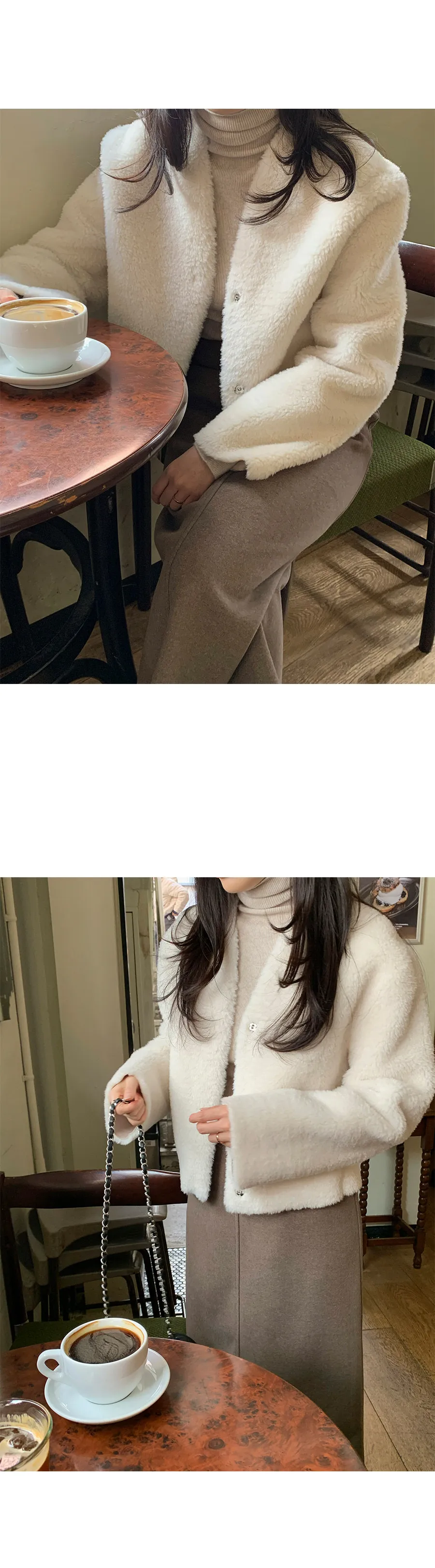 簡約短版優雅柔軟毛絨外套